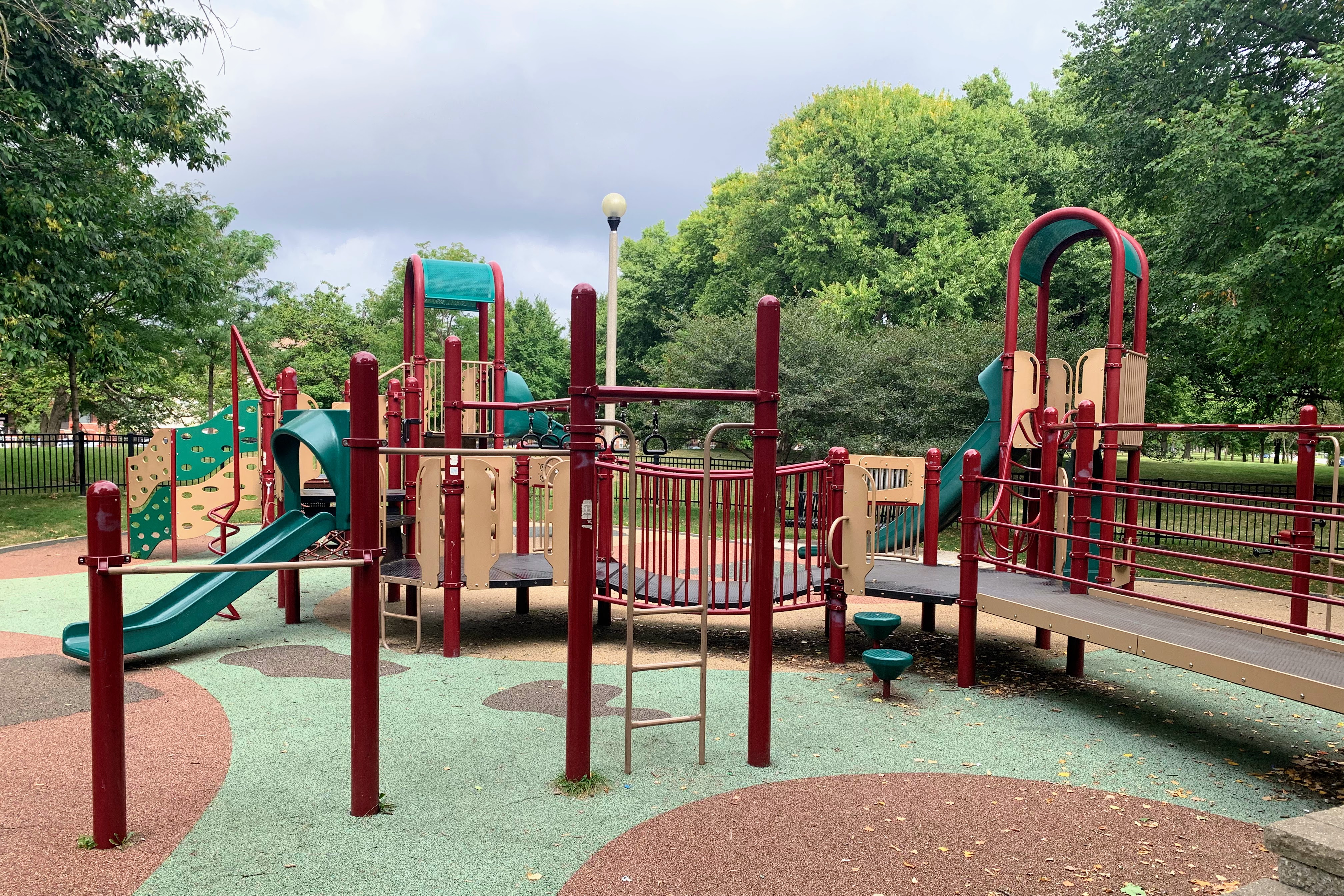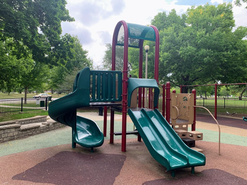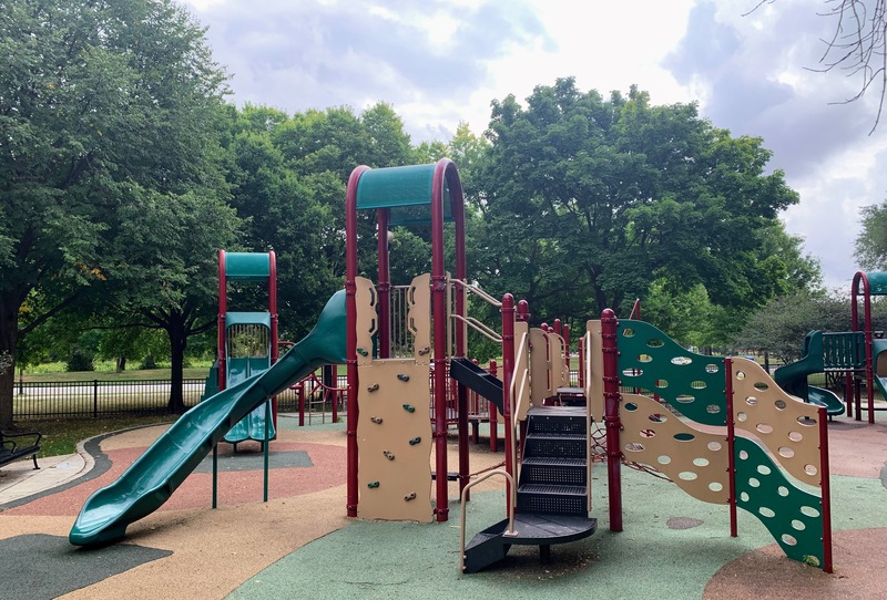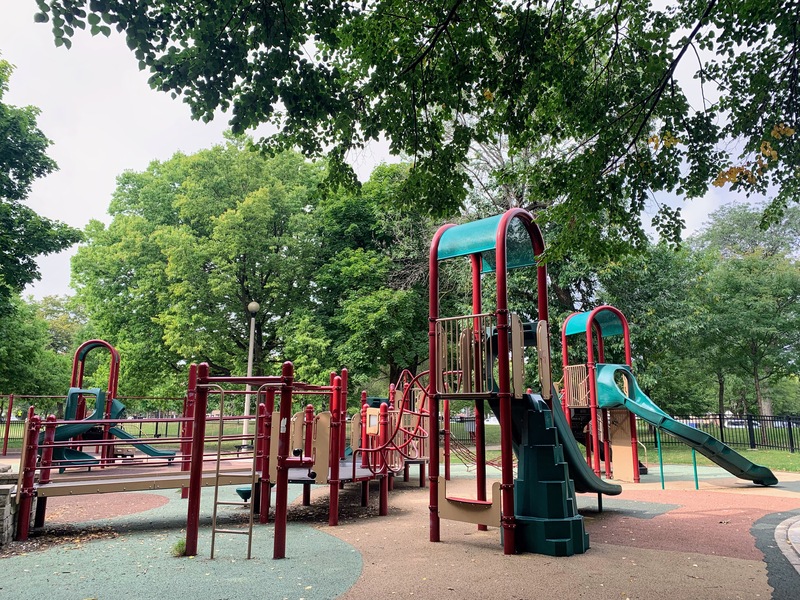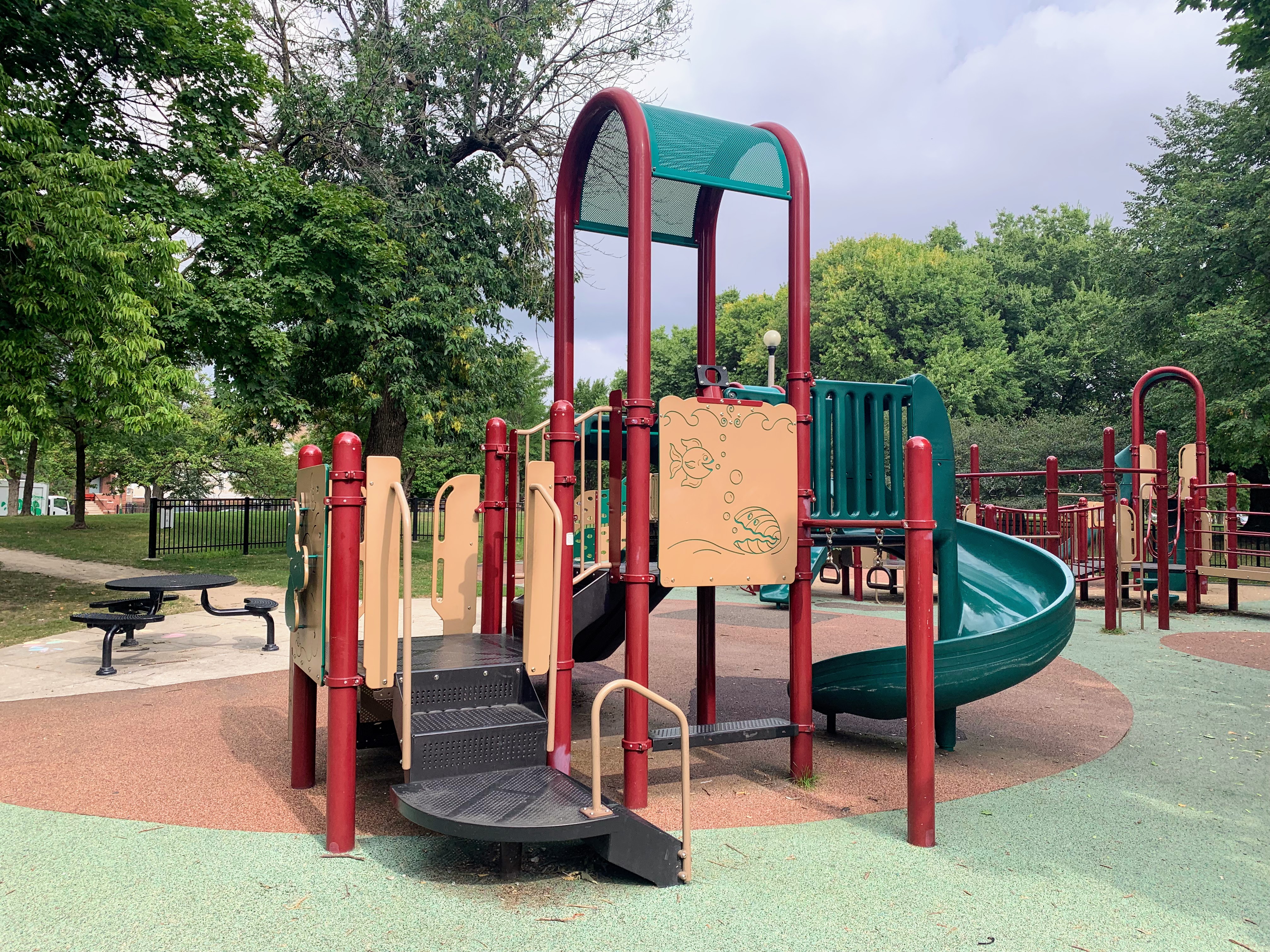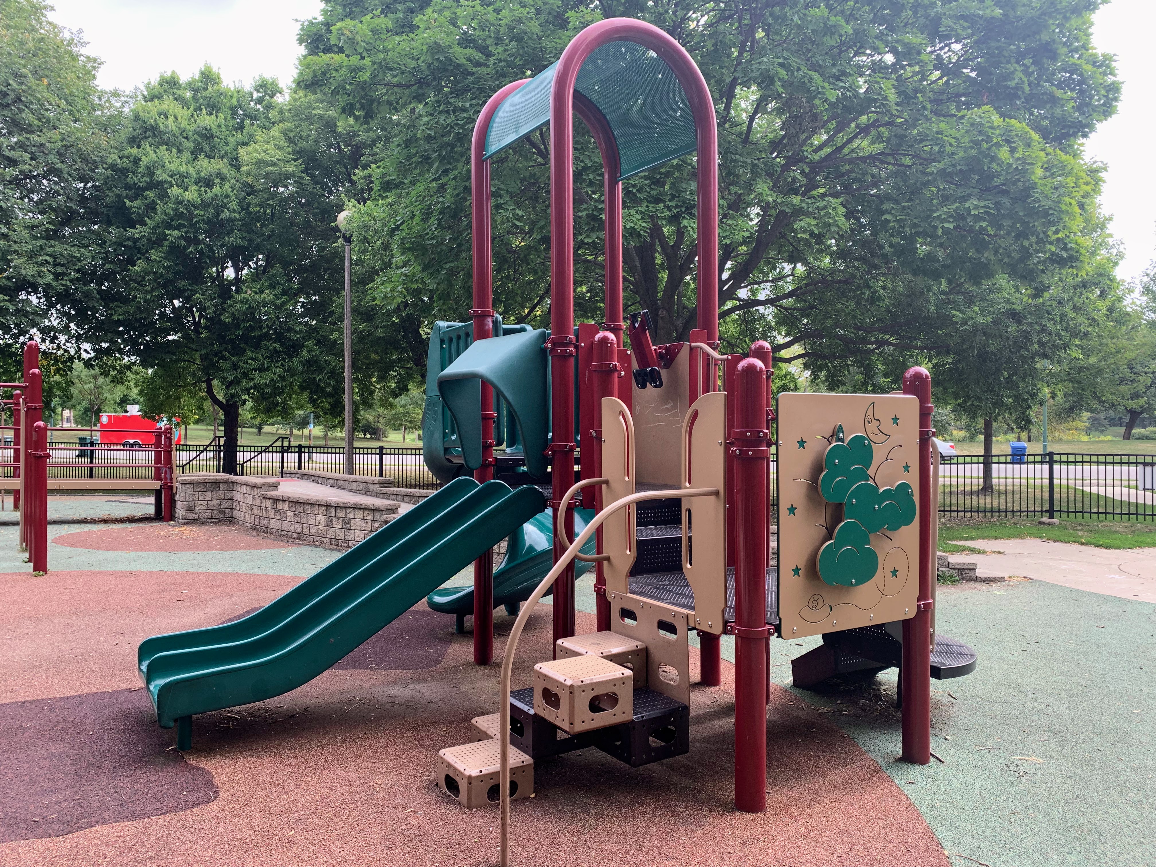 This playground - one of 5 in Humboldt Park - is located on the west side of the park near Division and Kedzie. This playground is a great play area surrounded by trees and features a swing set, a small play structure for younger children, and a large, sprawling play structure for older children with a variety of slides, climbing elements, and monkey bars.