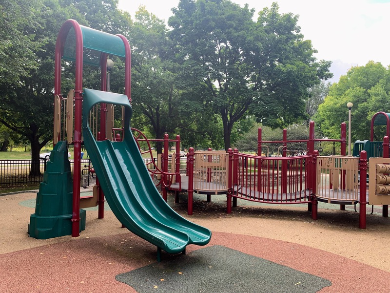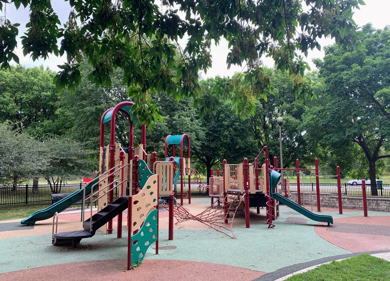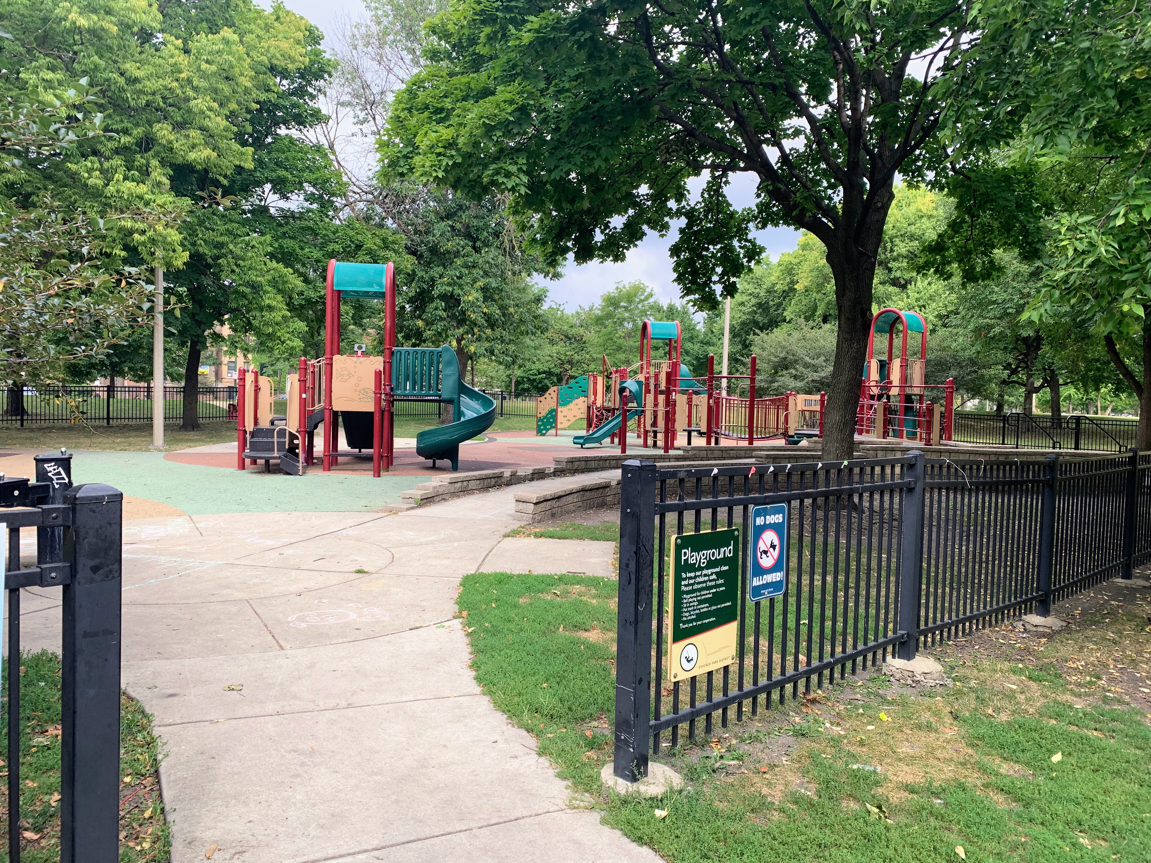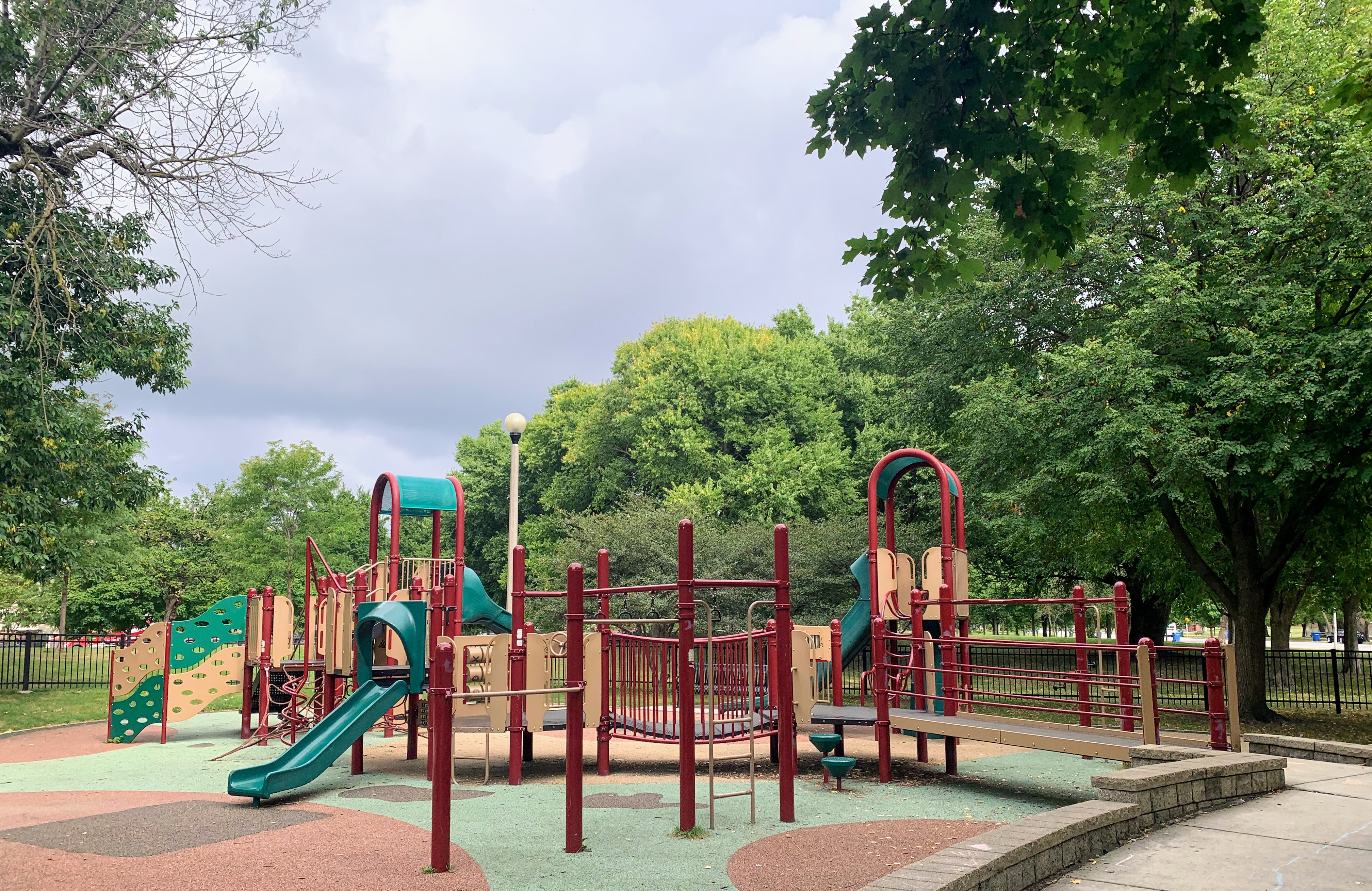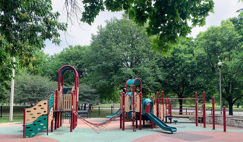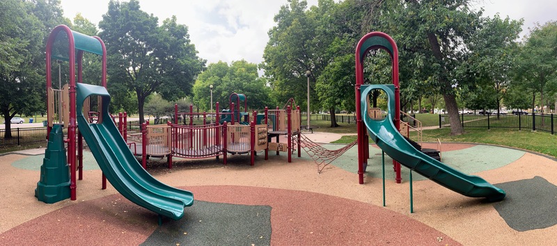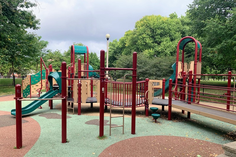 This playground - one of 5 in Humboldt Park - is located on the west side of the park near Division and Kedzie. This playground is a great play area surrounded by trees and features a swing set, a small play structure for younger children, and a large, sprawling play structure for older children with a variety of slides, climbing elements, and monkey bars.