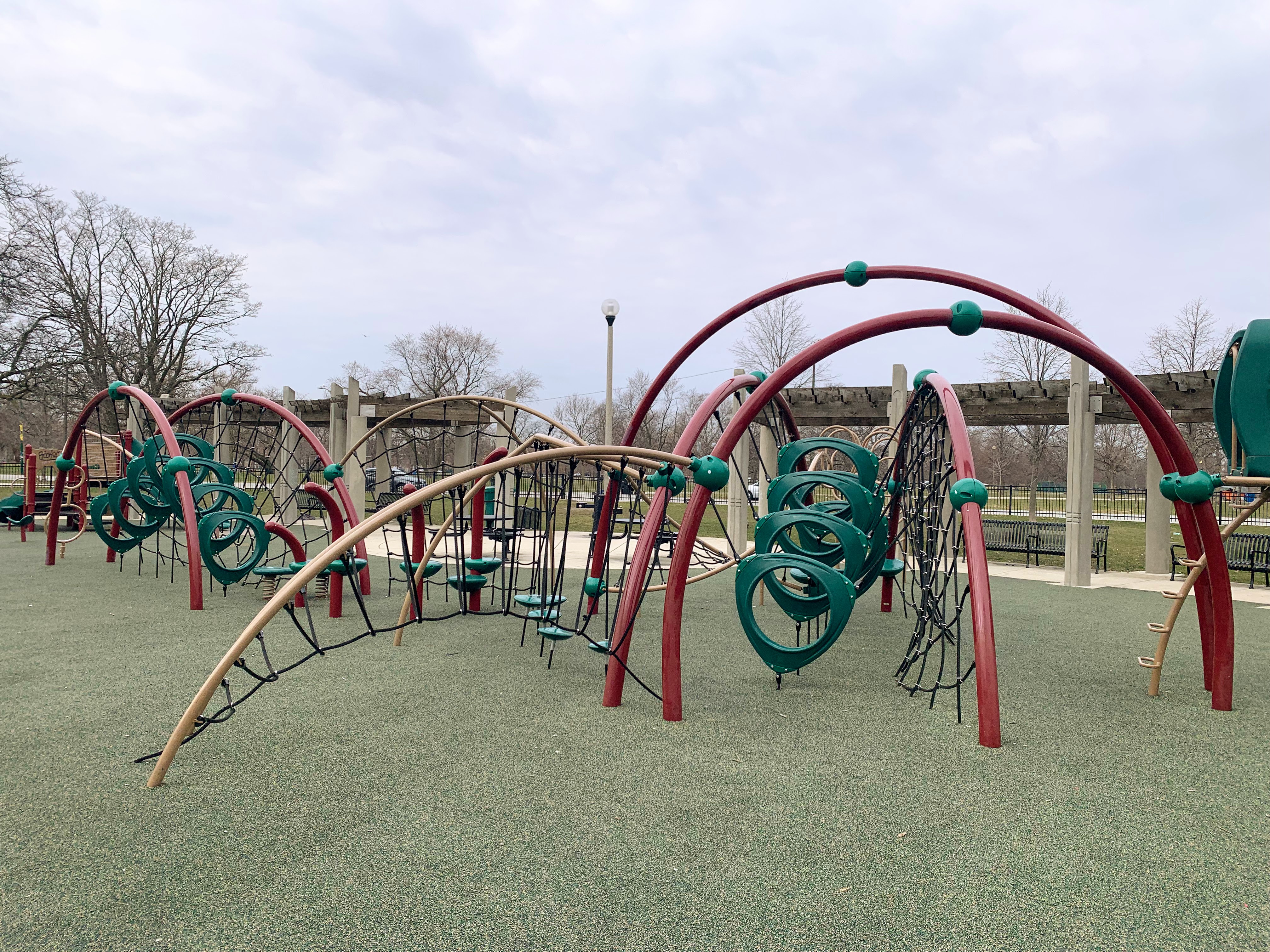 - This playground - one of 5 in Humboldt Park! - is located off California on the eastern edge of the park and is a gem. There is a small, traditional play structure for younger children and then a massive collection of unconventional climbing elements for older children. There is also the standard swing set: toddler, adaptive, and belt seat. The play area is fully enclosed and features a soft rubber surface. There are benches and two picnic tables as well as a drinking fountain. This is a great playground; highly recommend.