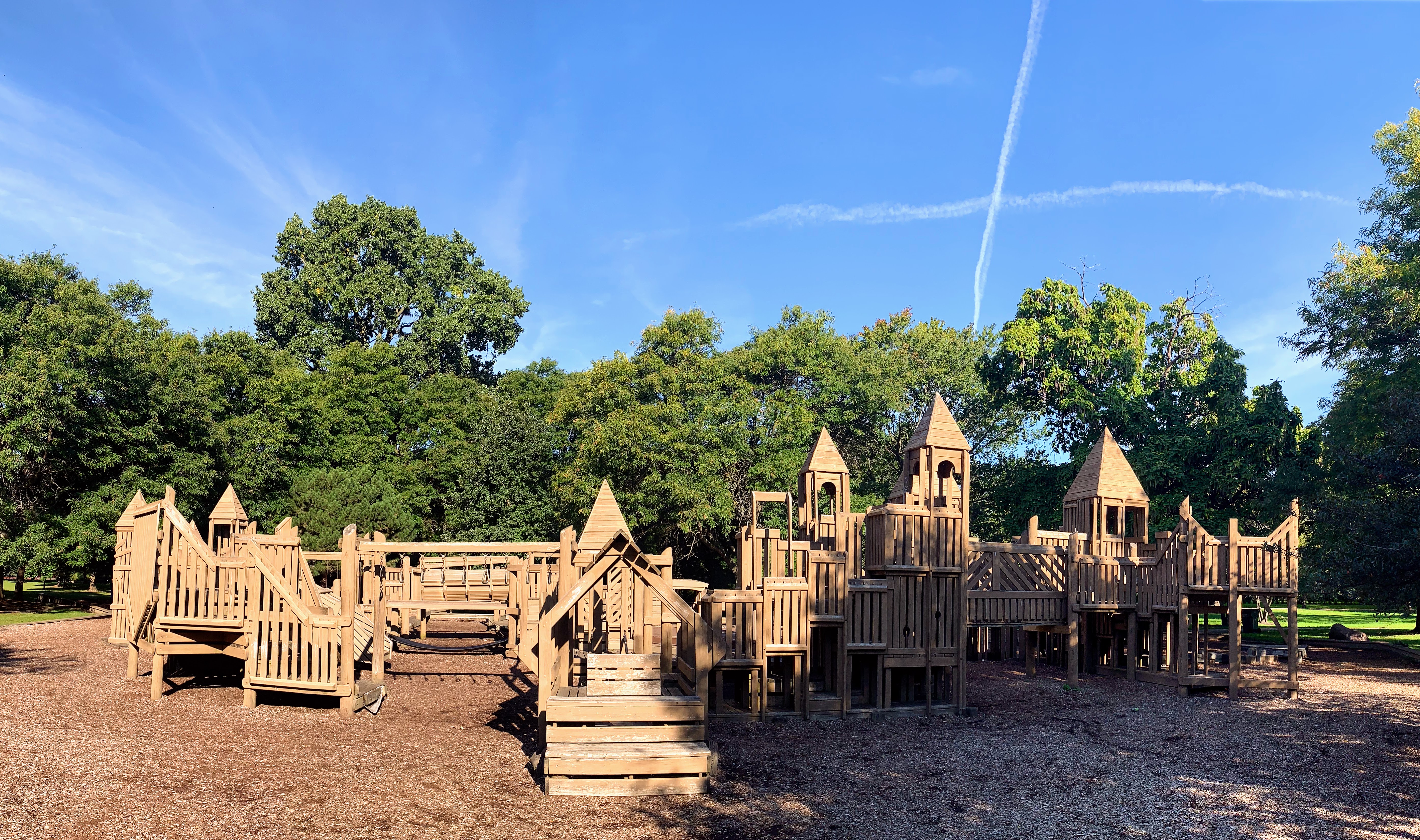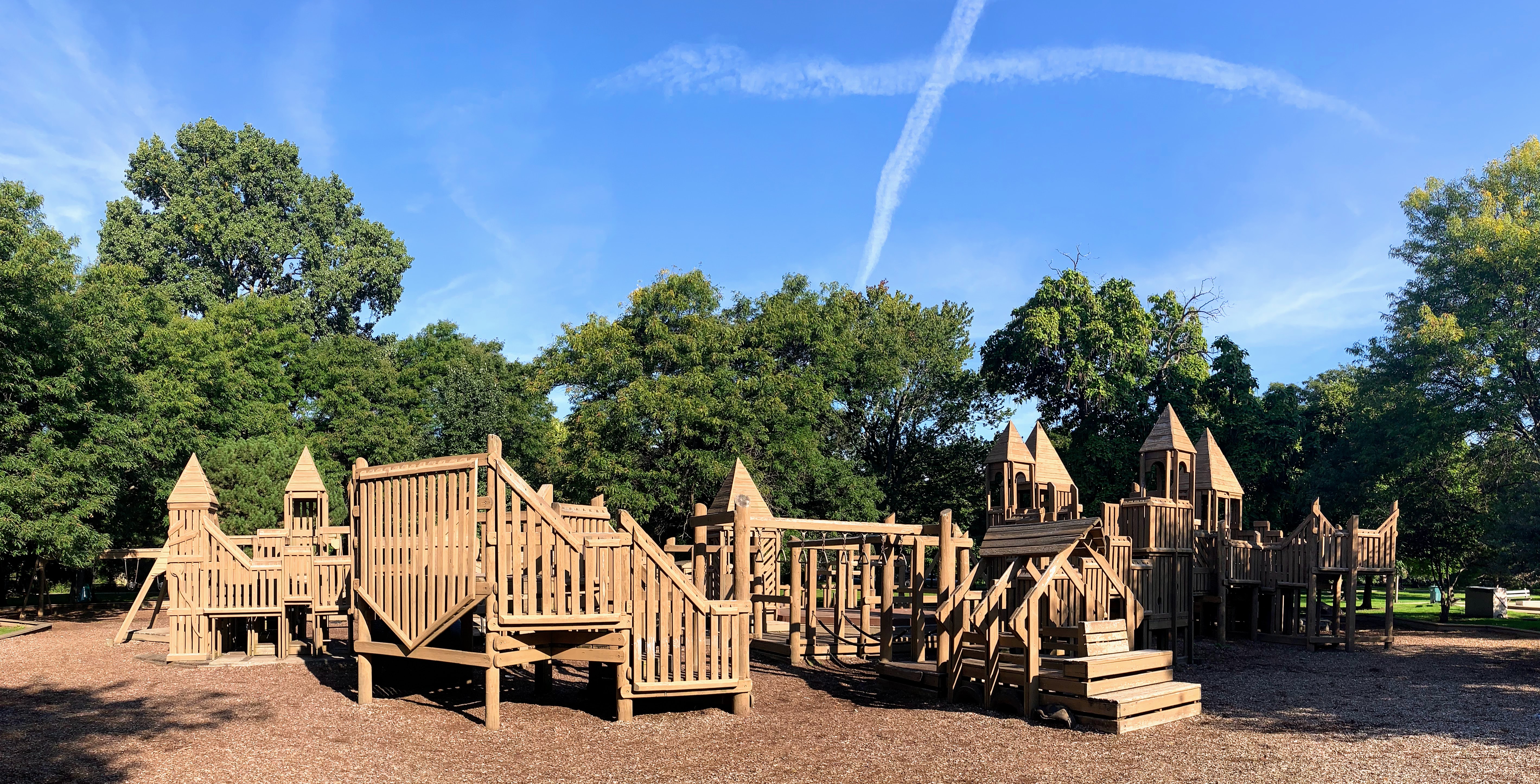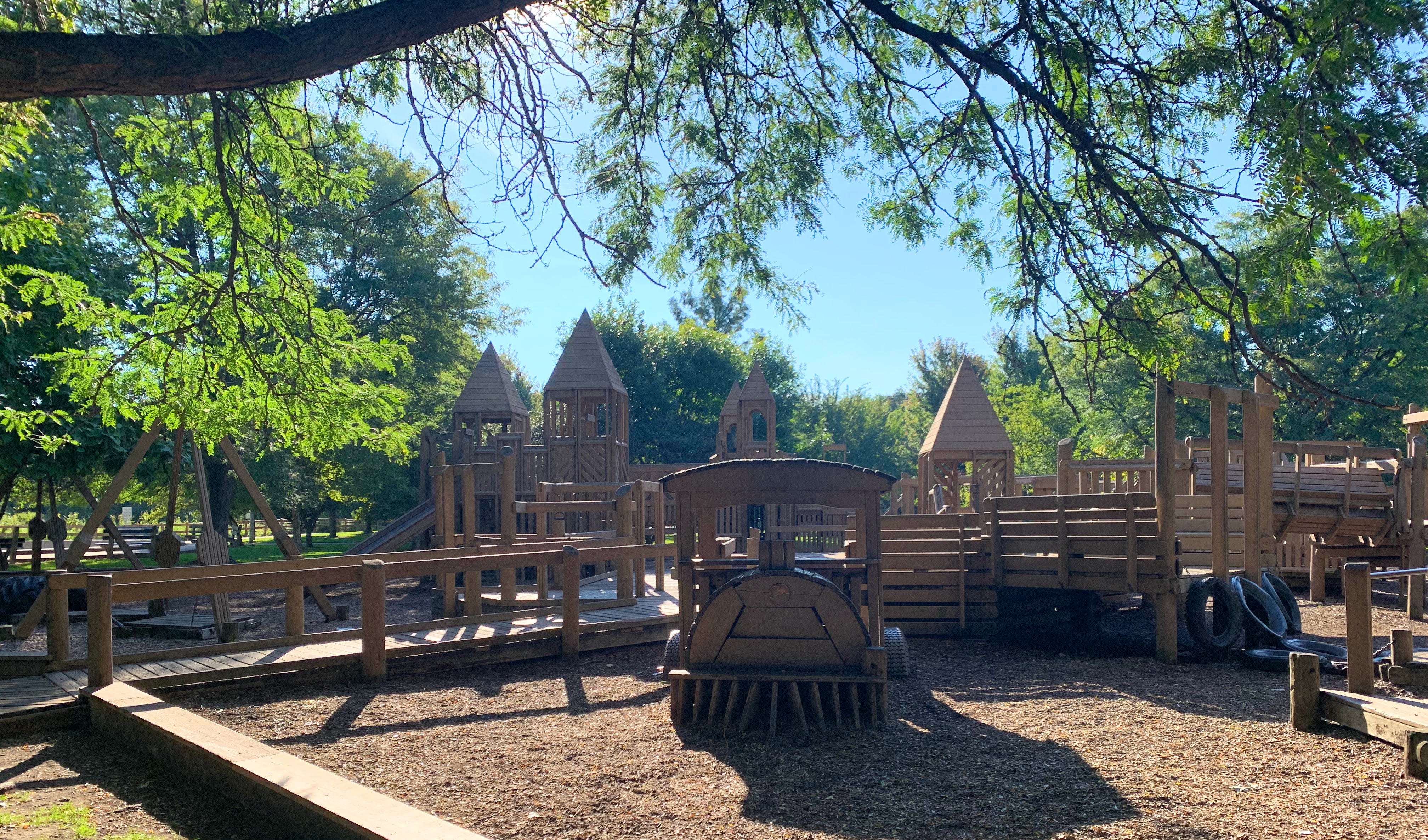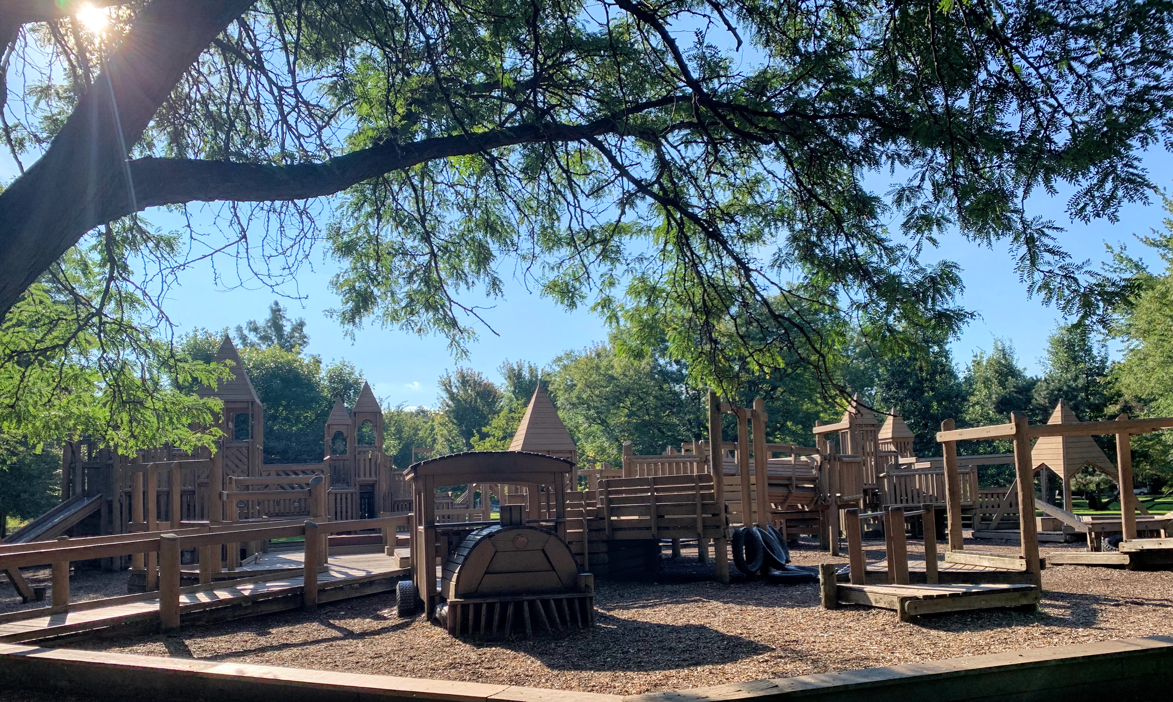 The playground at Indian Boundary Park is unlike most other playgrounds in Chicago and is an amazing place space. The structure is one of the few wooden playgrounds in Chicago (the other being Dorothy's Playground in Oz Park) and presents a sprawling and labyrinthine structure for kids to explore. This site can be crowded and it might be difficult to keep track of your child, but this is still a great playground to explore. The water spray area isn't as interesting or picturesque but is still an welcome amenity to the park.