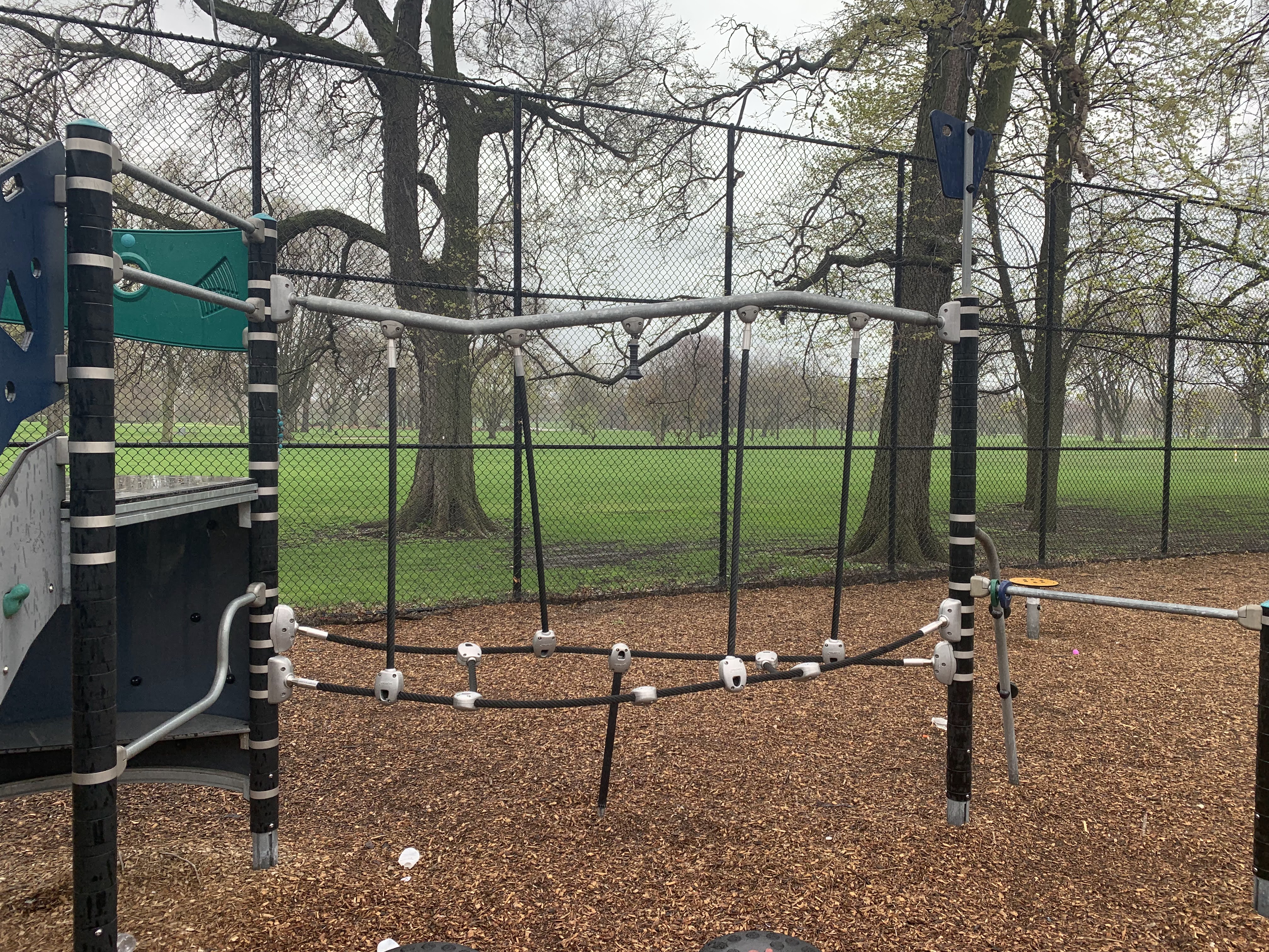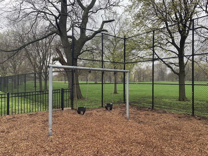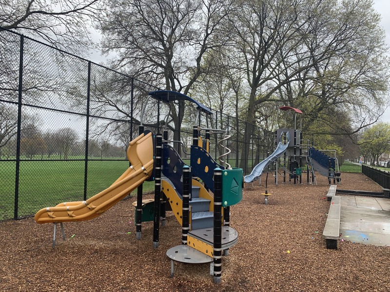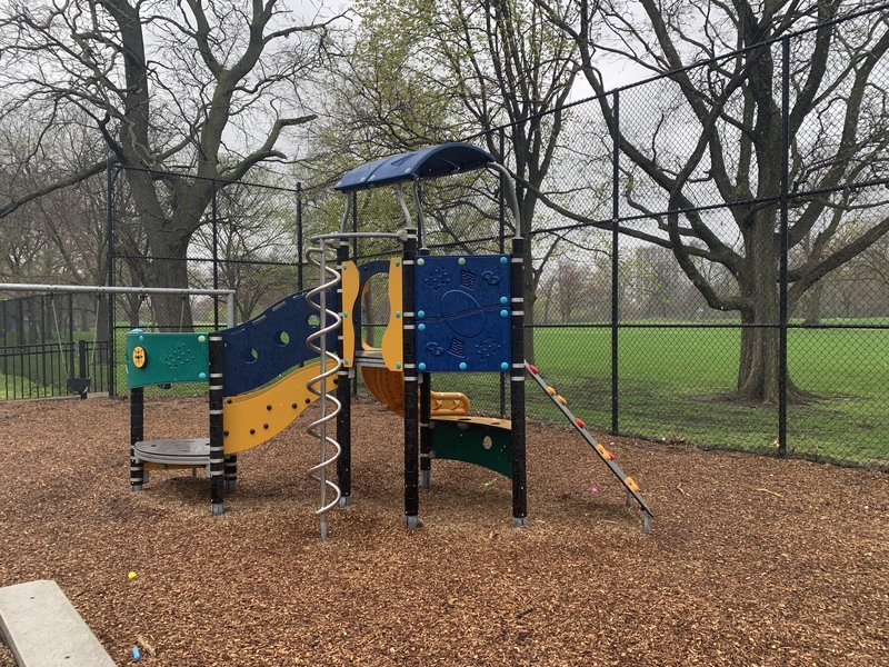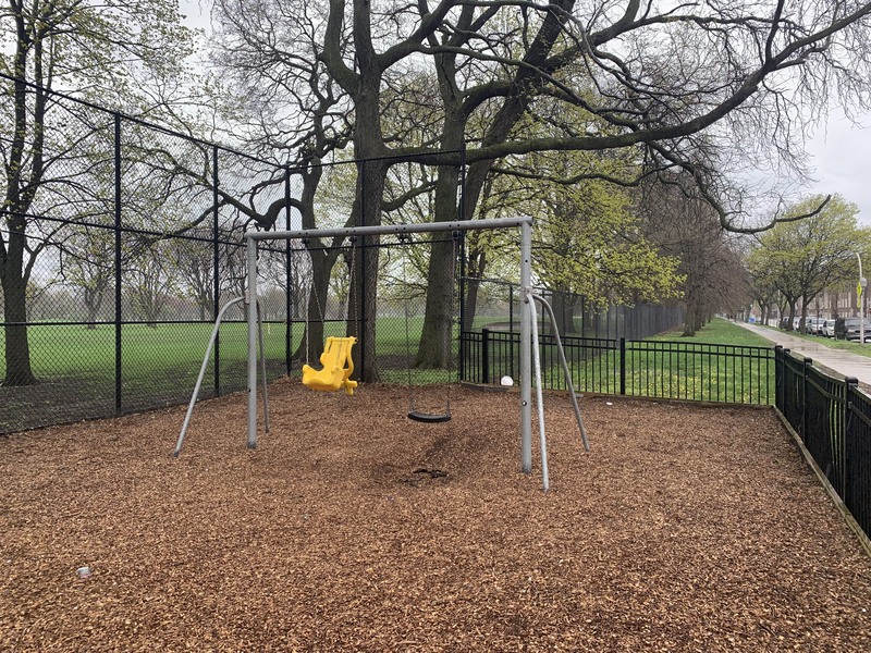 - This playground - one of many located in Jackson Park - is located on 67th between East End and Ridgeland. It features a distinctive set of playground equipment that includes a larger structure for older children and a smaller structure for younger children. There is also a rope traverse feature and the standard set of swings. The play area is fully enclosed and the play surface is wood chips.