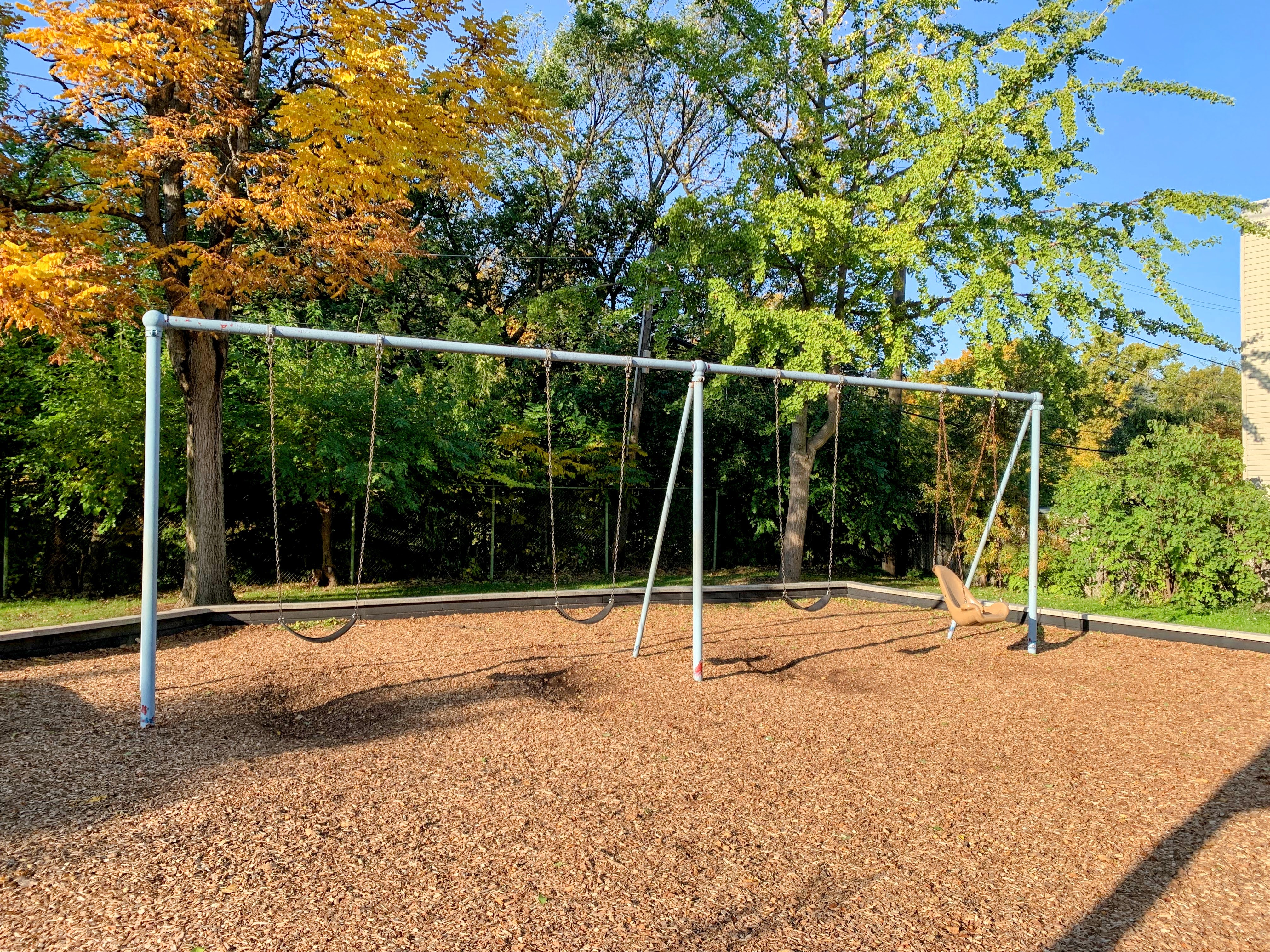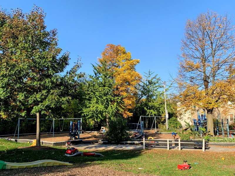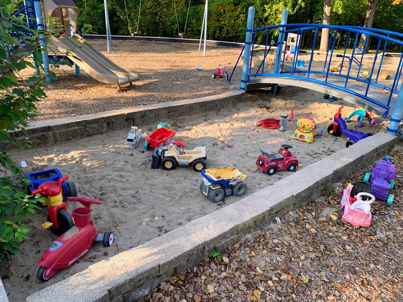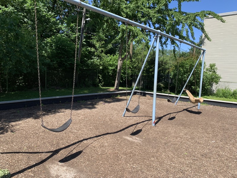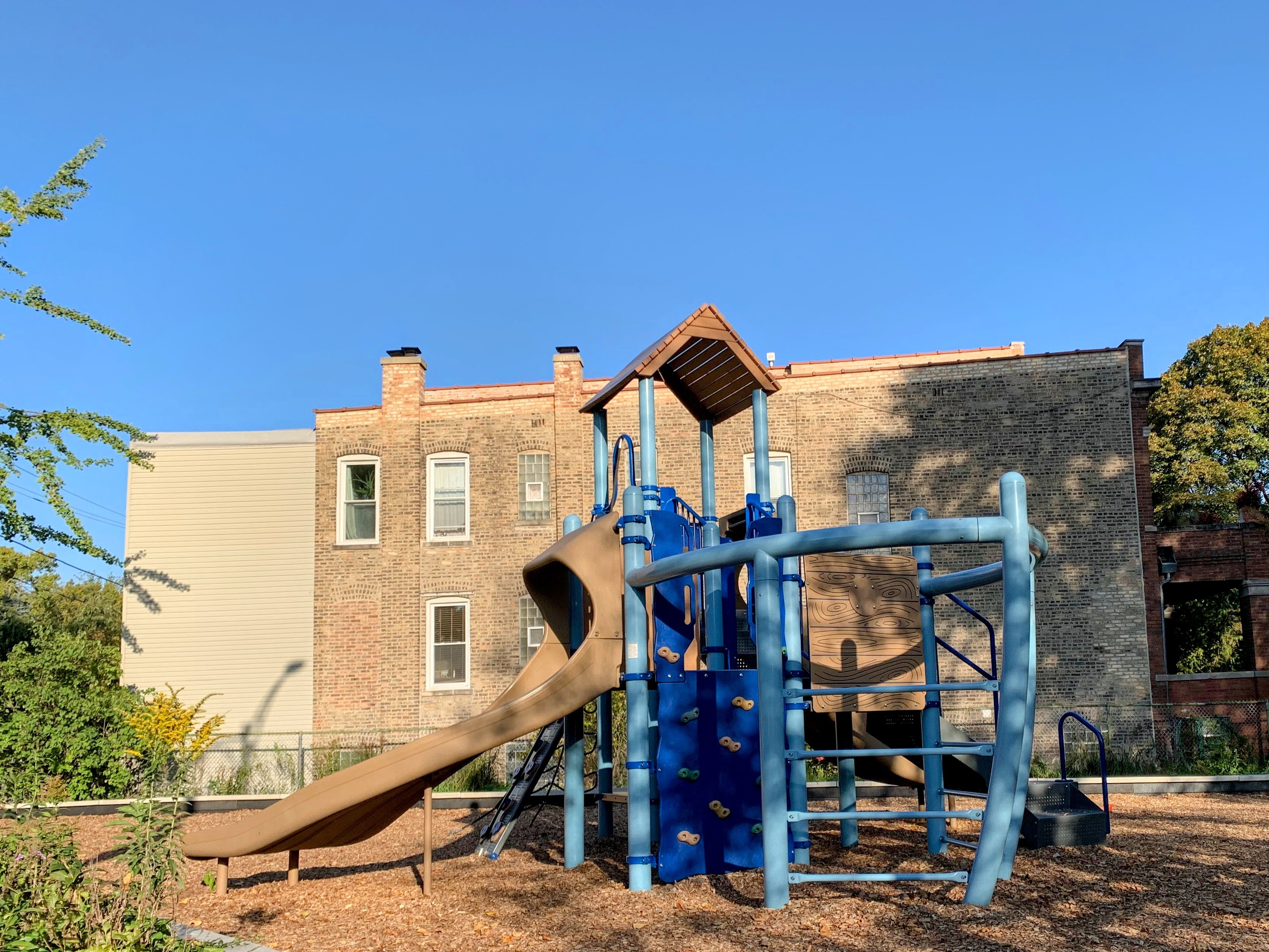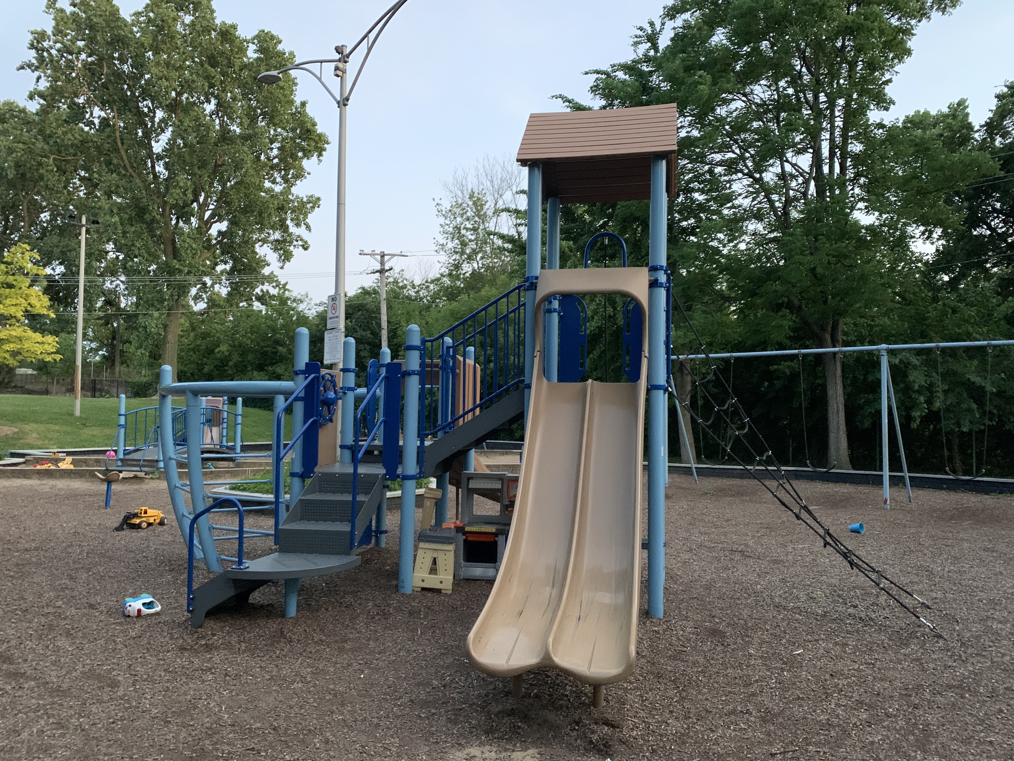 - A small neighborhood park that borders the Chicago River and the CTA Brown Line, this park contains a grassy hill and a large sand play area with a small bridge. The playground features a smaller area designed for younger children and another area with monkey bars and climbing elements designed for older children. There is plenty of morning shade and several benches and picnic tables at this park making this a comfortable spot to watch trains while you play.