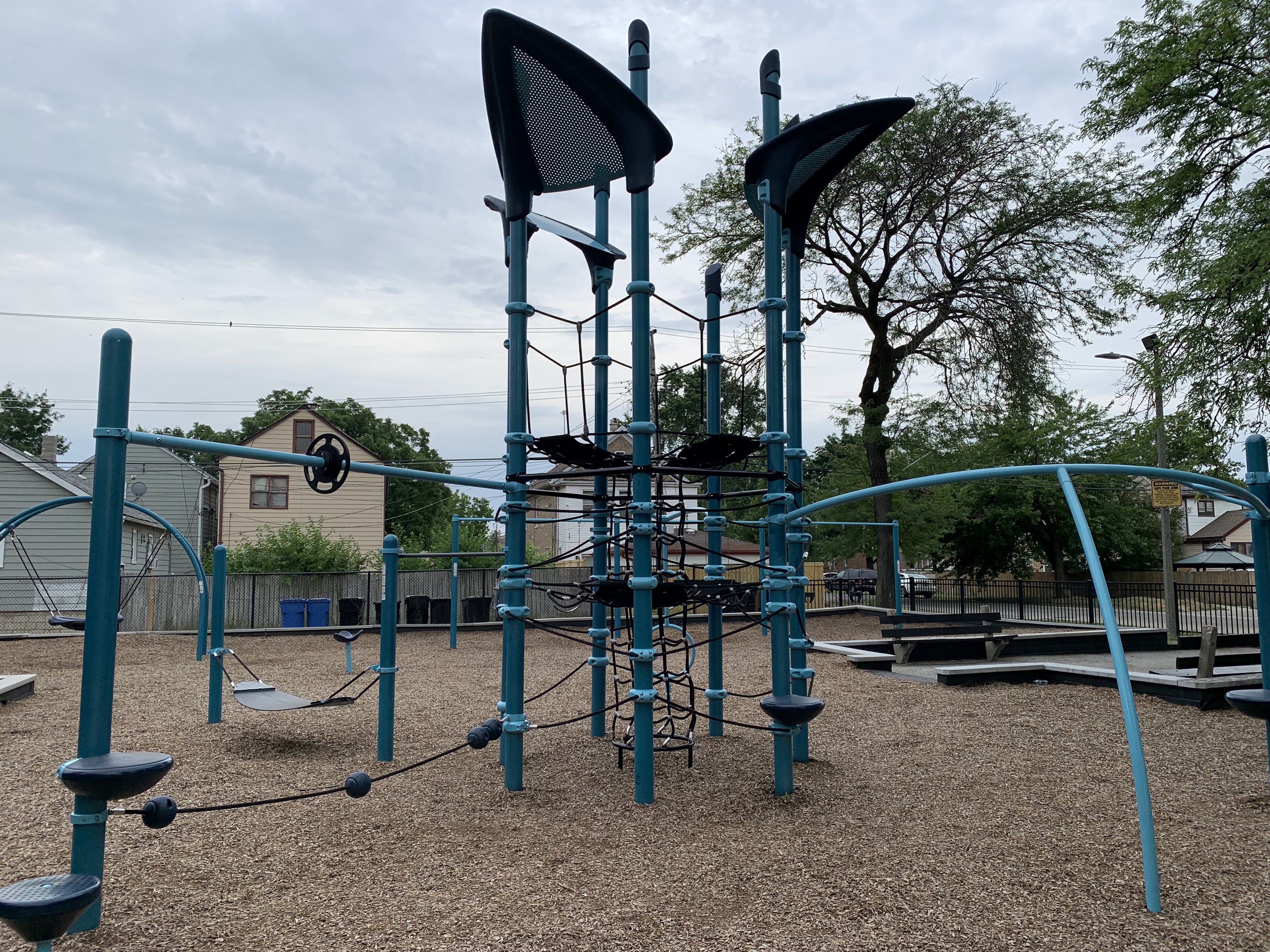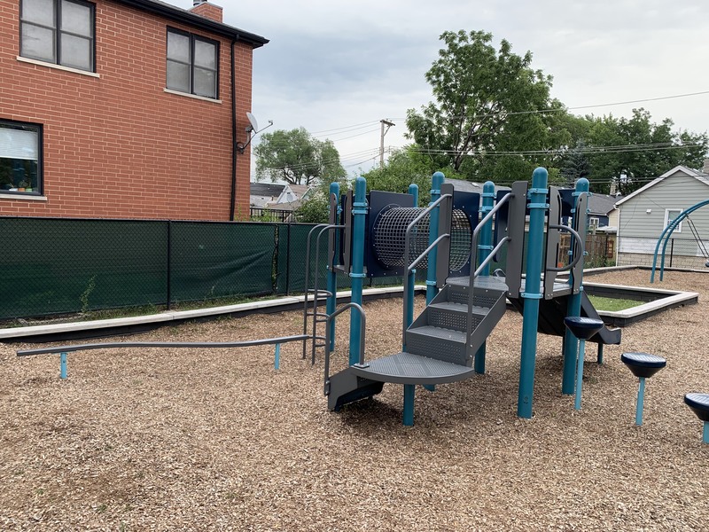 The playground at Jacolik Park is a new and modern playground. The centerpiece of the play structure is a large rope/net climbing element with various climbing, overhead, and traverse elements connected to it. There is a solid set of swings (toddler, adaptive, belt seat, and hammock saucer swing) to round out the playground equipment.