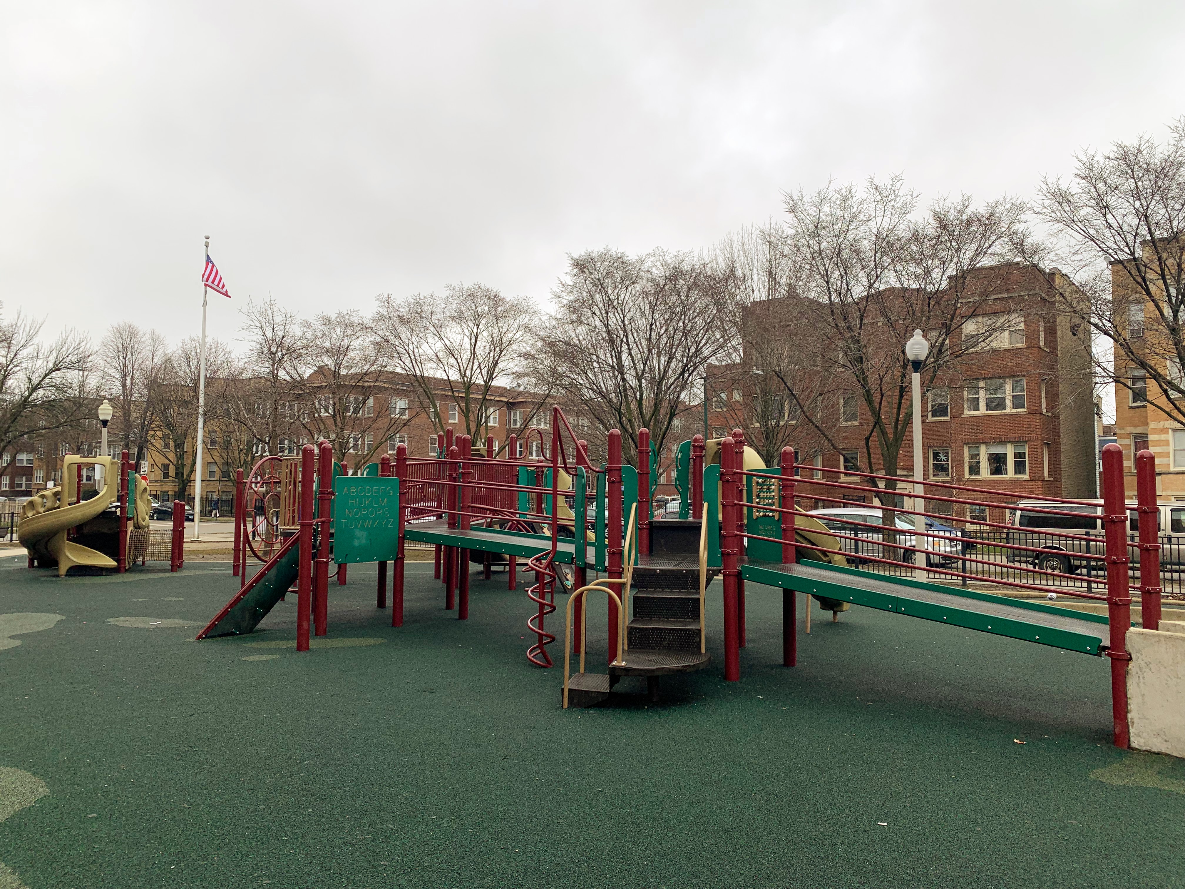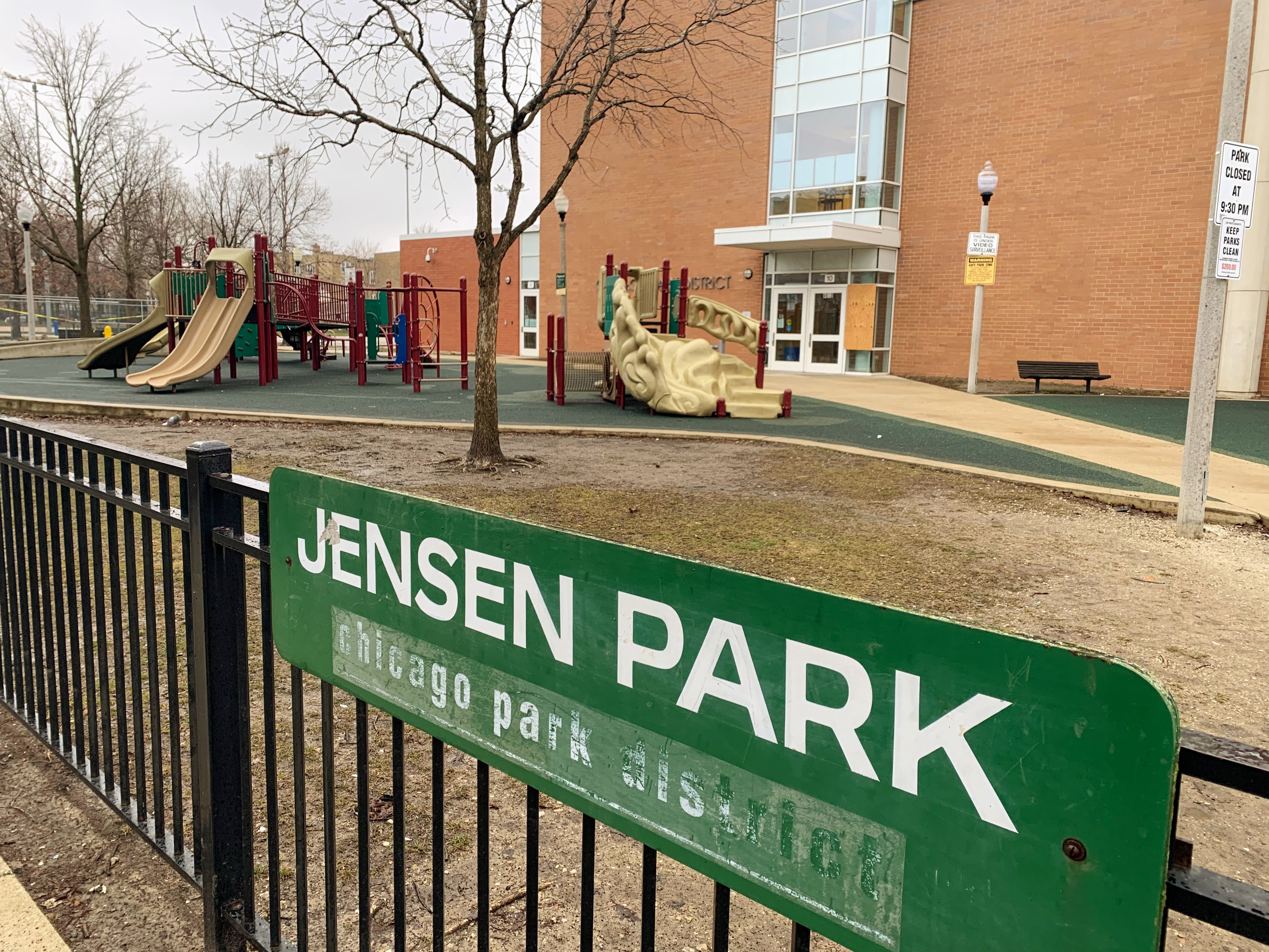 - Jensen Park is a small park with a great playground. There is a smaller structure for younger children, a large structure for older children, and a small set of swings. The large structure is accessible by a ramp and sprawls without getting too high off the ground. All in all, this playground has some great elements. The non-play amenities, however, are pretty basic. There are benches and a soft rubber play surface but there isn't much shade or other amenities. Despite these imperfections, this is still a fine neighborhood park and a good place to play.