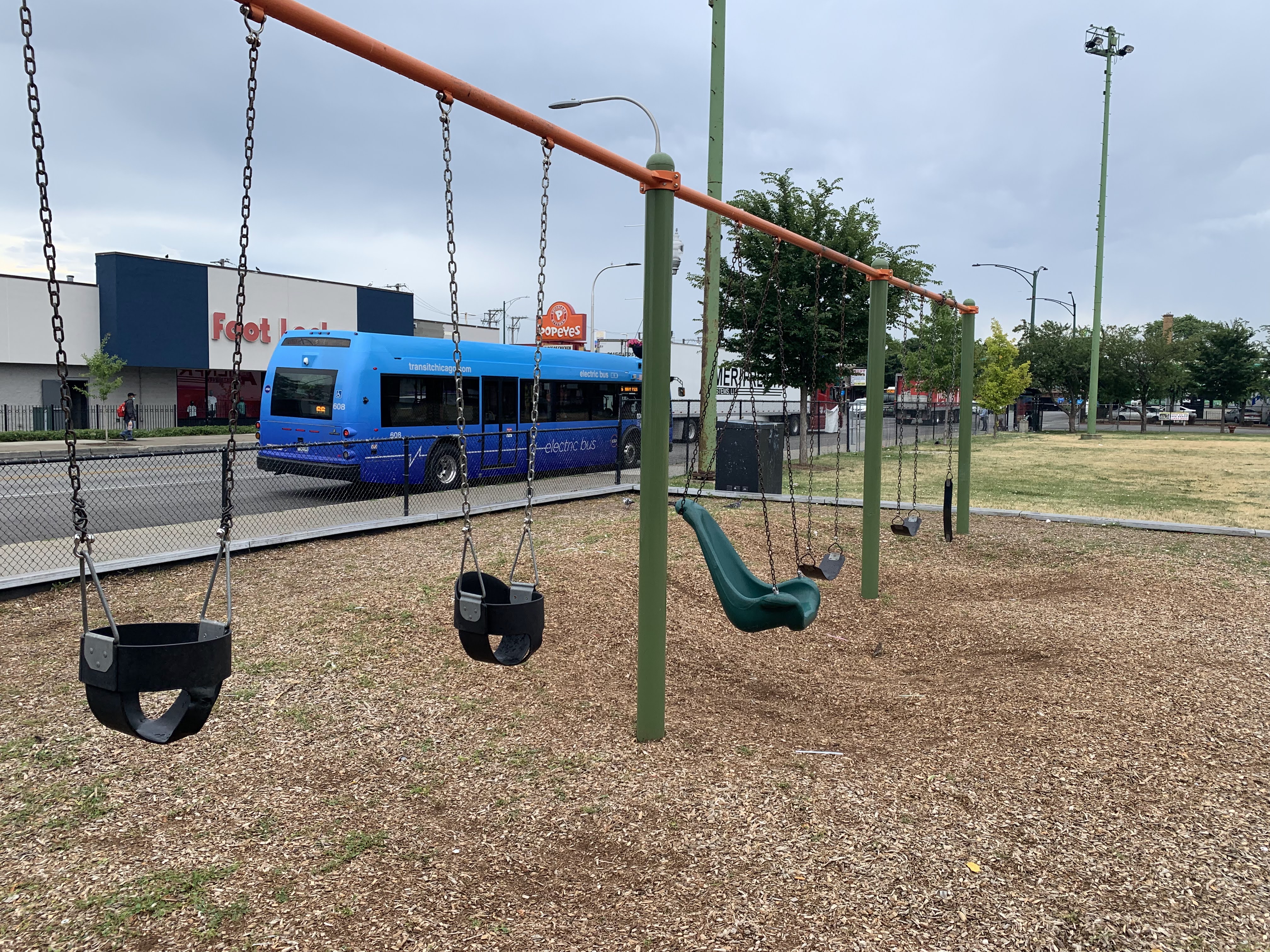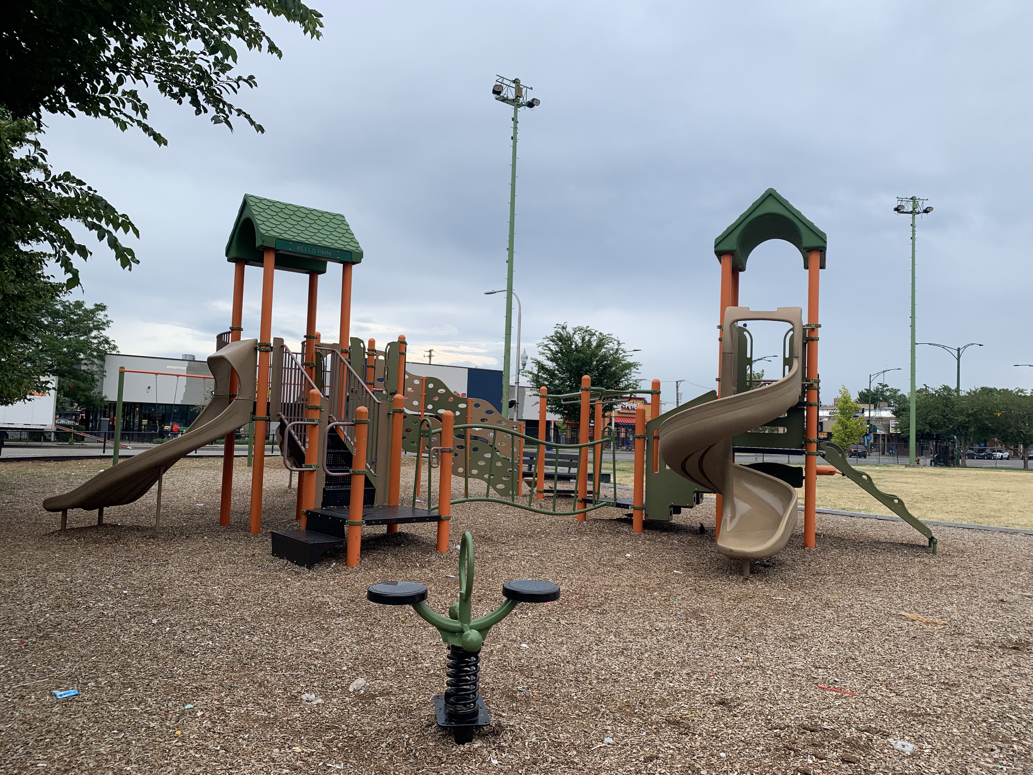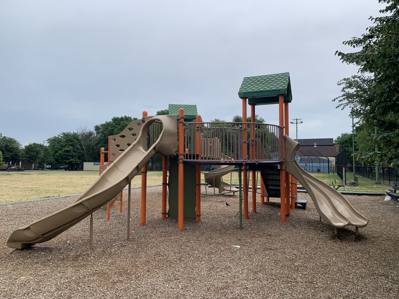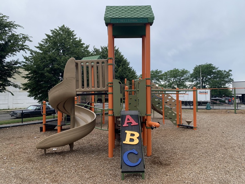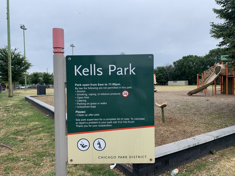 - Located in the northwest corner of the park, the playground at Kells Park features a large play structure with several slides and climbing elements as well as the standard set of Park District swings. The play area is fenced from the street but not fully enclosed and the surface is wood chips. There are a few benches near the bright and sunny play area.