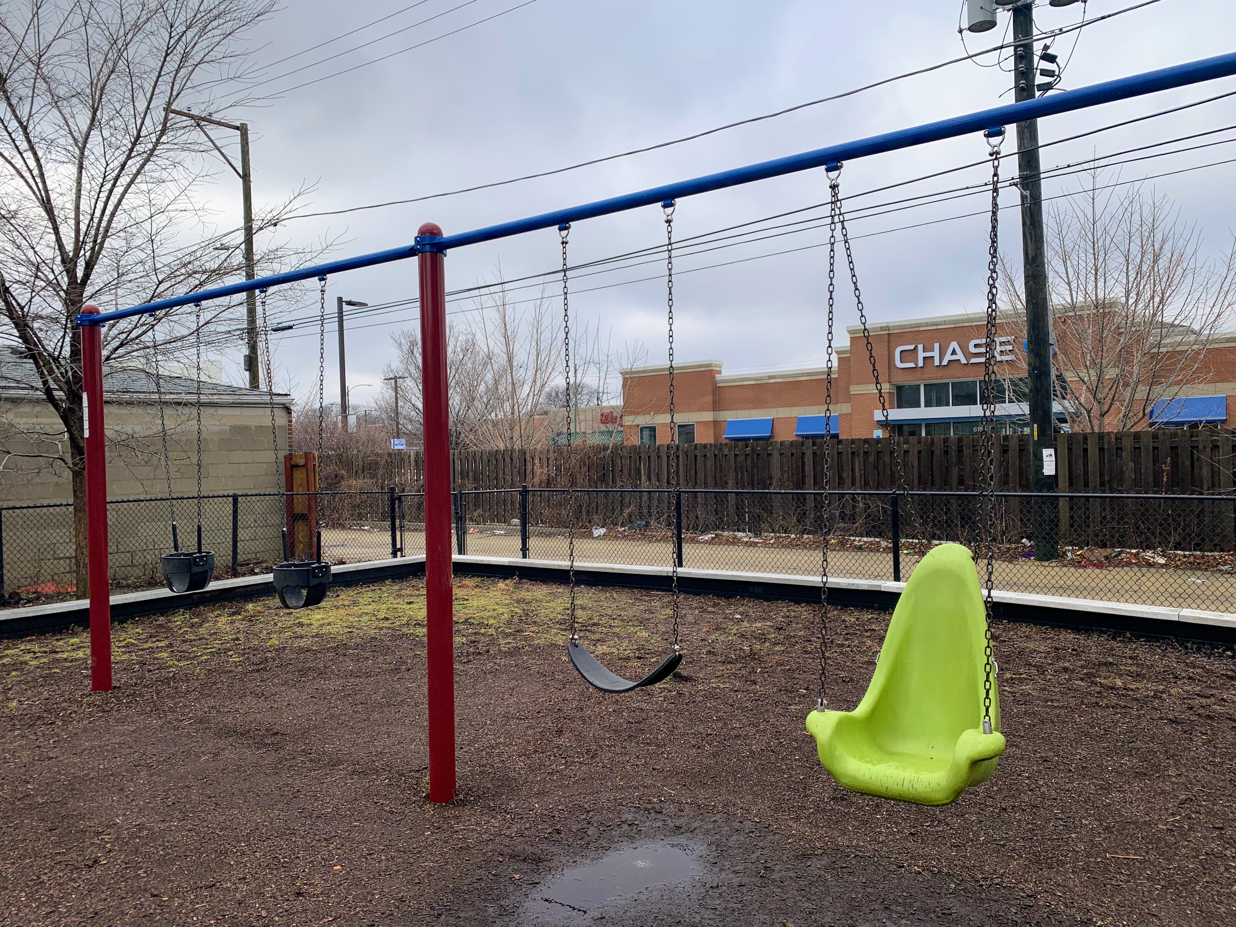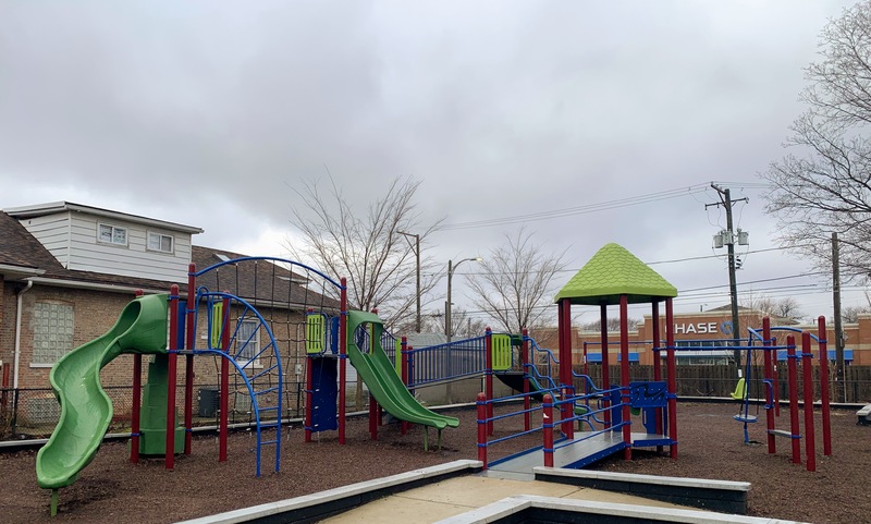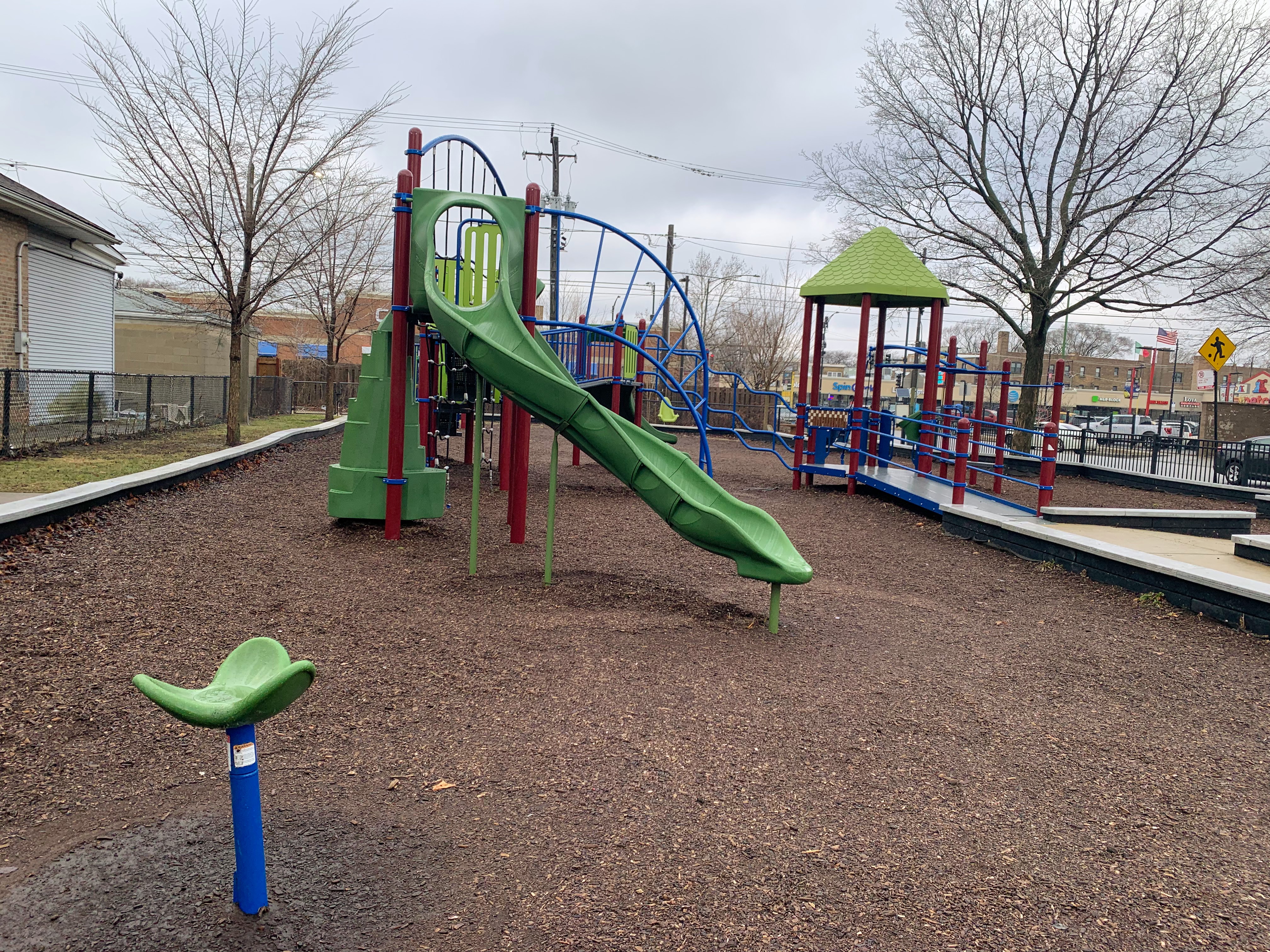 - Korczak Park is a tiny neighborhood park with a standard Chicago Park playground. There is a single large, sprawling structure that is partially accessible via a ramp and including climbing nets, monkey bars, and slides. There is also a standard set of Chicago Park swings (toddler, adaptive, and belt seat). The essential amenities like a few benches and a drinking fountain are present and the play surface is wood chips. All in all, this is a pretty standard Chicago Park playground.