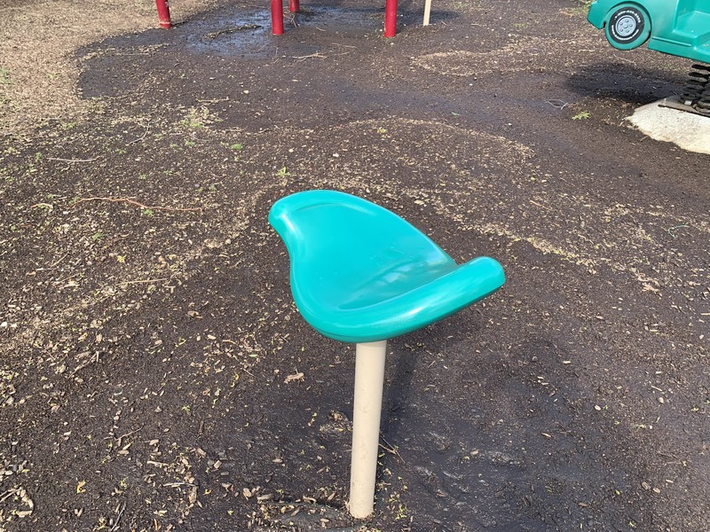 Like the other playgrounds in Legion Park, the play area opens directly into the park and isn't enclosed or fenced at all. There are a few benches and a drinking fountain nearby. The play area is quite large and the surface is wood chips. - Playground Features