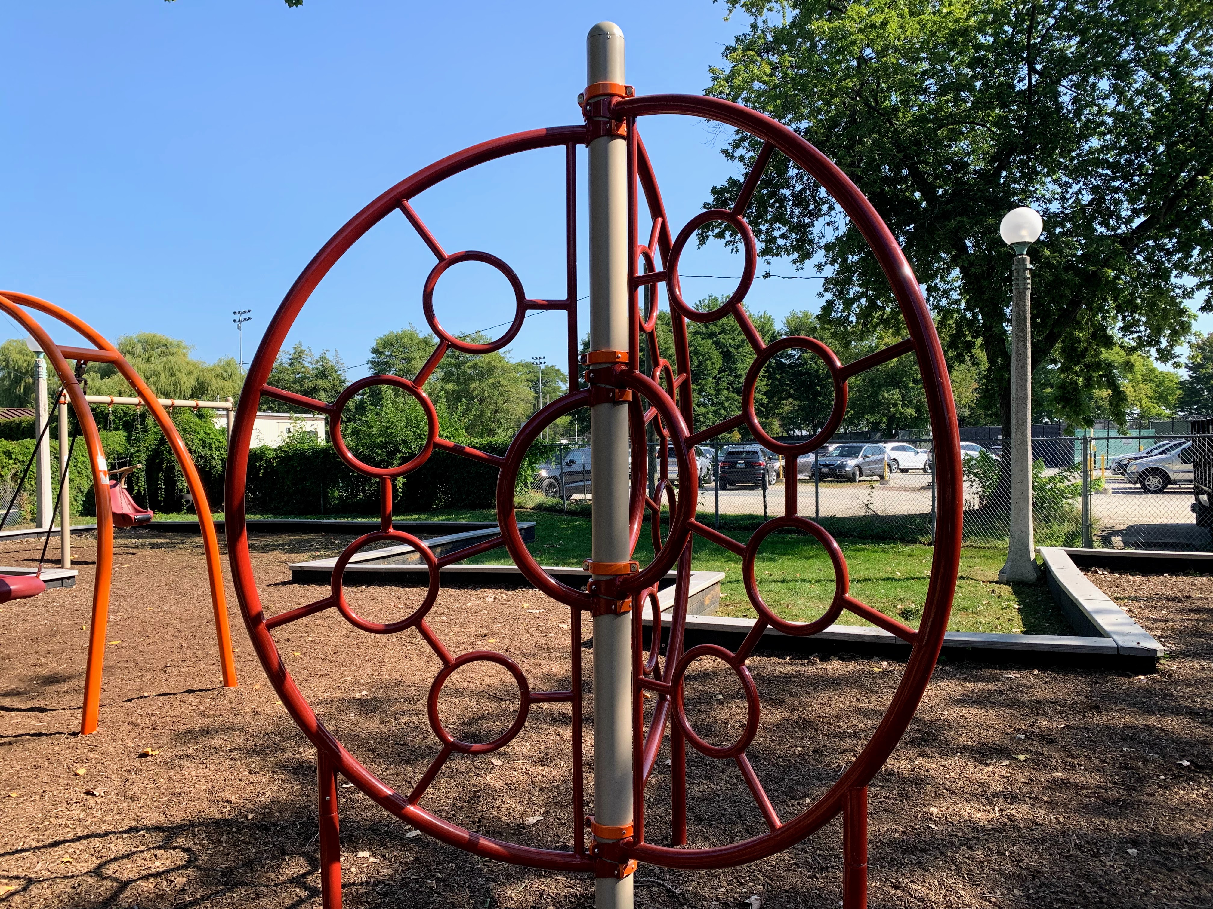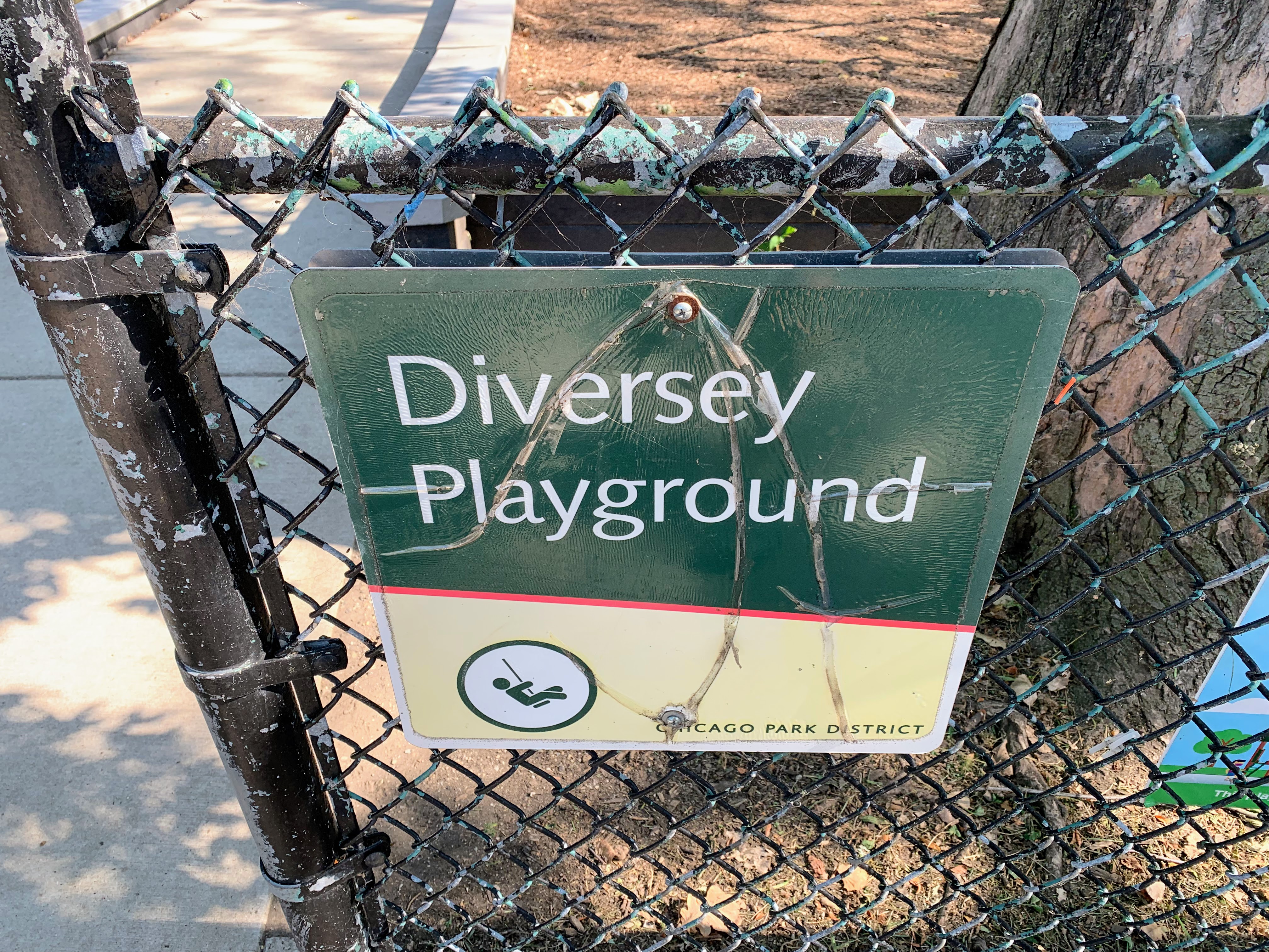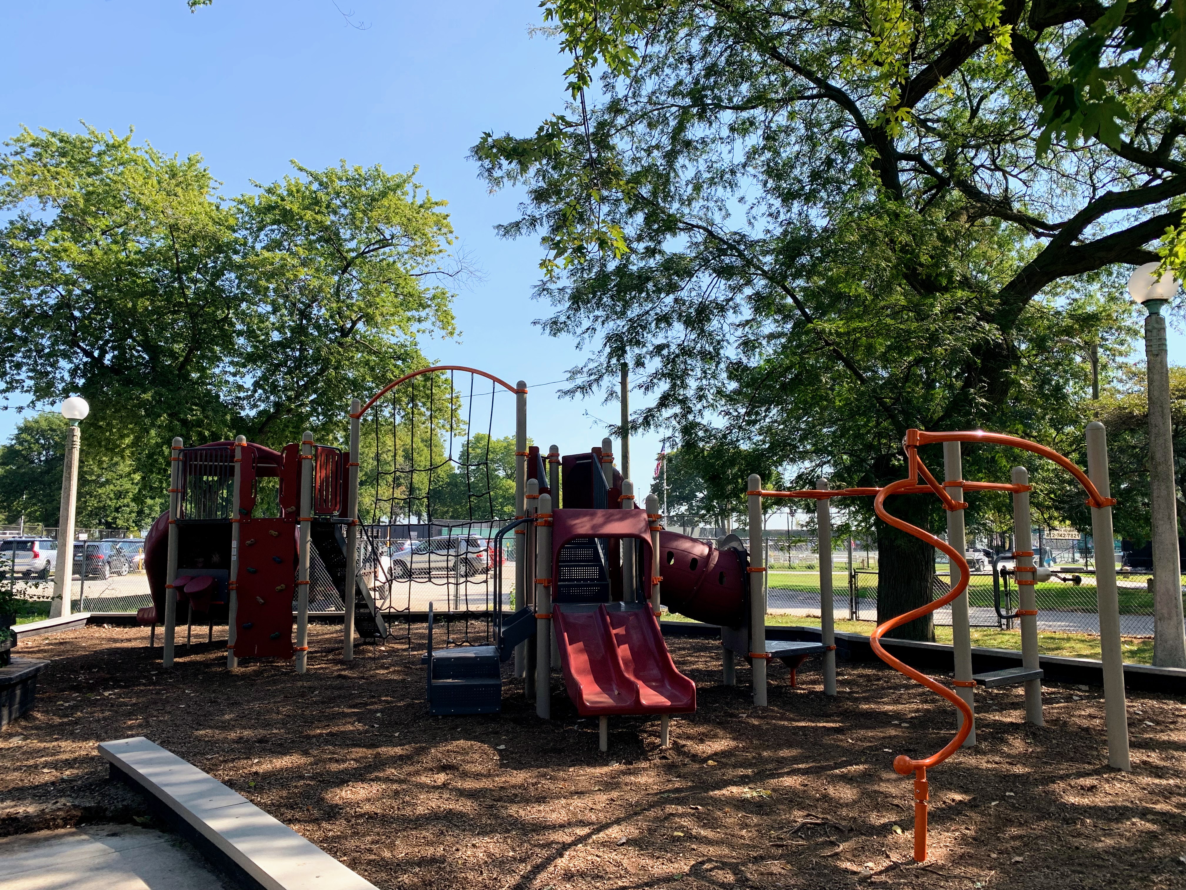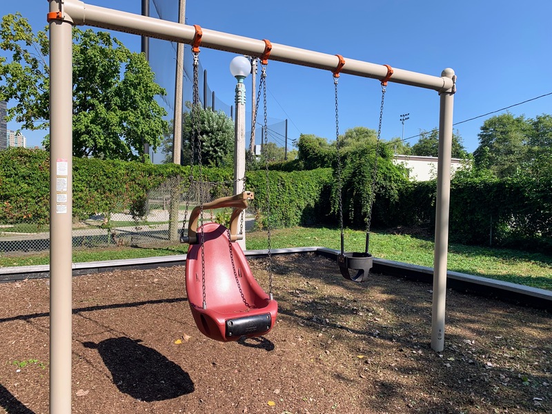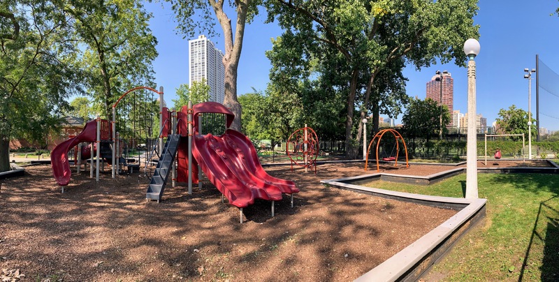 The site itself is mixed but has some classic Chicago Park features - wood chip surface, wooden benches - and I bet the nearby Chicago Park building would provide access to a drinking fountain and bathroom (when open). All things considered, I still think this is a solid playground. - Playground Features