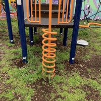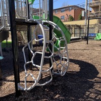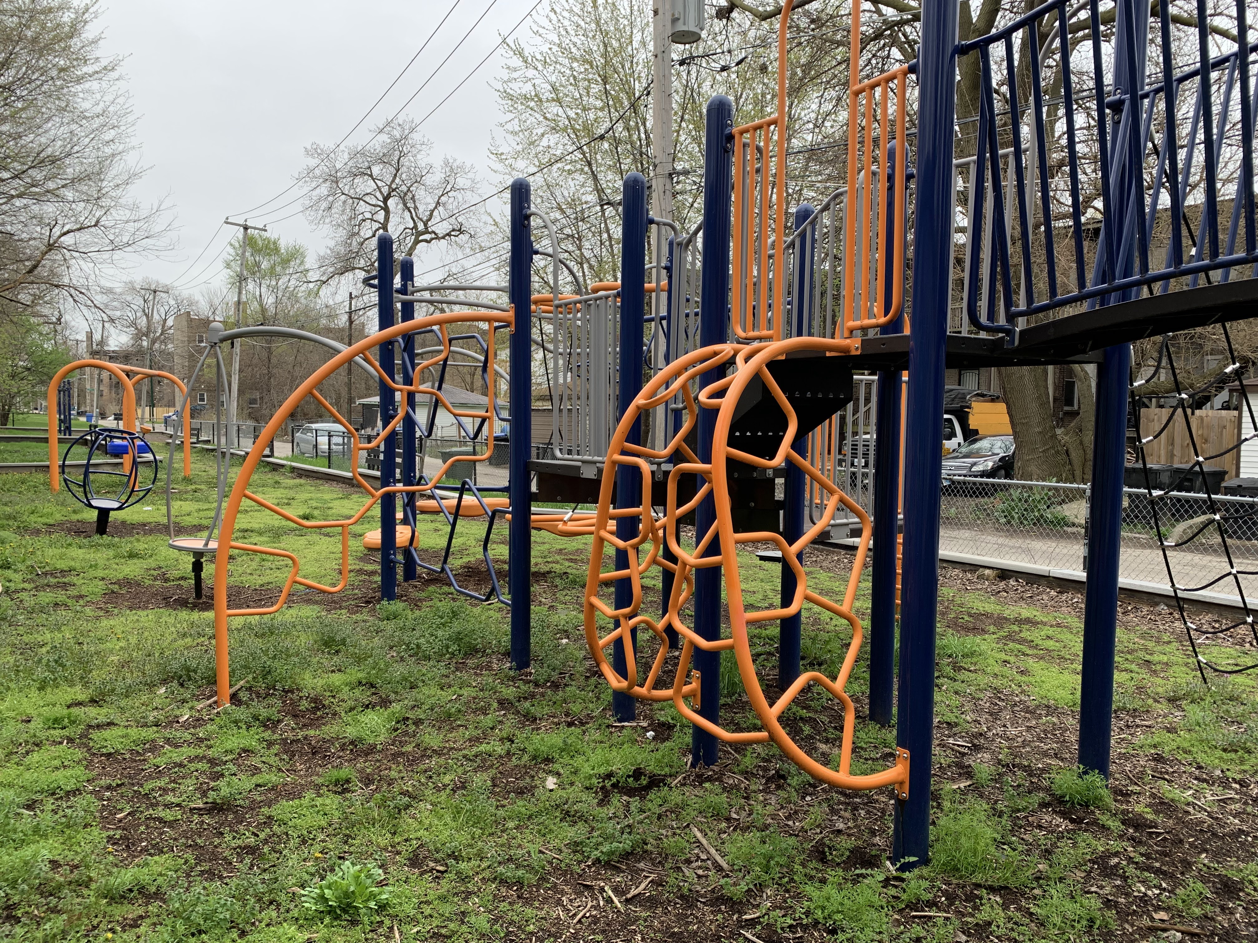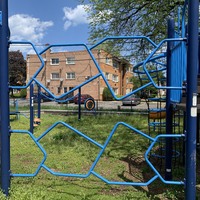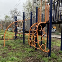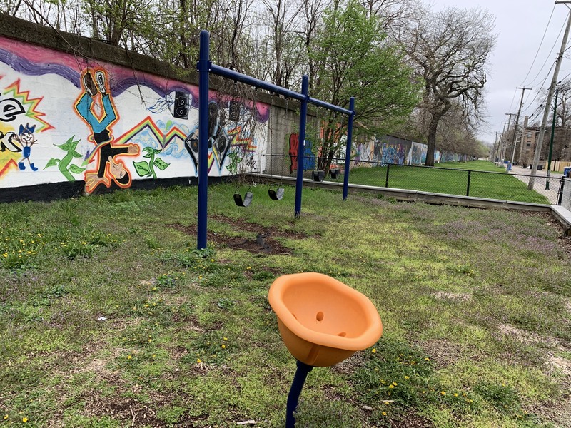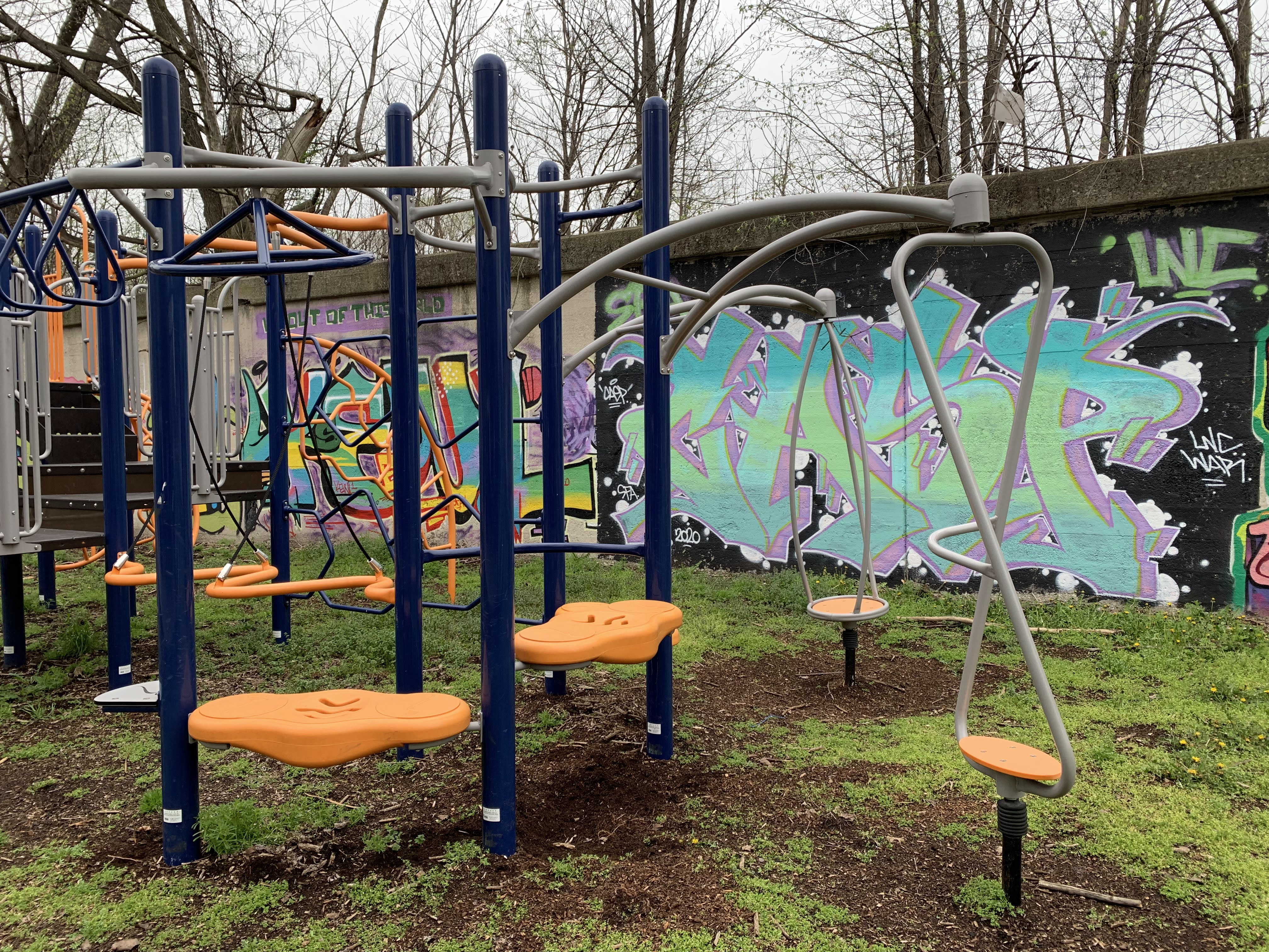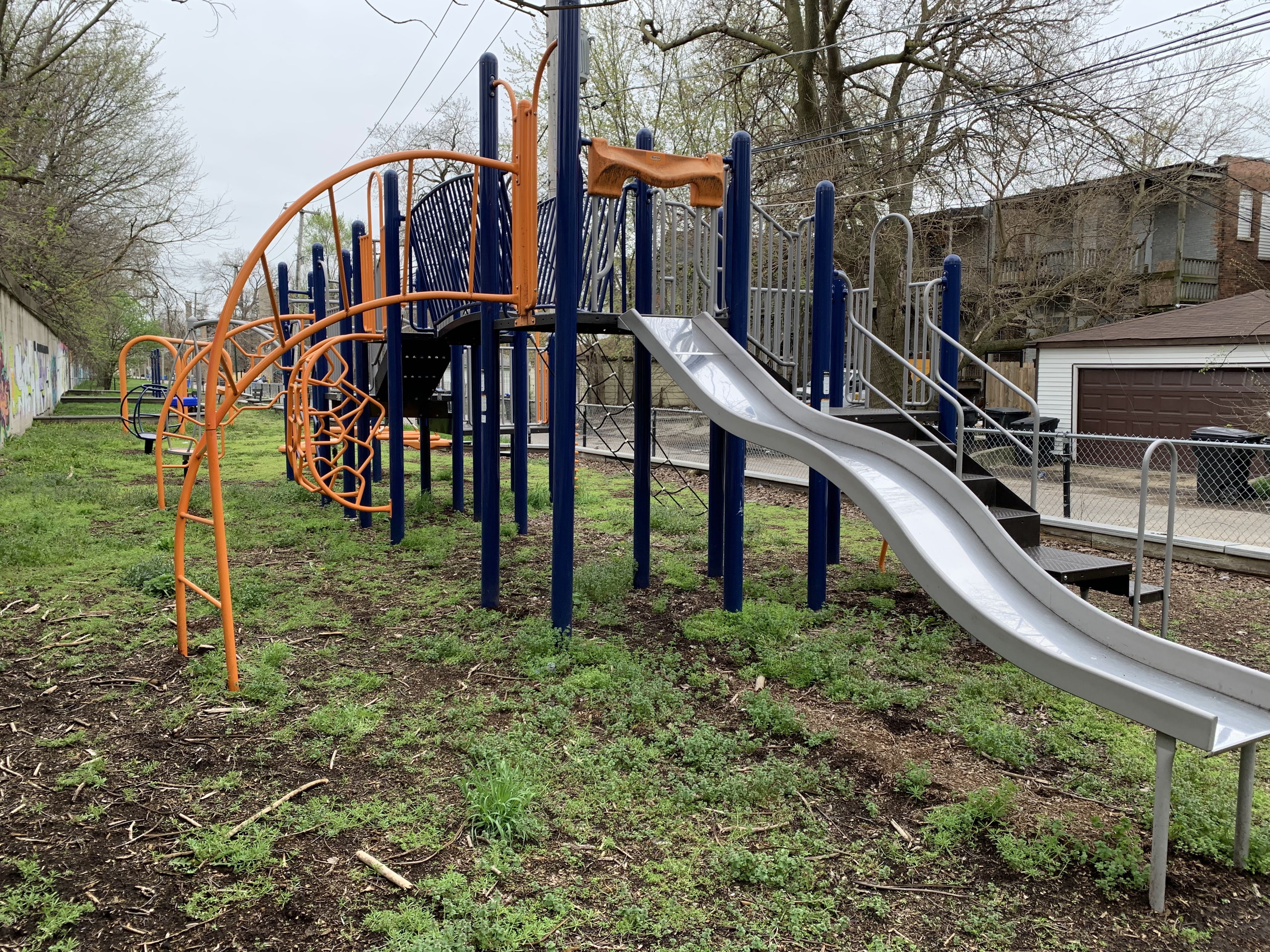 - Lyle Park, situated on a stretch of Wallace Ave that feels more like an alley and next to an elevated freight train line, features some great graffiti art and climbing elements. The main play structure was installed in 2016 and features a number of unique metal climbing and traversing elements and - curiously - just one metal slide. There are swings (toddler, traditional, and tire) in the narrow play area too. The play surface is wood chips and is shaded by large trees.