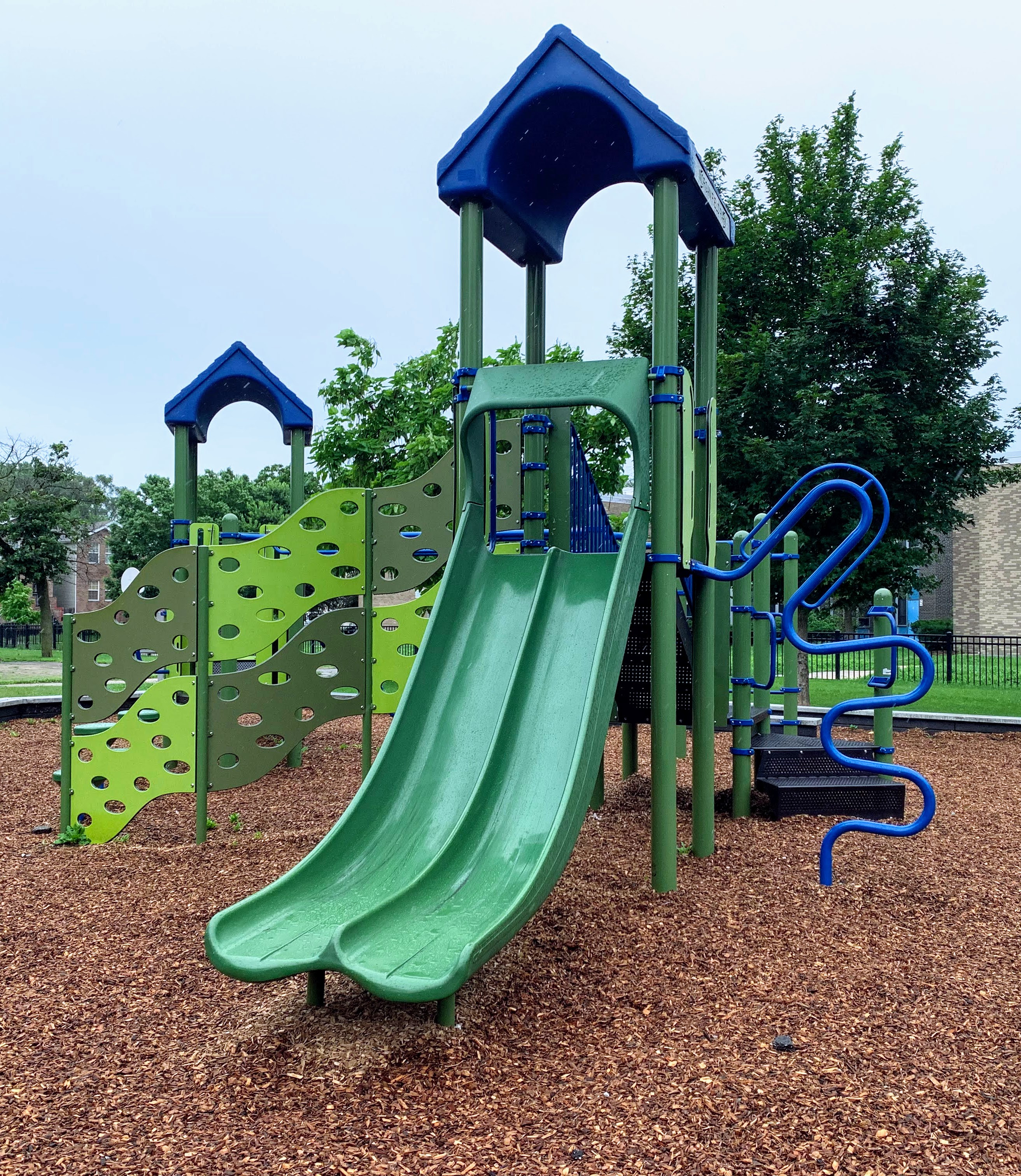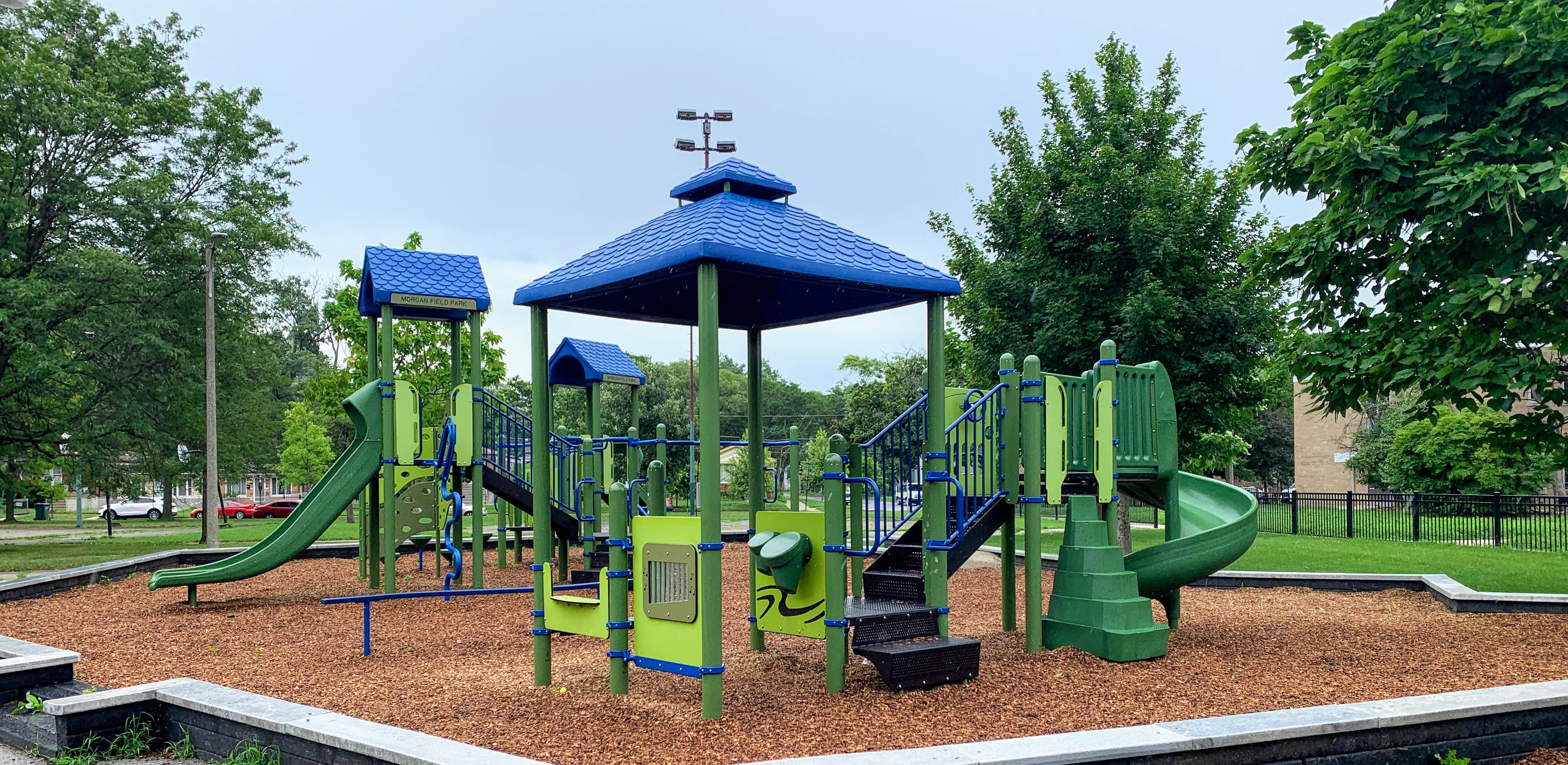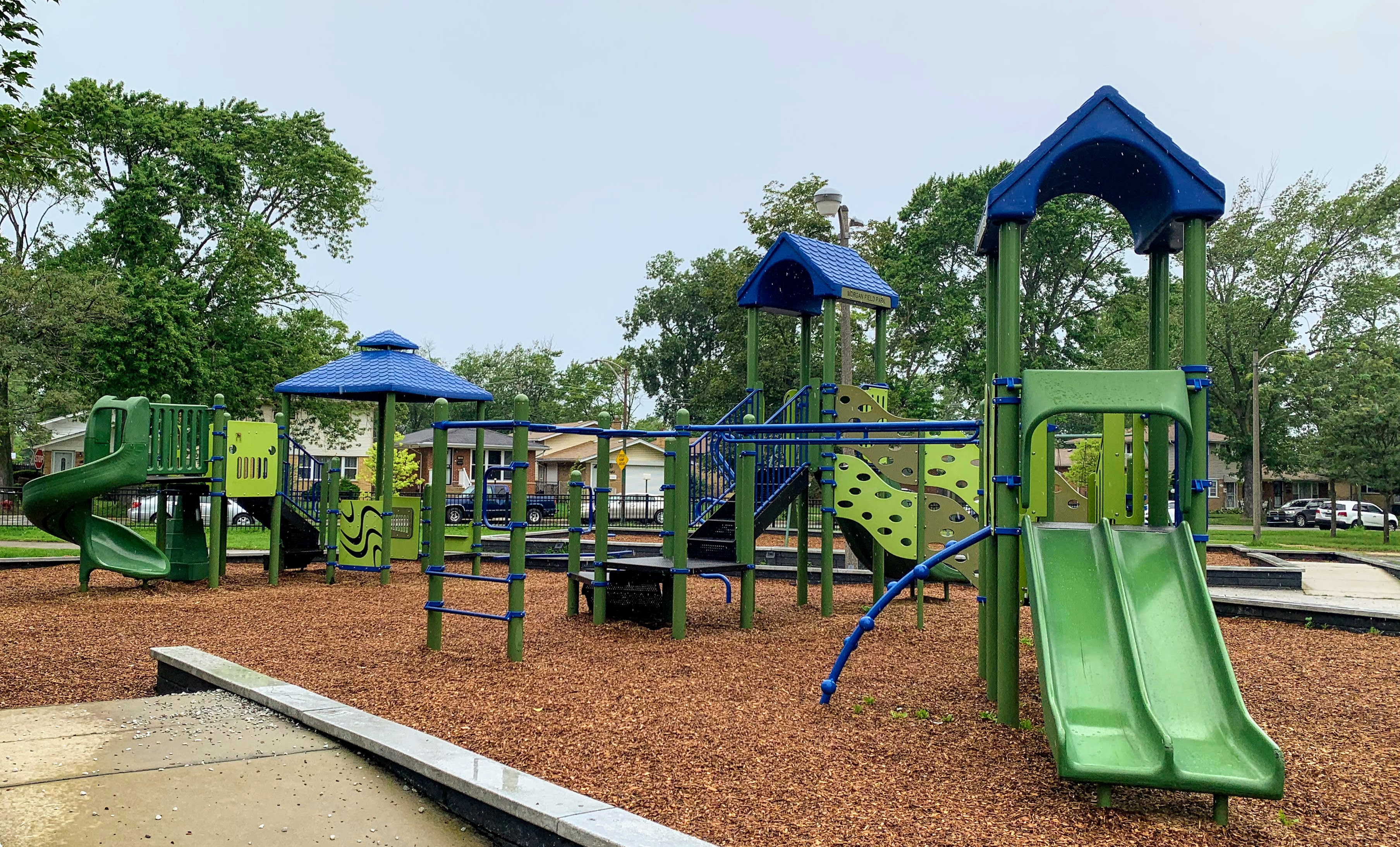 - The playground at Morgan Field Park is a basic and traditional playground. I don't mean that as an insult but merely as descriptive. This playground has the essential elements - large play structure with slides, various climbing elements, monkey bars, standard Park District swings - without much else. Set in the middle of a small field and surrounded by grass, and with wood chips as the main play surface, this playground is a standard neighborhood playground.
