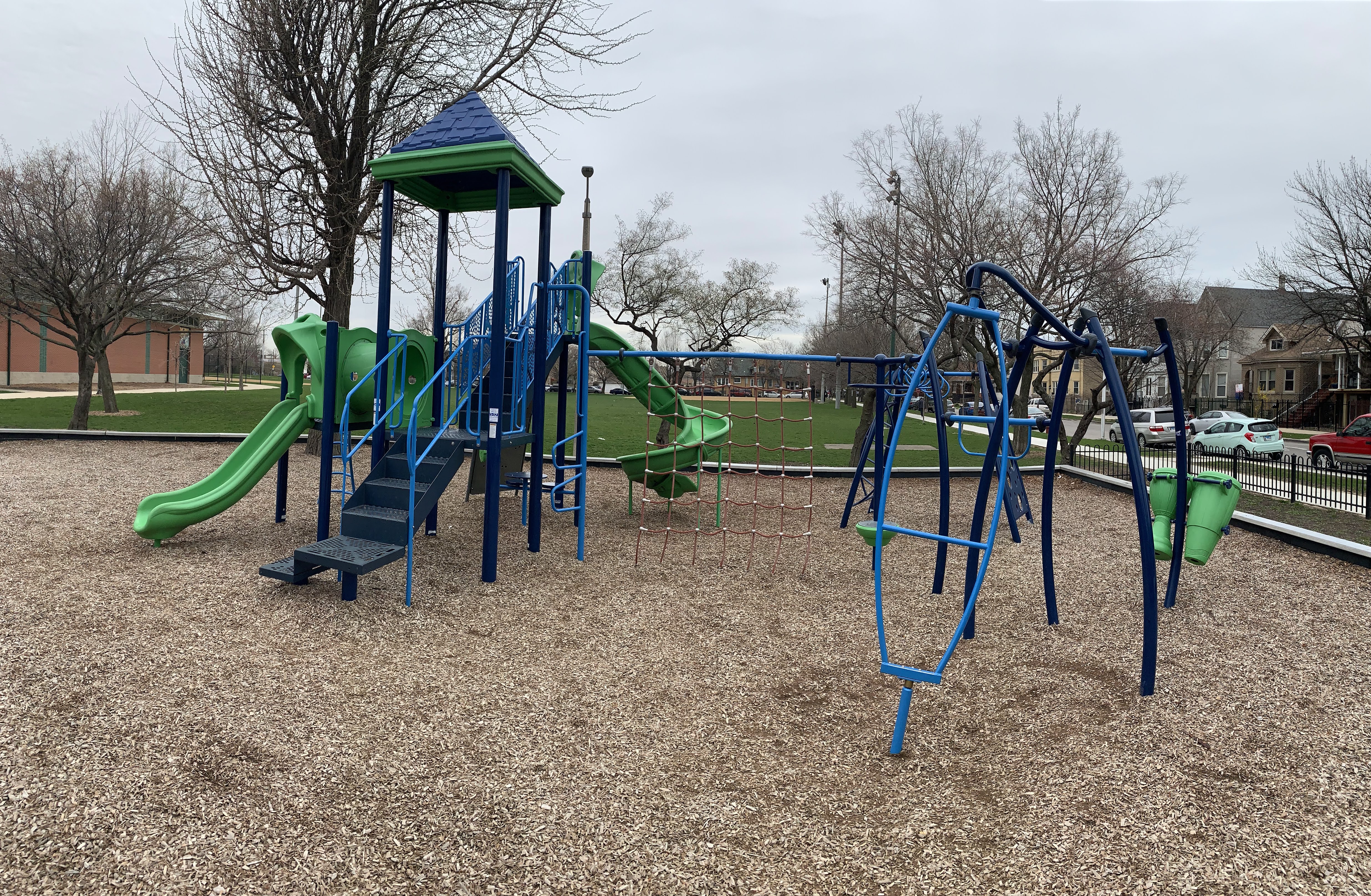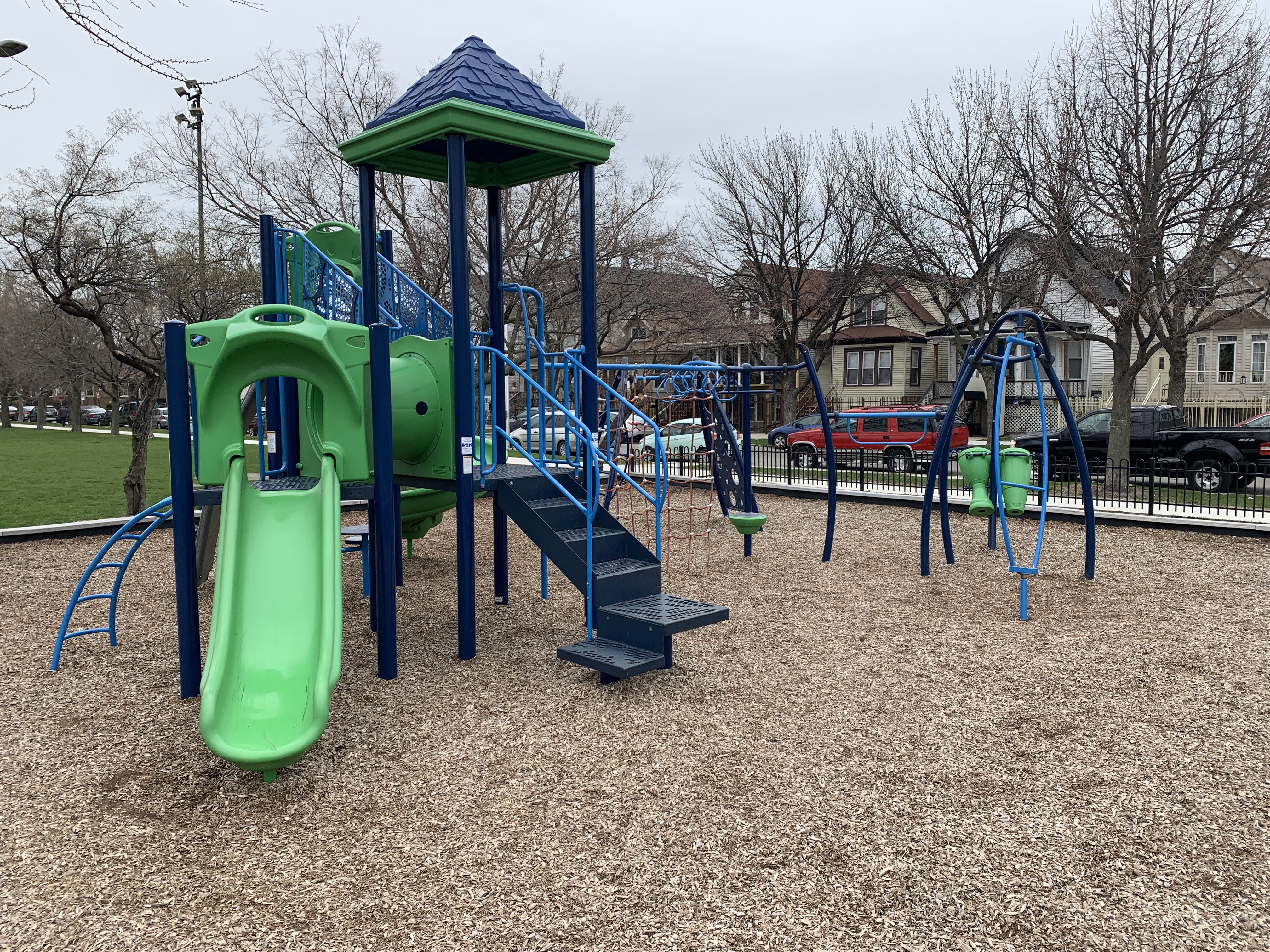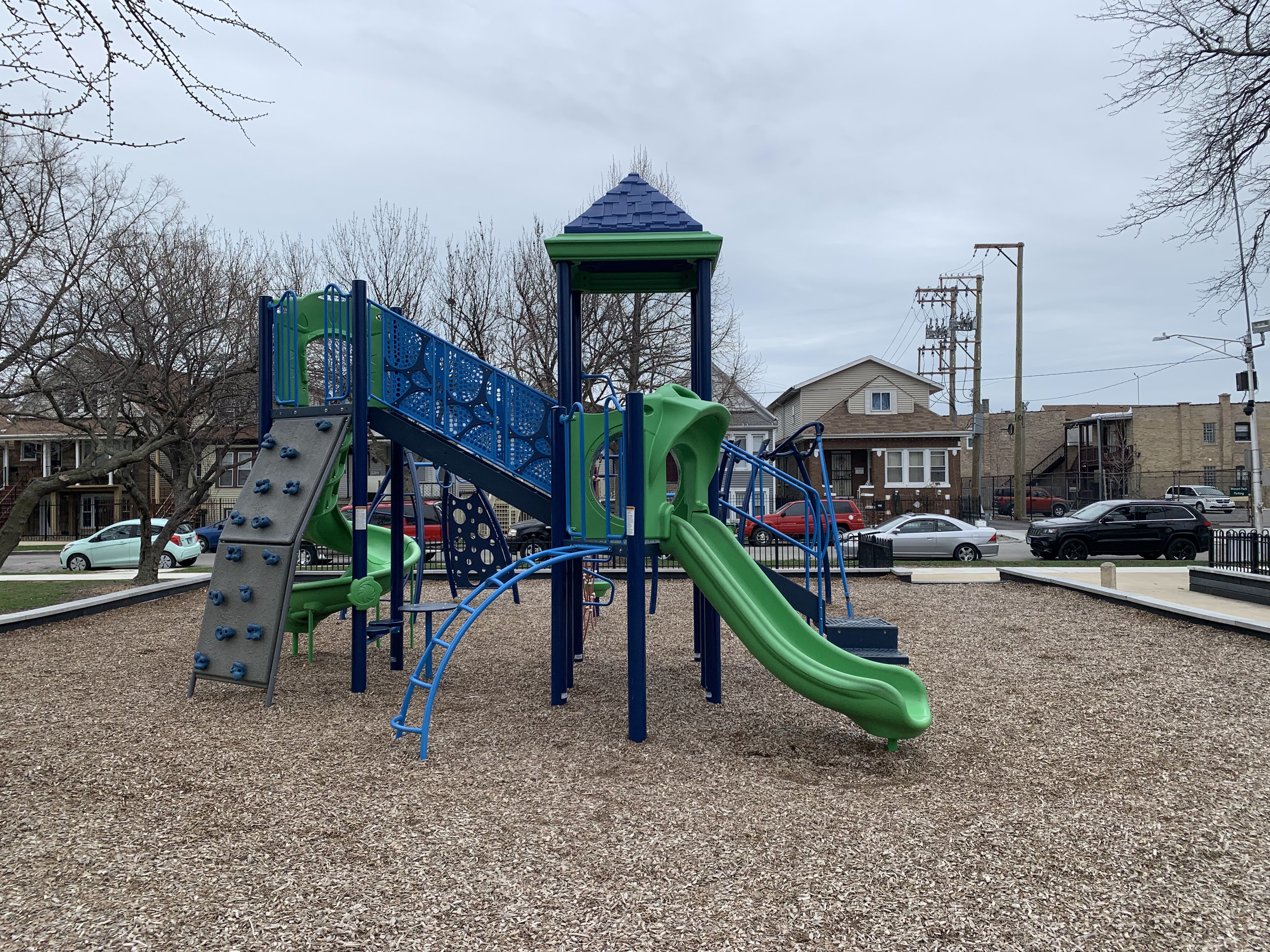 - Renovated in 2015, the Mozart Park playground offers modern and well-maintained elements to a variety of users. There is a larger play structure for older children and a small structure for younger children in a play area covered with wood chips. There are a few benches in the area and it near both the Mozart Park field house and the Metra train line.