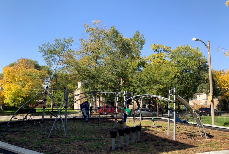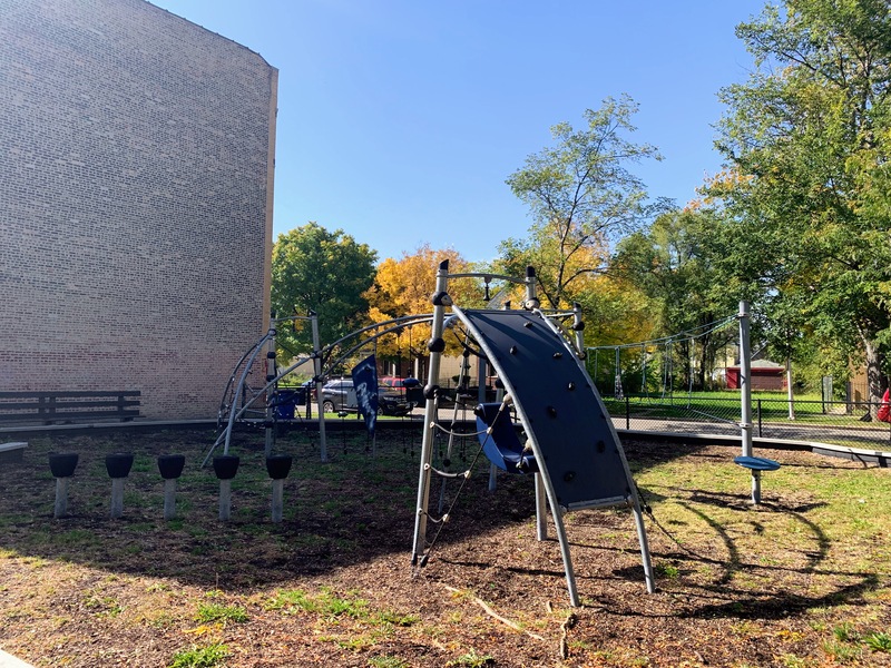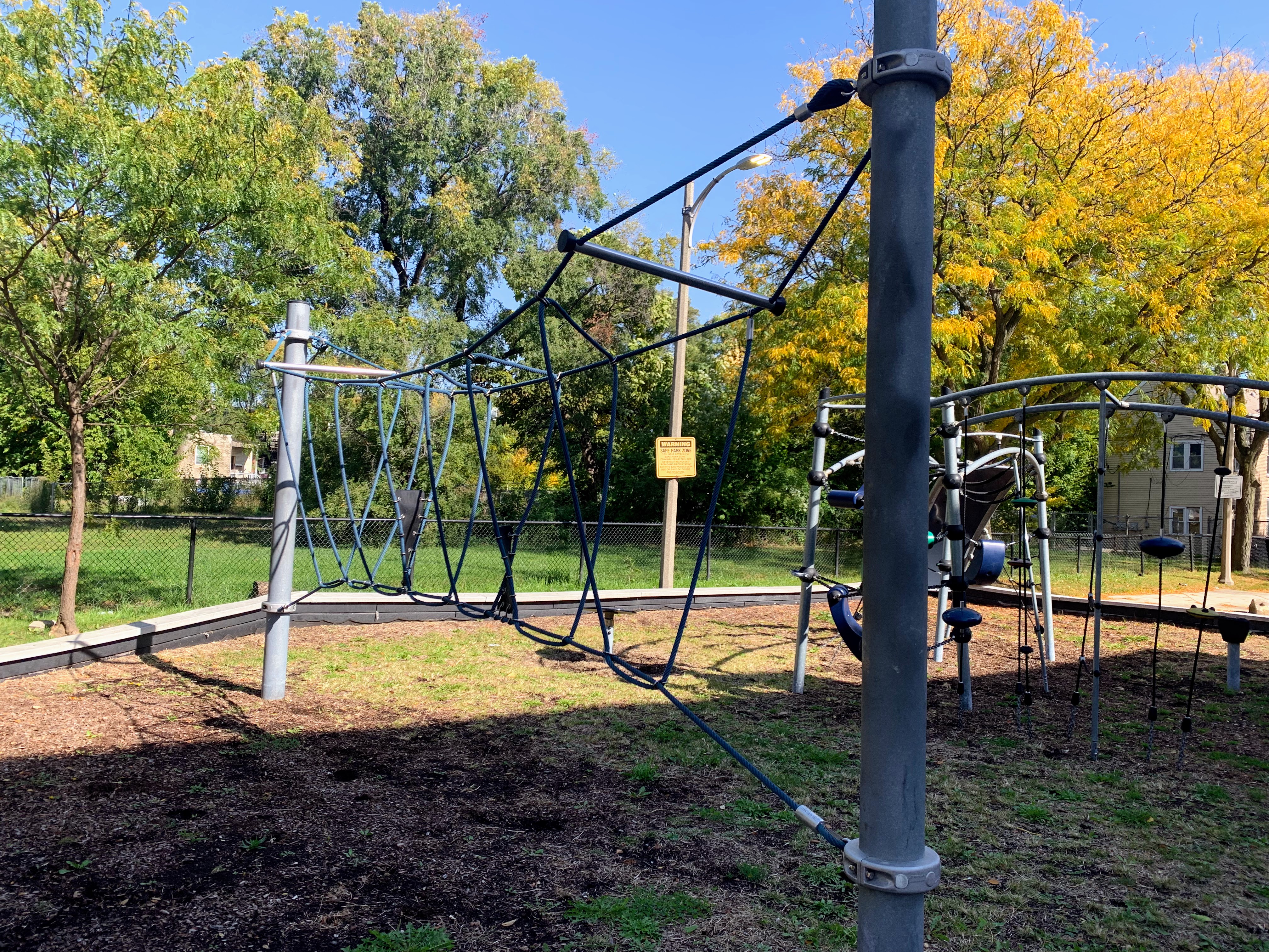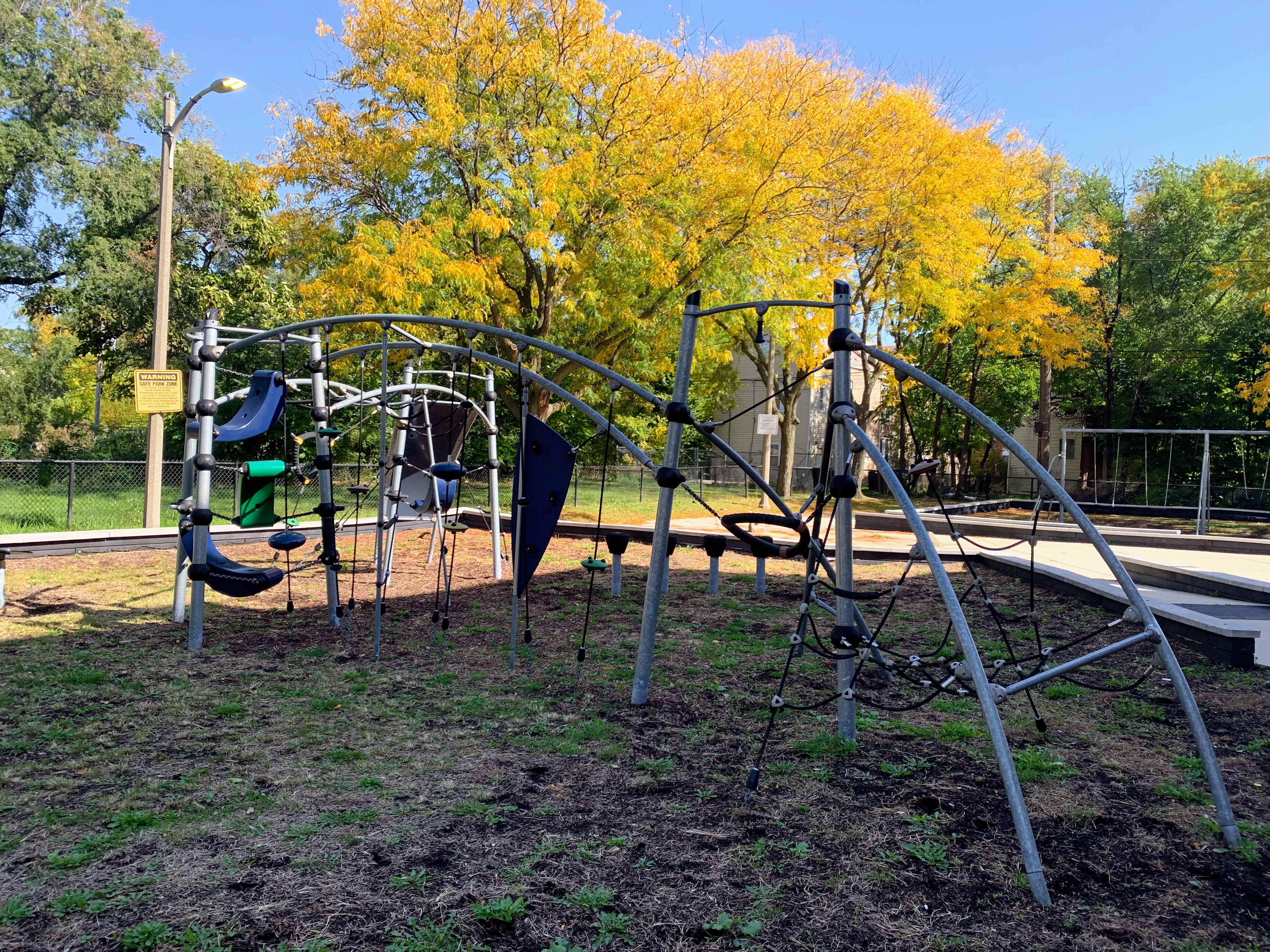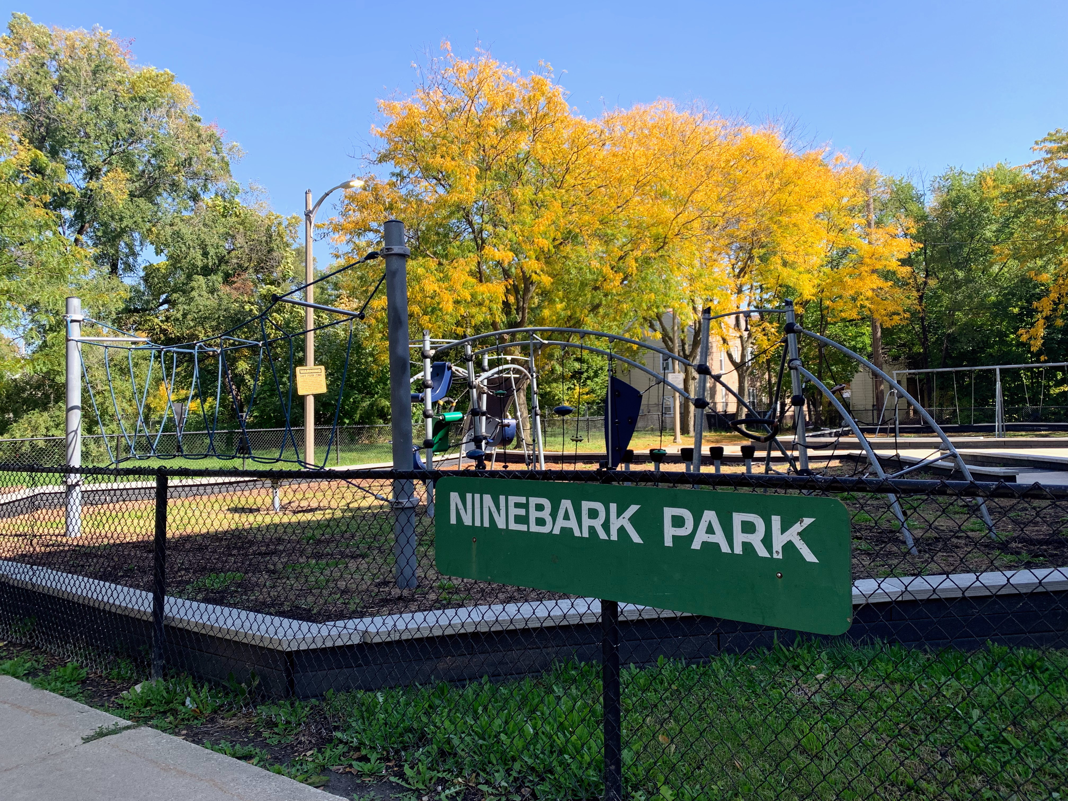 I would say the playground in Ninebark Park is a unique playground with somewhat strange and non-traditional elements. However, in visiting this location, I spoke with a neighbor who hated the equipment at this park and I'm going to honor that interaction with this review. This neighbor complained there weren't any slides at the park - and she is right! There isn't a traditional structure at this park but rather a collection of climbing elements. The only standard elements were the swings and the simple 'four sprayer' water feature.