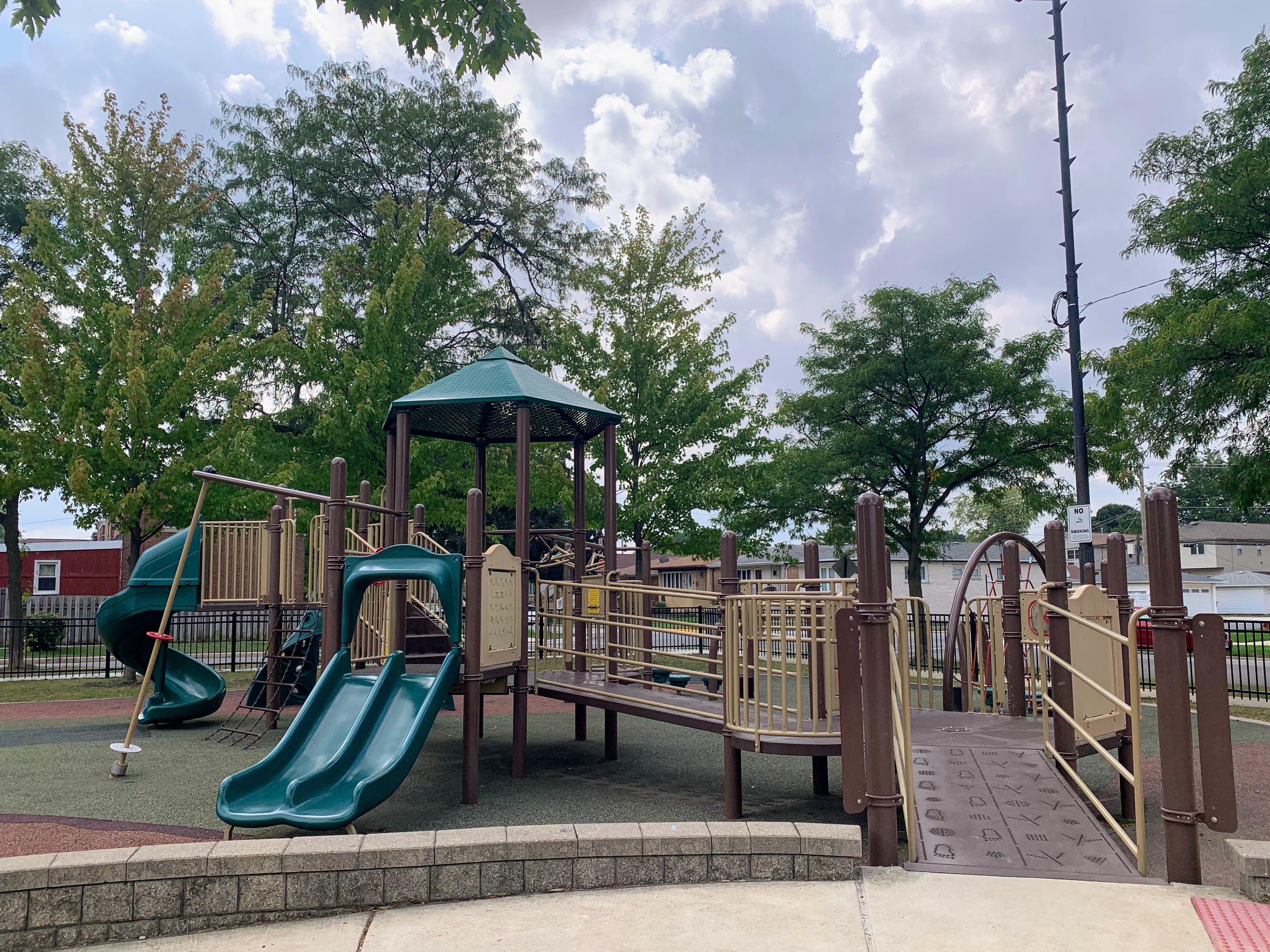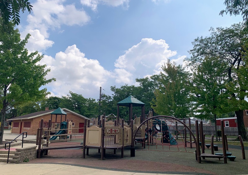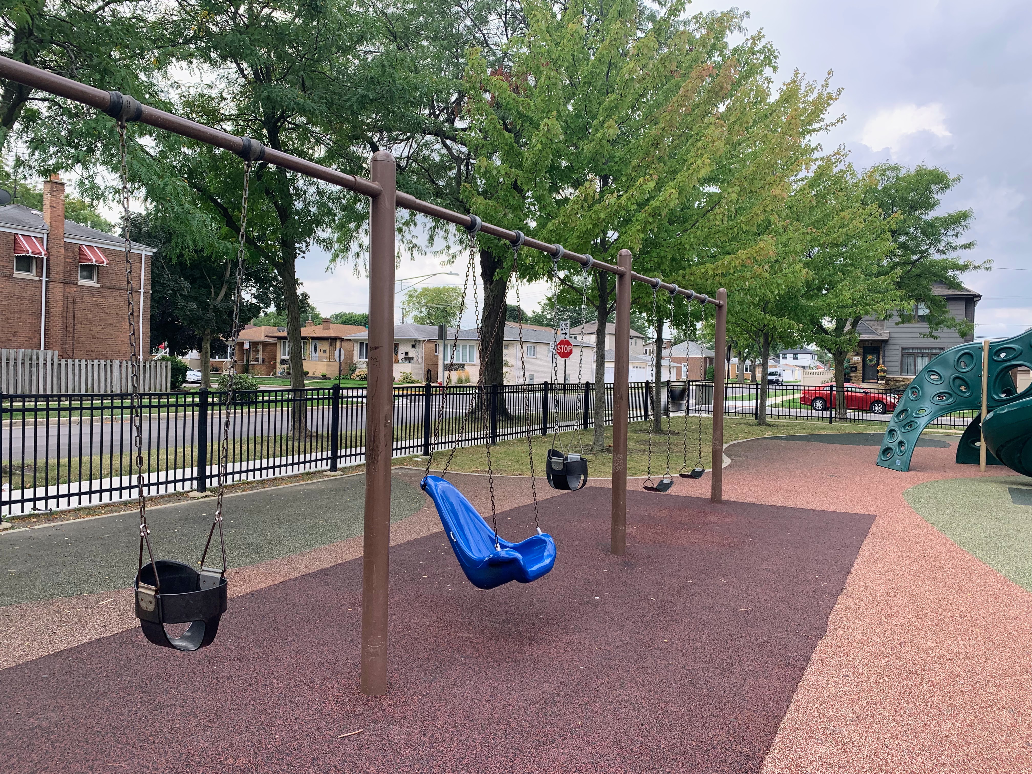 - In the southwest corner of Normandy Park, there is a solid neighborhood playground. There are two play structures with a variety of elements as well as a set of swings. Other important details: the play area is fenced from the street but not fully enclosed, the surface is soft rubber, and the playground gets some shade throughout the day. There are benches and a drinking fountain and the nearby fieldhouse provides access to bathrooms (when open). All in all, this is a good neighborhood park.