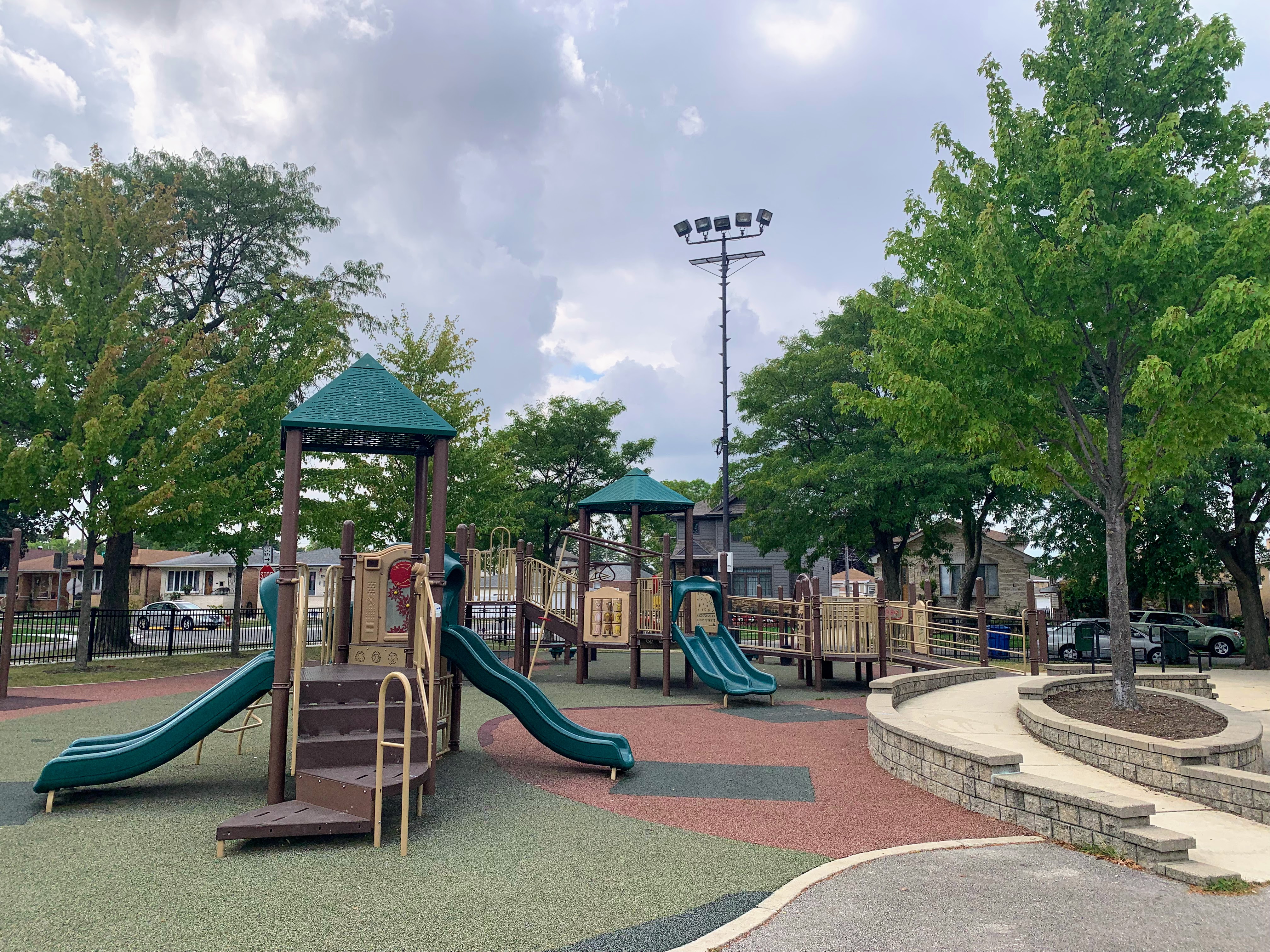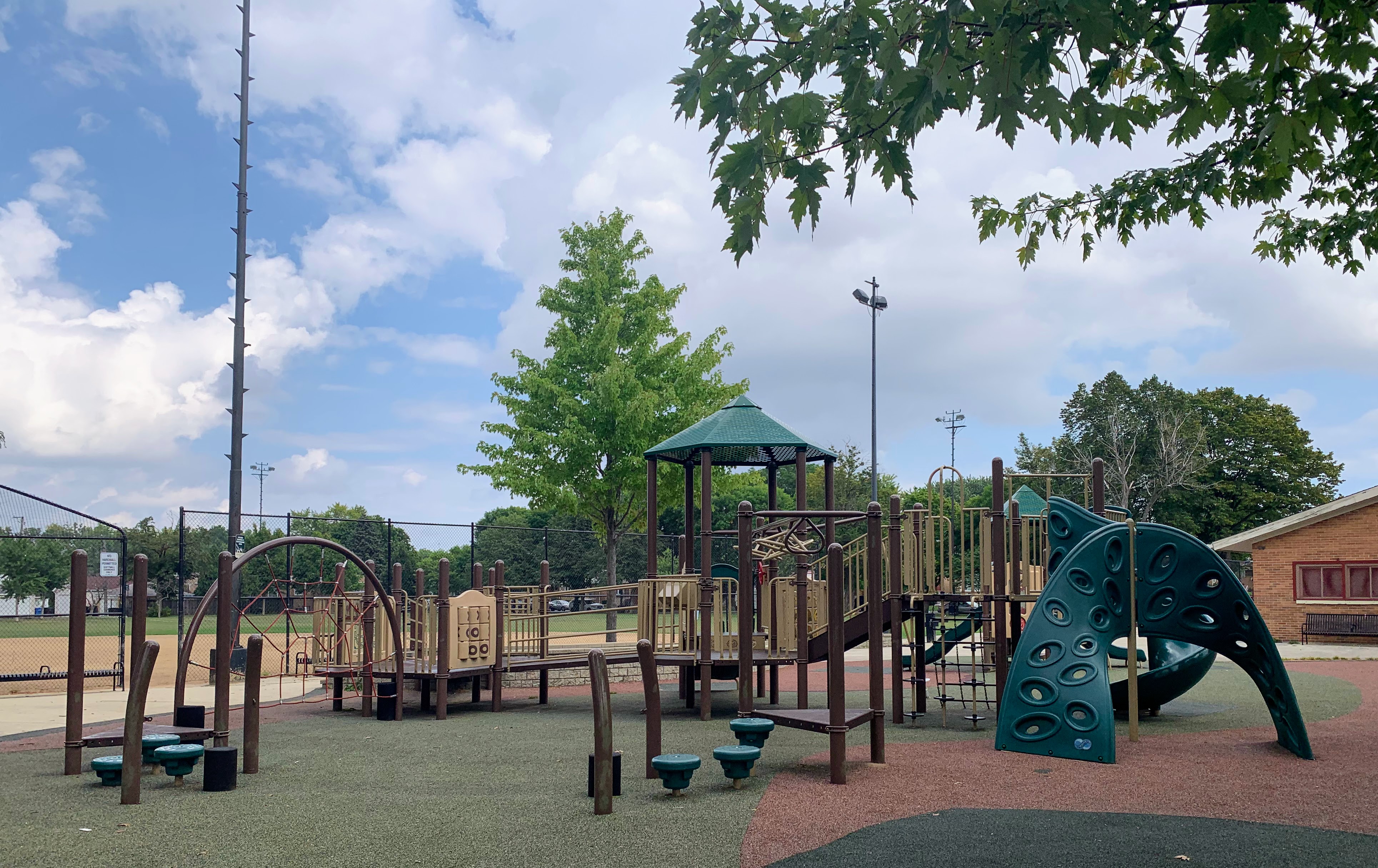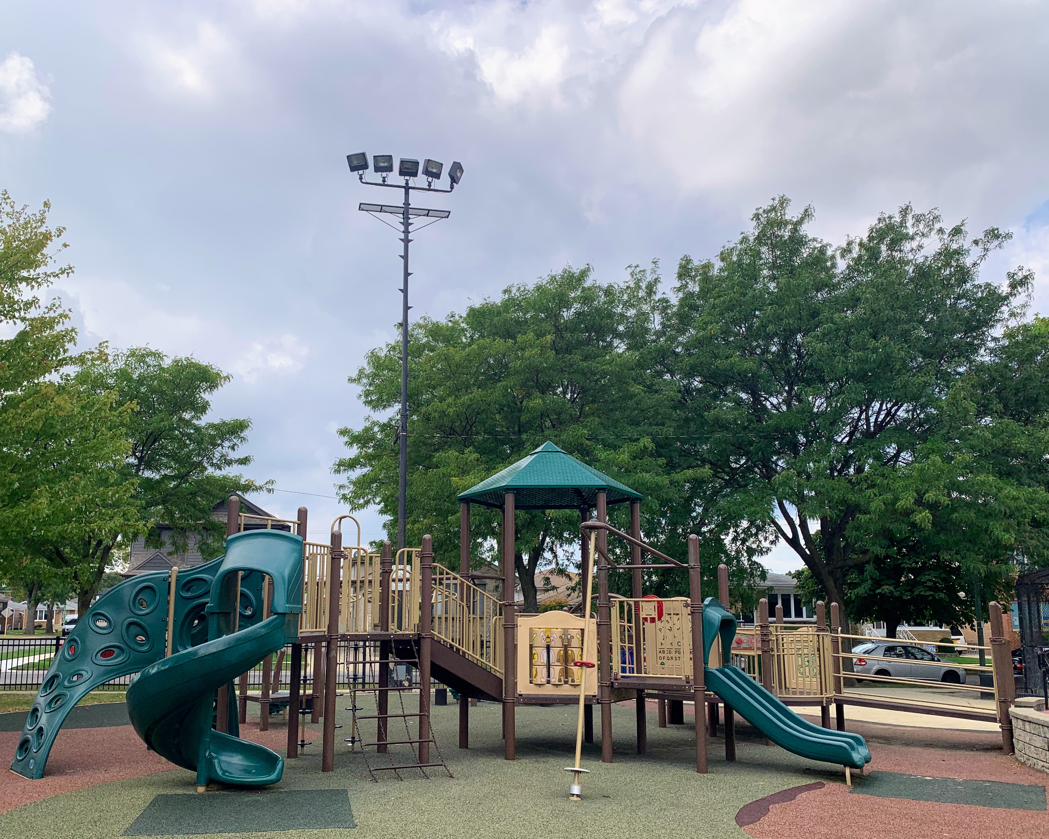 - In the southwest corner of Normandy Park, there is a solid neighborhood playground. There are two play structures with a variety of elements as well as a set of swings. Other important details: the play area is fenced from the street but not fully enclosed, the surface is soft rubber, and the playground gets some shade throughout the day. There are benches and a drinking fountain and the nearby fieldhouse provides access to bathrooms (when open). All in all, this is a good neighborhood park.