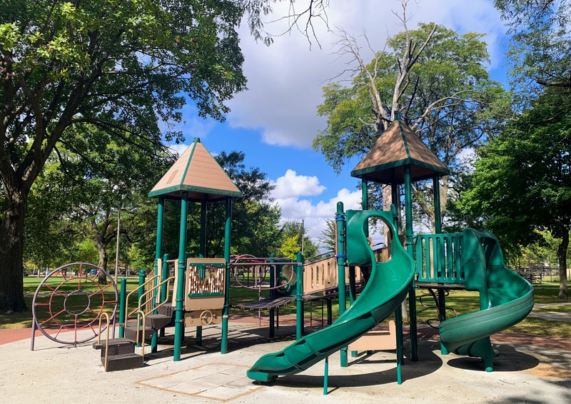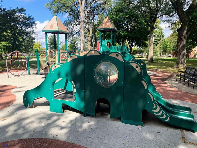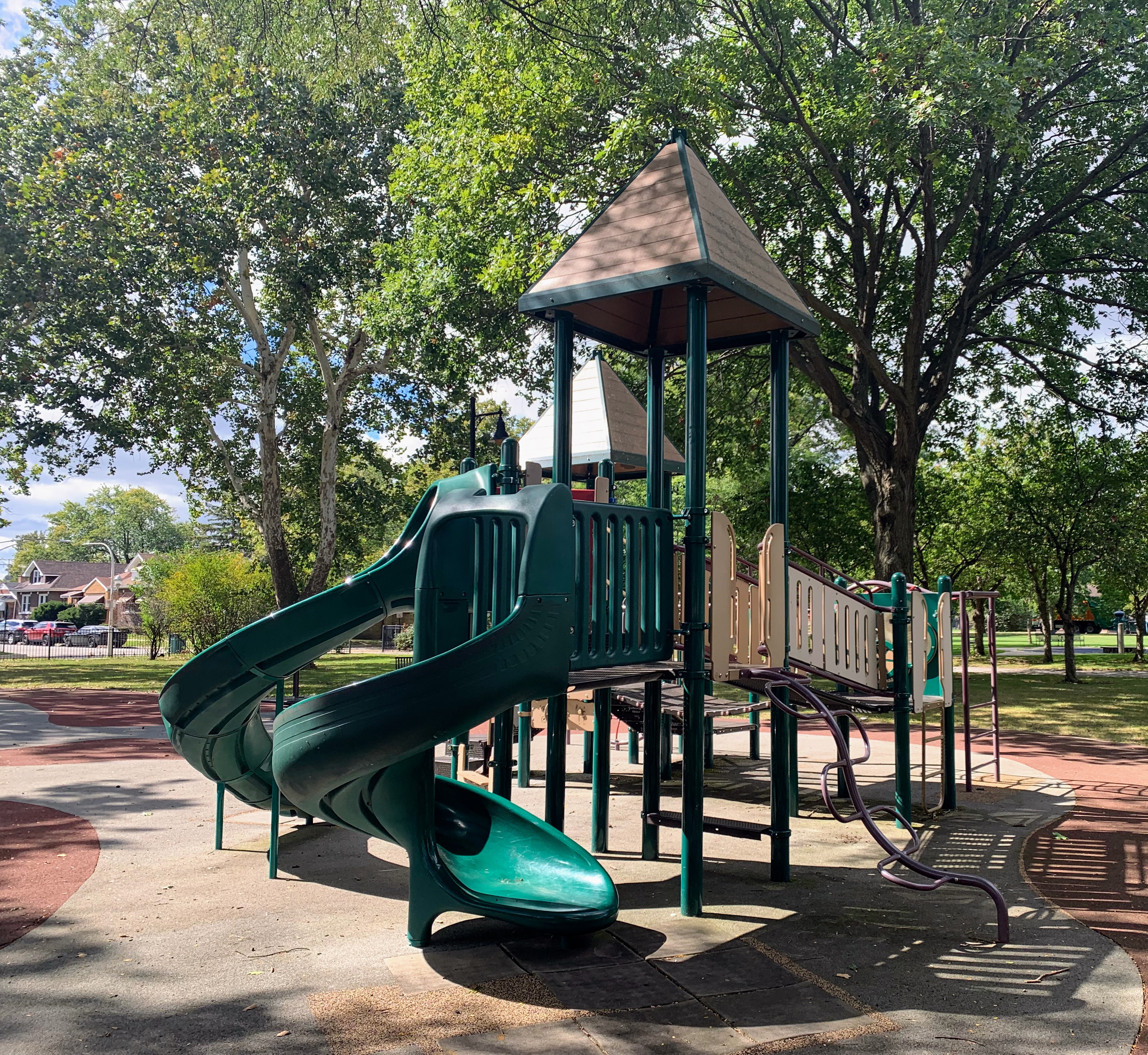The non-playable amenities are also solid: there are ample benches and the play surface is soft rubber. Perhaps the best feature is that the playground is surrounded - and shaded!- by large, mature trees. I might be bias in favor of trees and shade, but this site is a reminder that getting the basics right - equipment, amenities, and surroundings - can create a wonderful playground; highly recommend. - Playground Features