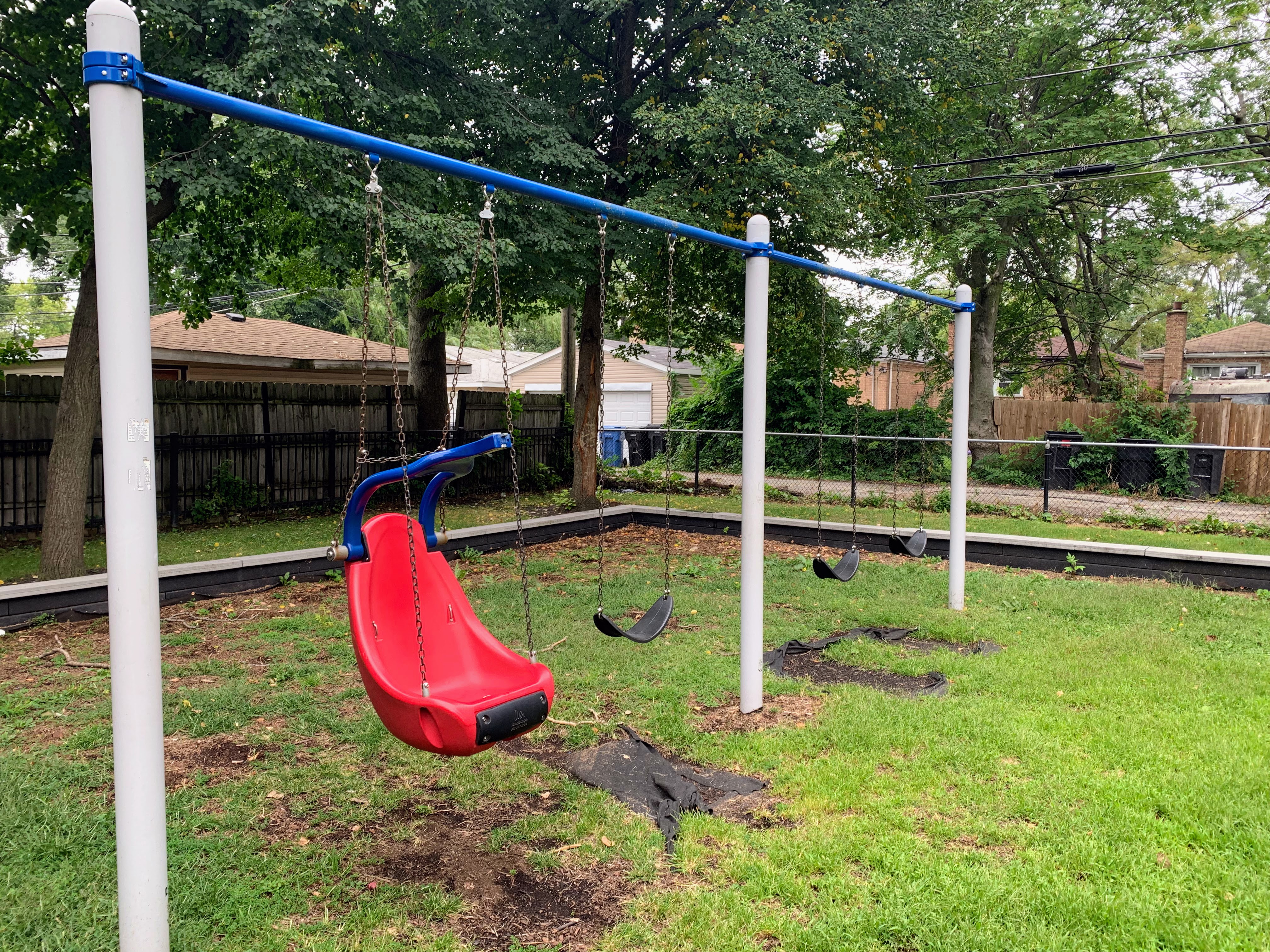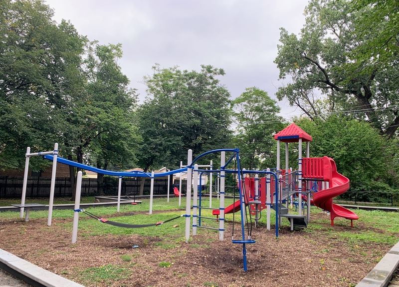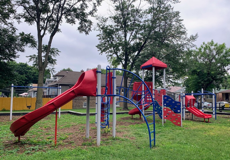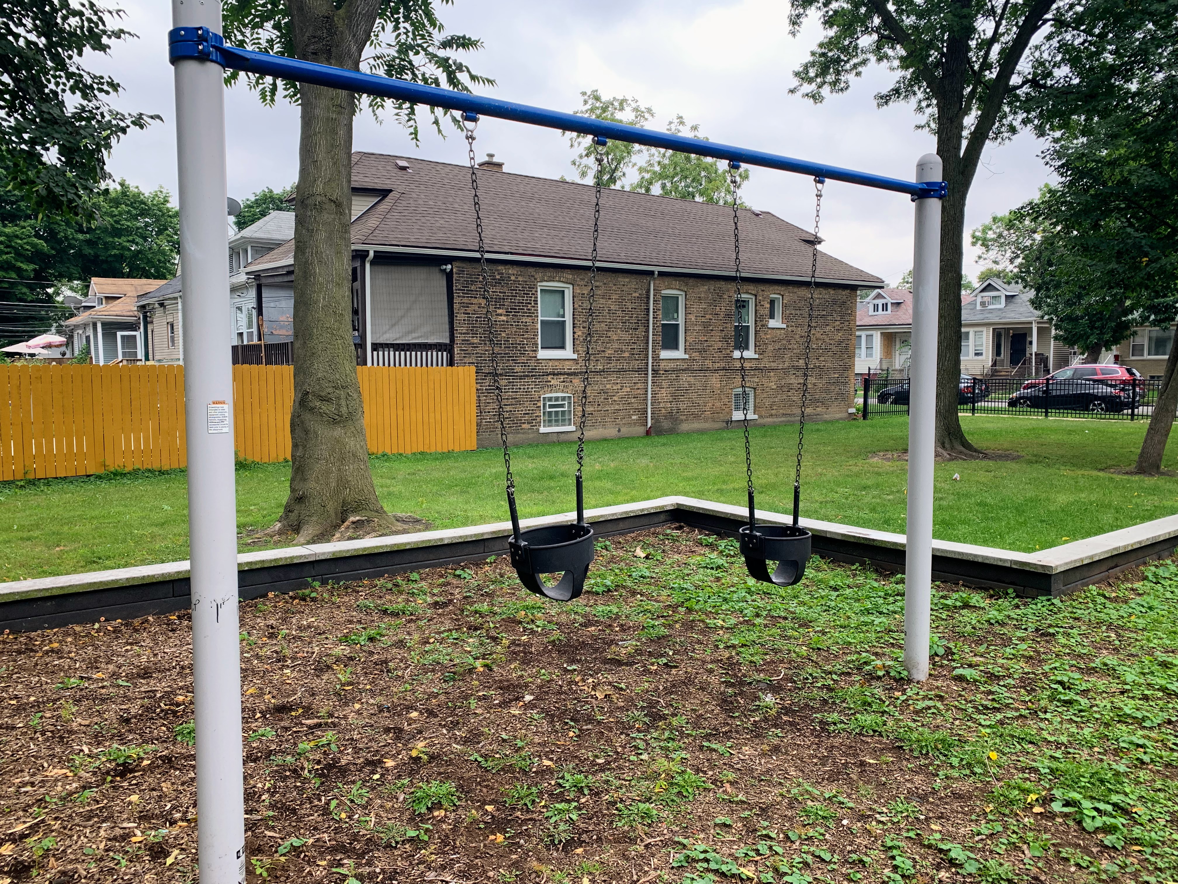 - Oakley Park features a classic and yet timeless playground. The equipment is new and well-maintained with a sprawling play structure, two sets of swings, and zip line. The play surface is wood chips and there are a few benches around the perimeter of the park. The play area is fully enclosed and shaded by large trees. It's a classic playground.