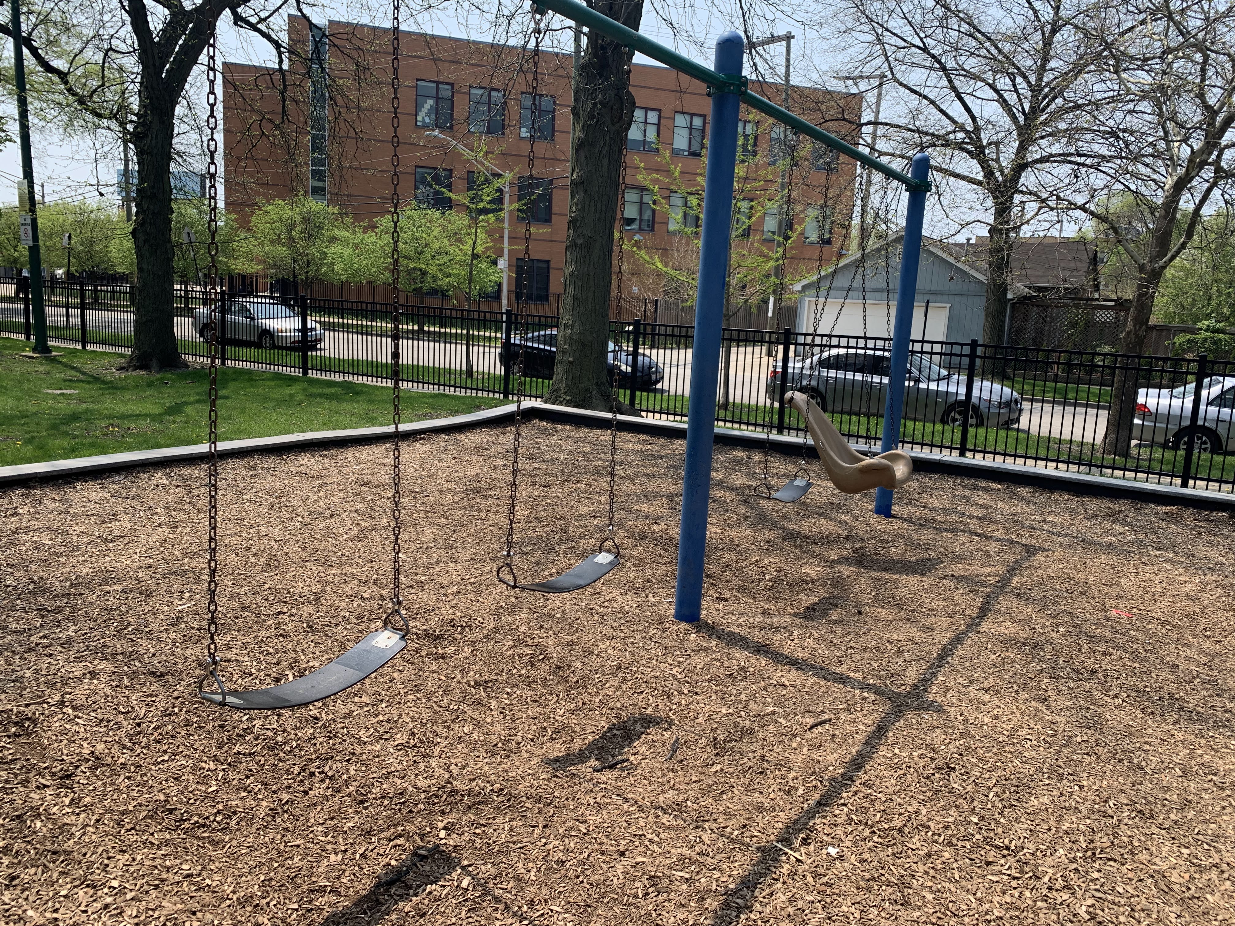 - Contrary to the name, you cannot actually view other parks when in Parkview Park. Interesting name aside, there is a great playground on the north end of the Parkview Park that includes two large play structures and a variety of swings. The smaller play structure is lower to the ground and features a number of interactive panels and small climbing elements. The larger structure consists of several platforms connected by various climbing and overhead elements. Completing the playground is a spinning, four seat merry-go-round and swings: toddler, tire, belt seat, and adaptive. The play area is fully enclosed and there are a few benches and a picnic table near the play area. There are also some large trees to provide moments of shade throughout the day.