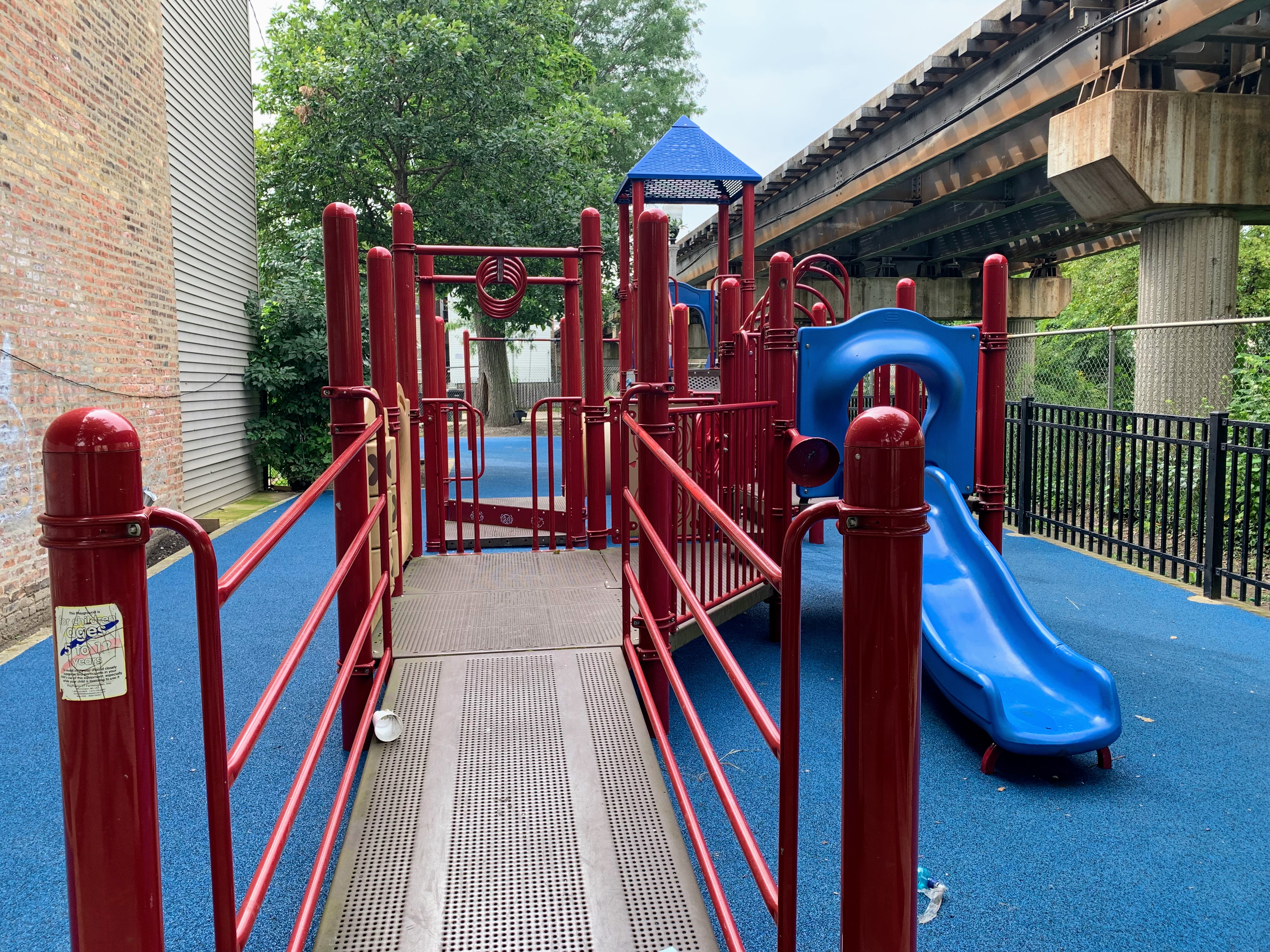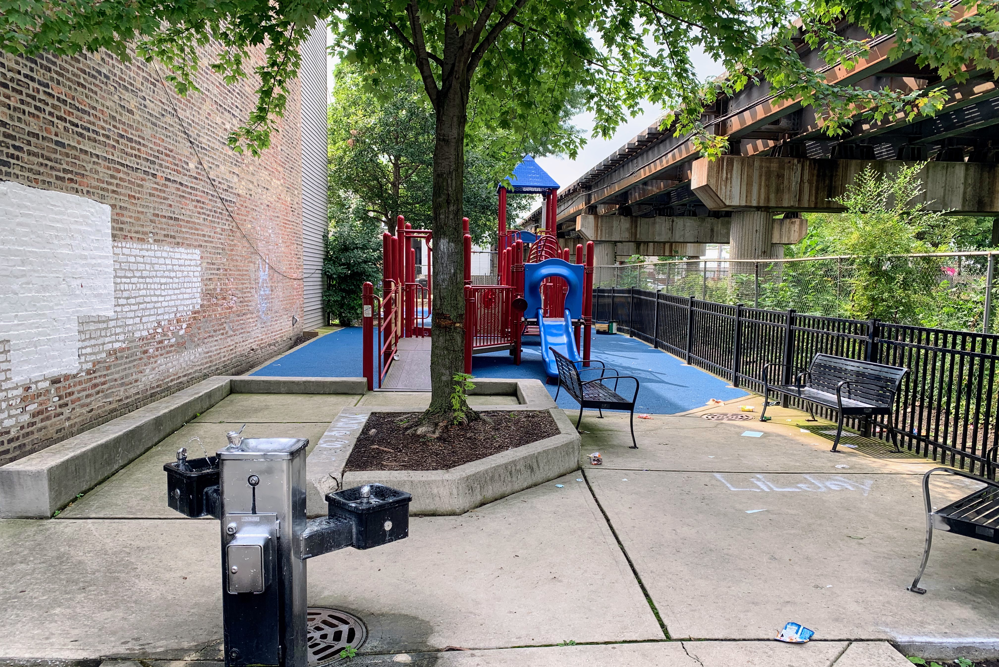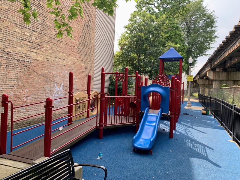 - Park 519 is a tiny pocket park situated between an apartment building and a CTA pink line. On this tiny site there is a narrow play structure and a pair of swings. There are benches and a drinking fountain and very, very good views of trains.