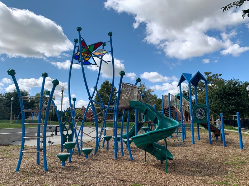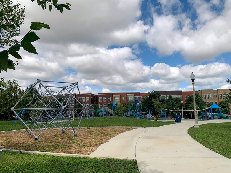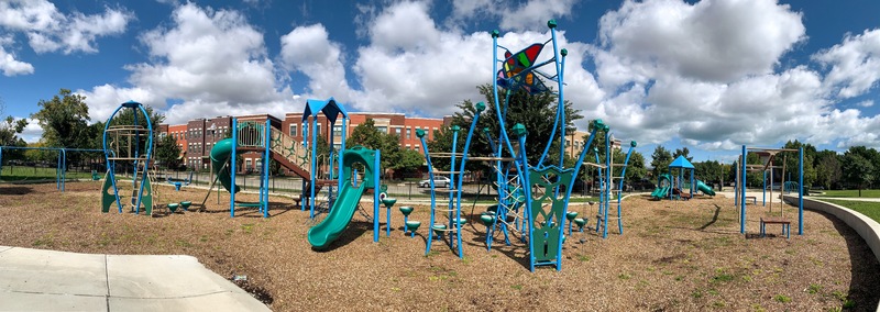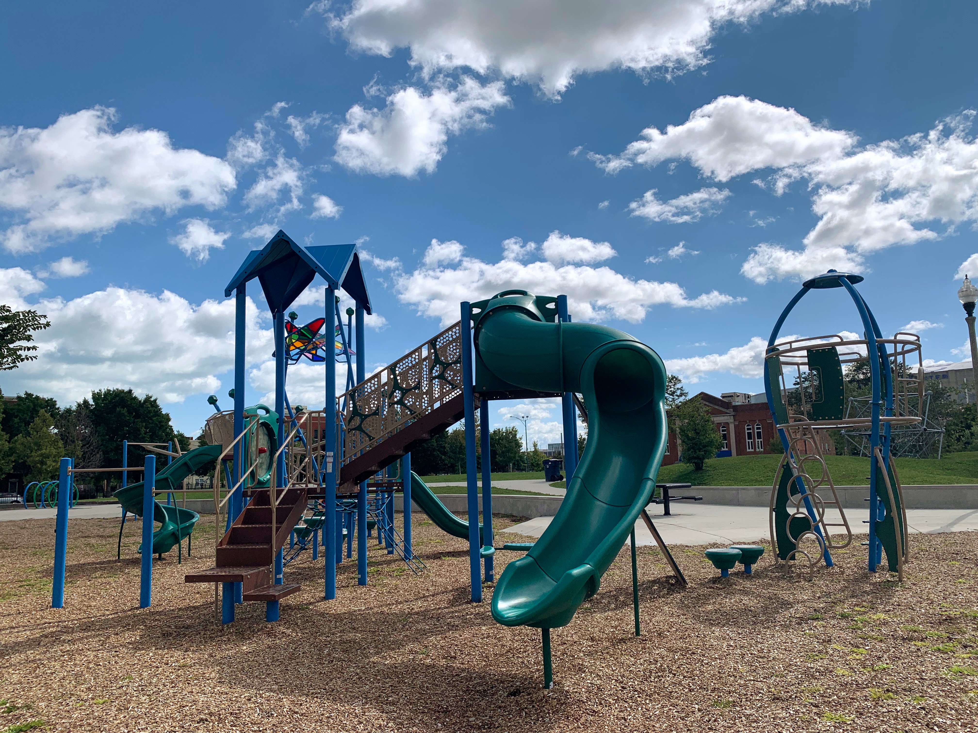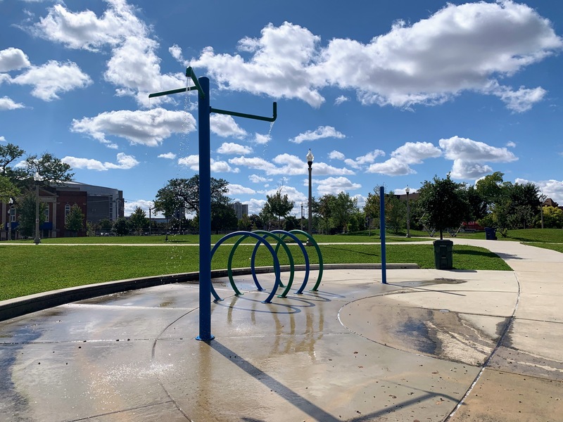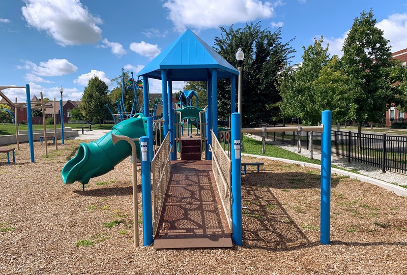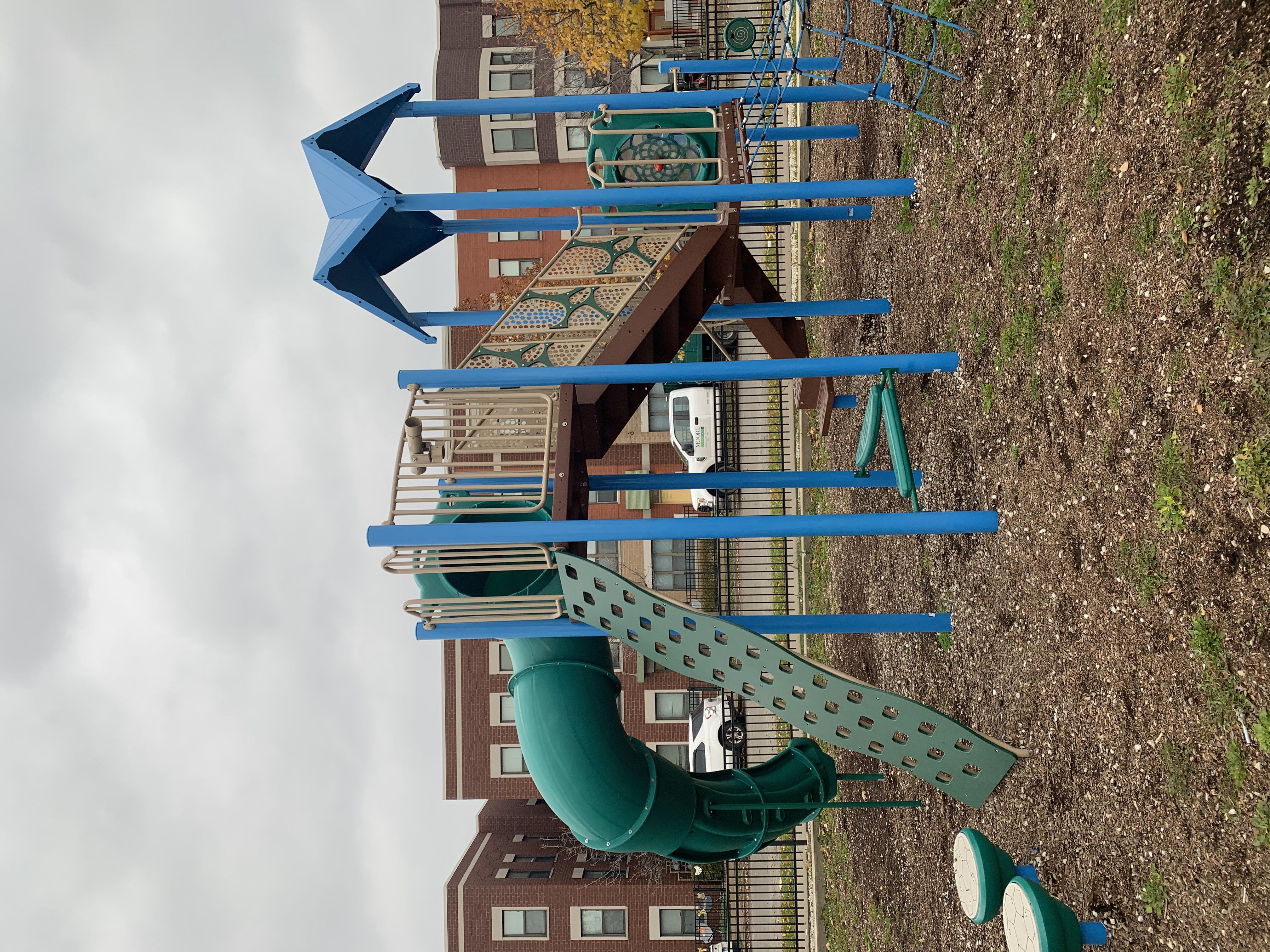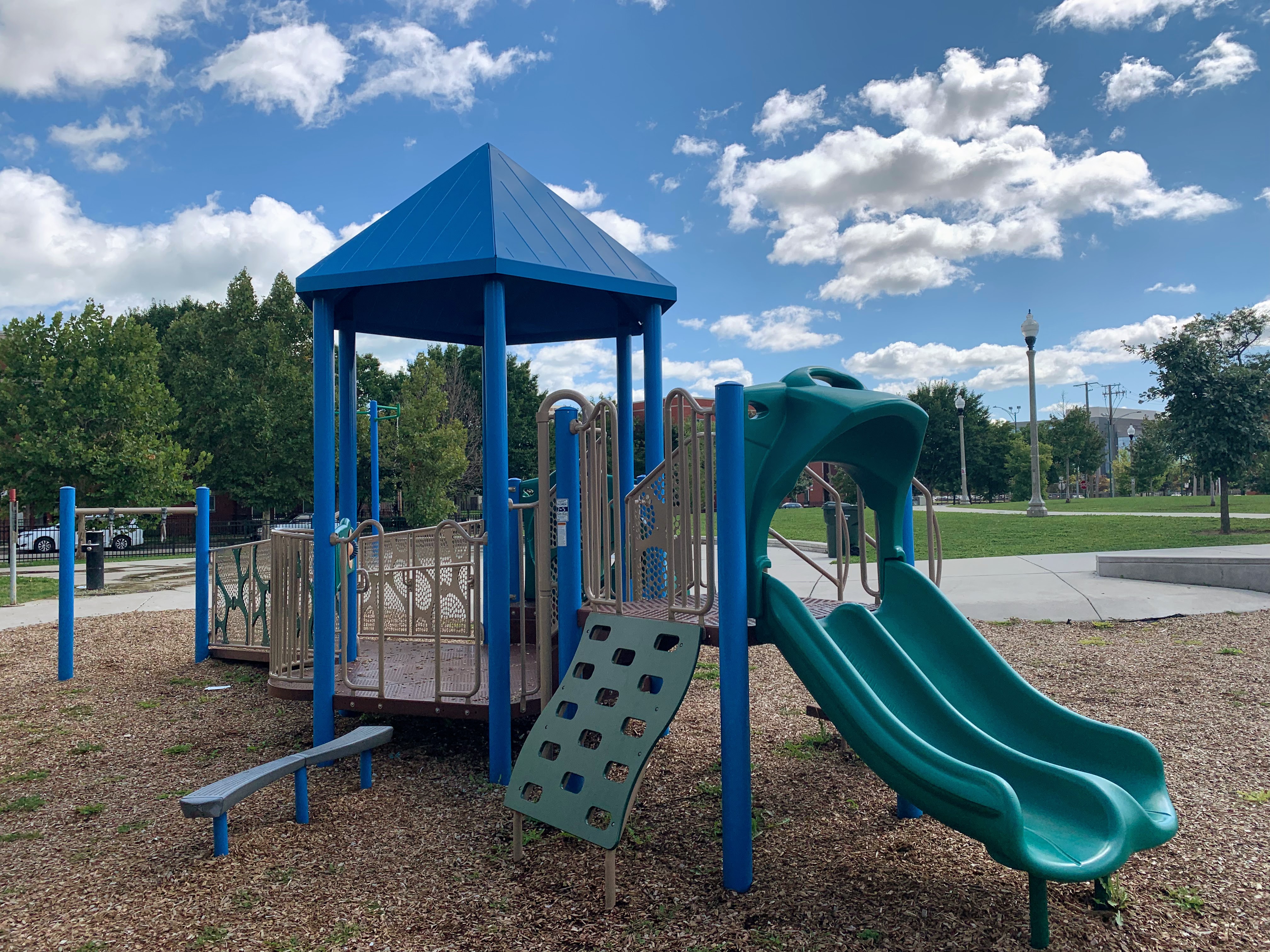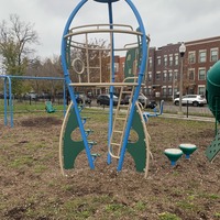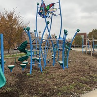 - This playground sits in Park 578 just north of the United Center and features some interesting and unique playground equipment. Although the equipment is modern, the metal climbing structure with the colorful art on the top, the climbing structure shaped like a rocket ship, and a unique swing give this playground a unique and somewhat retro feel. There is also an area for younger children, a misting water spray feature, and a large climbing net structure. There are also several other standalone features scattered throughout the park. The play surface is wood chips and while the concrete borders provide a place to sit, additional benches and improved landscaping that could create some shade would make this space more comfortable.