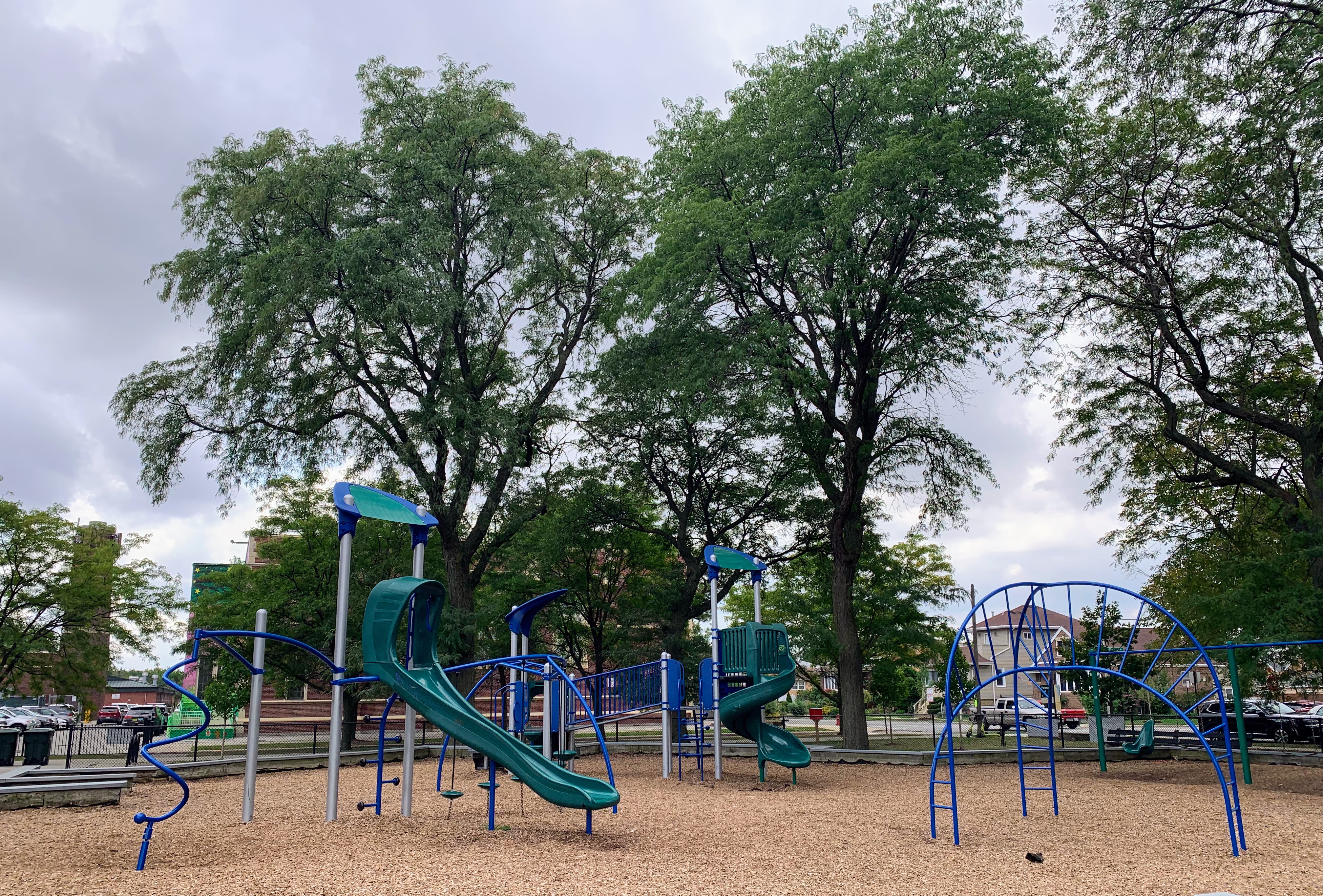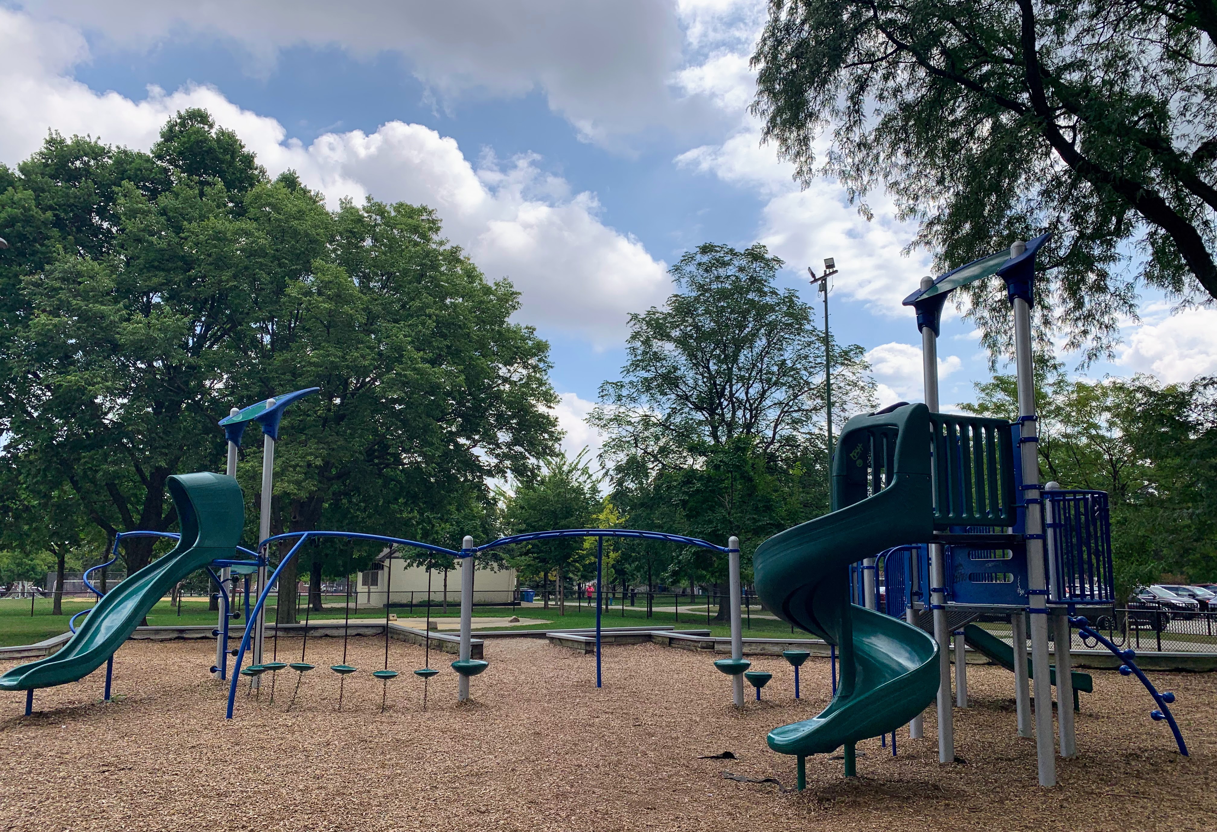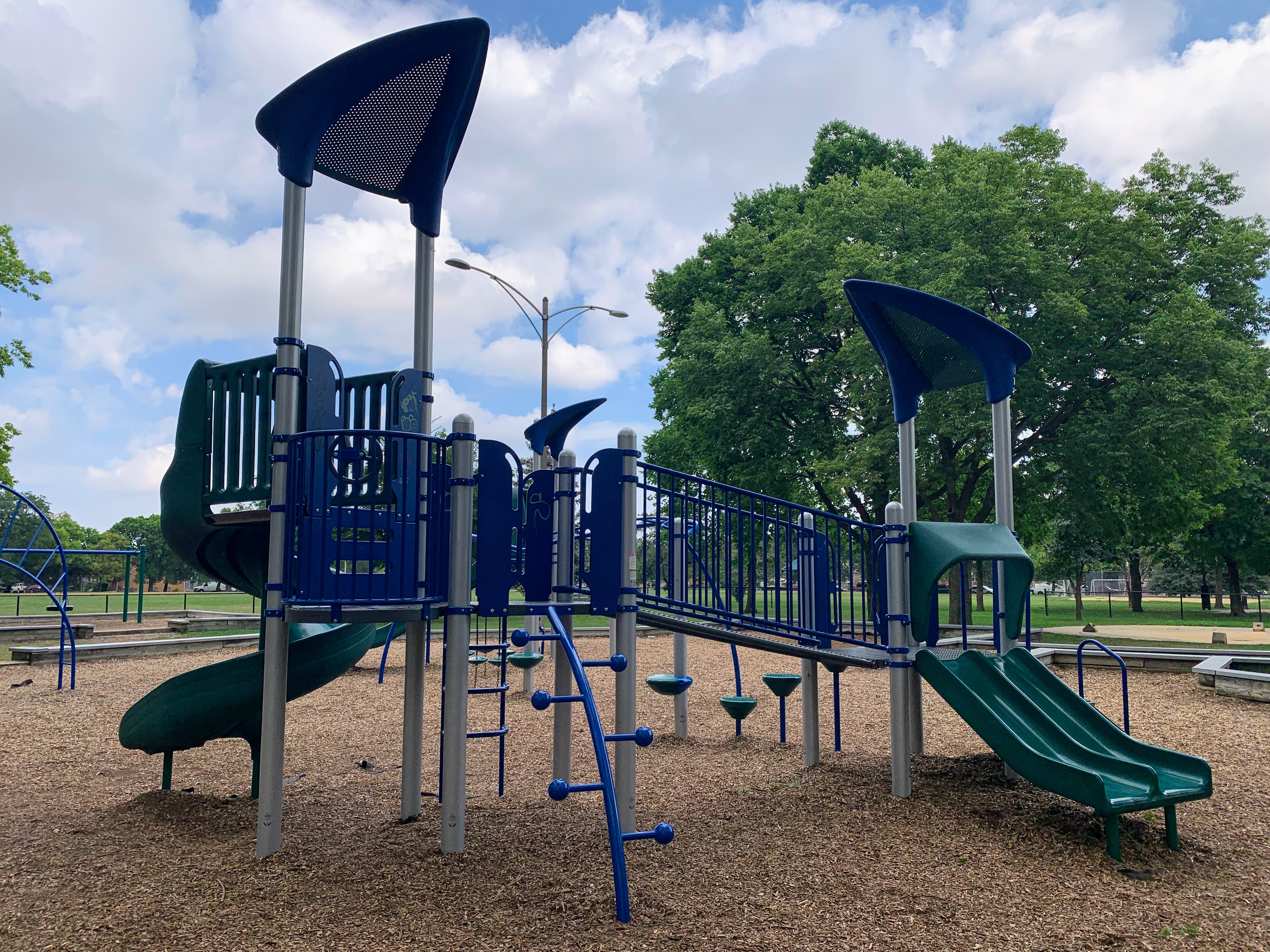 - Pasteur Park playground packs a punch! Seriously though, this playground provides some modern equipment in a classic park setting. The 'modern equipment' includes a variety of climbing and traversing options with a small play structure. There is a good variety of swings (toddler, adaptive, belt seat, and tire) as well as a small water spray feature. The setting is pastoral and classic: the play surface is wood chips and there are a few benches for seating and trees for shade. The play area is not fully enclosed but it is fenced from the street and the rest of the park. Somewhat modern equipment with some classic amenities in a park-like setting make this a great playground; highly recommend.