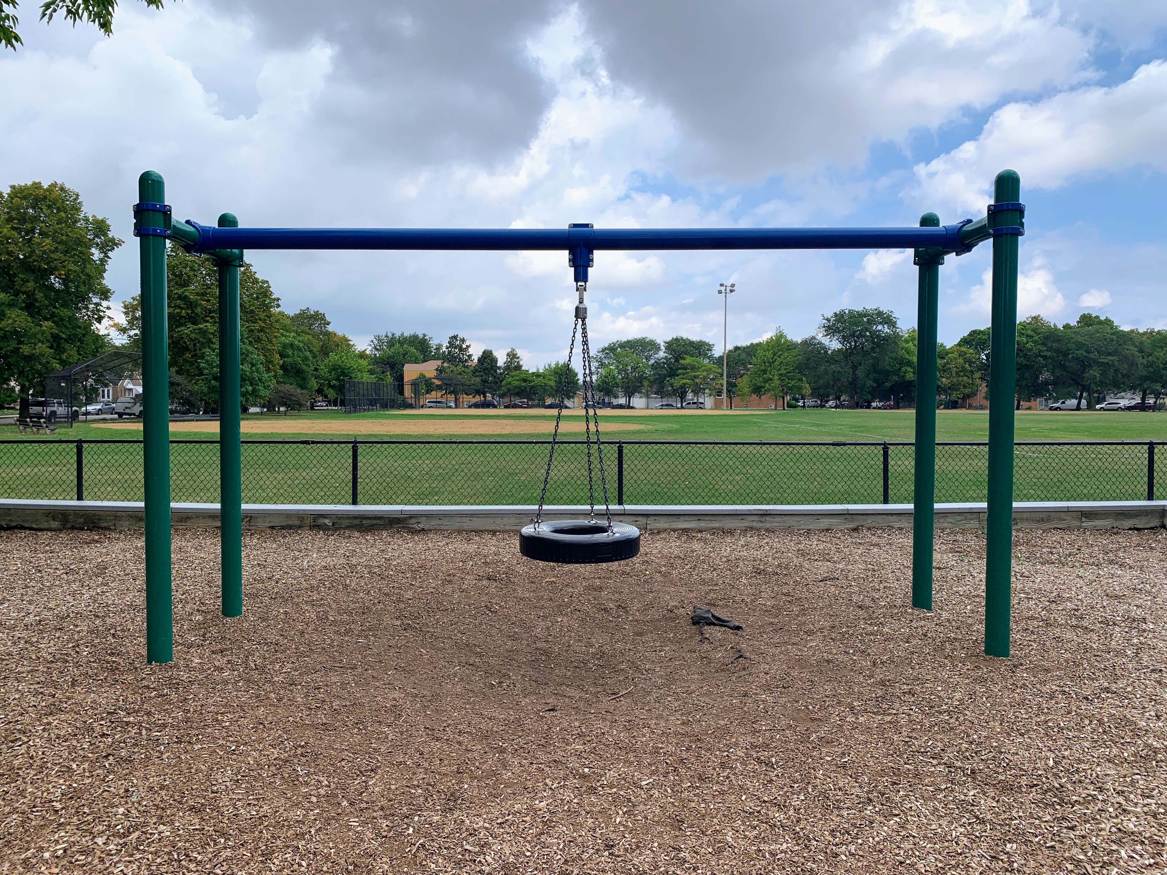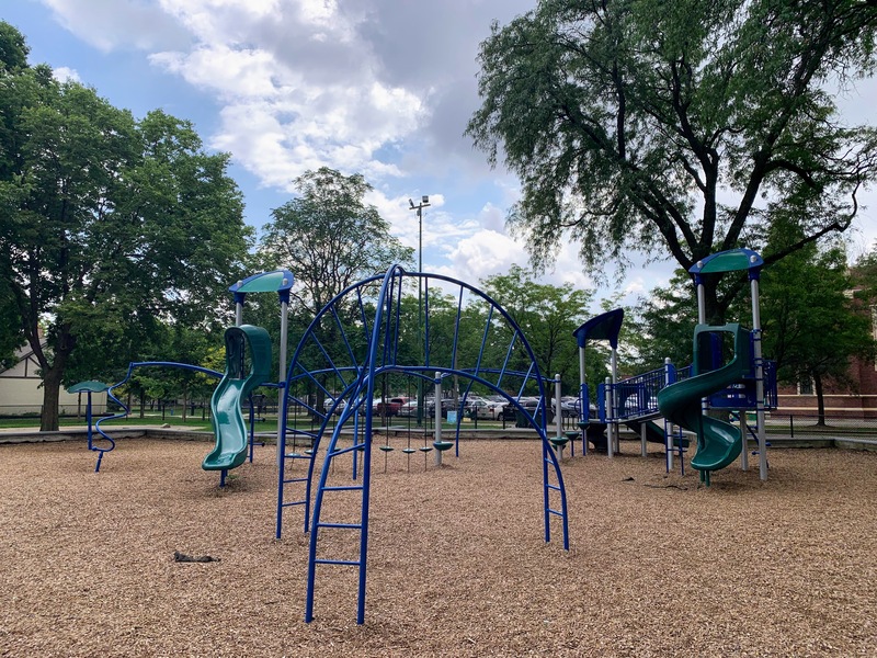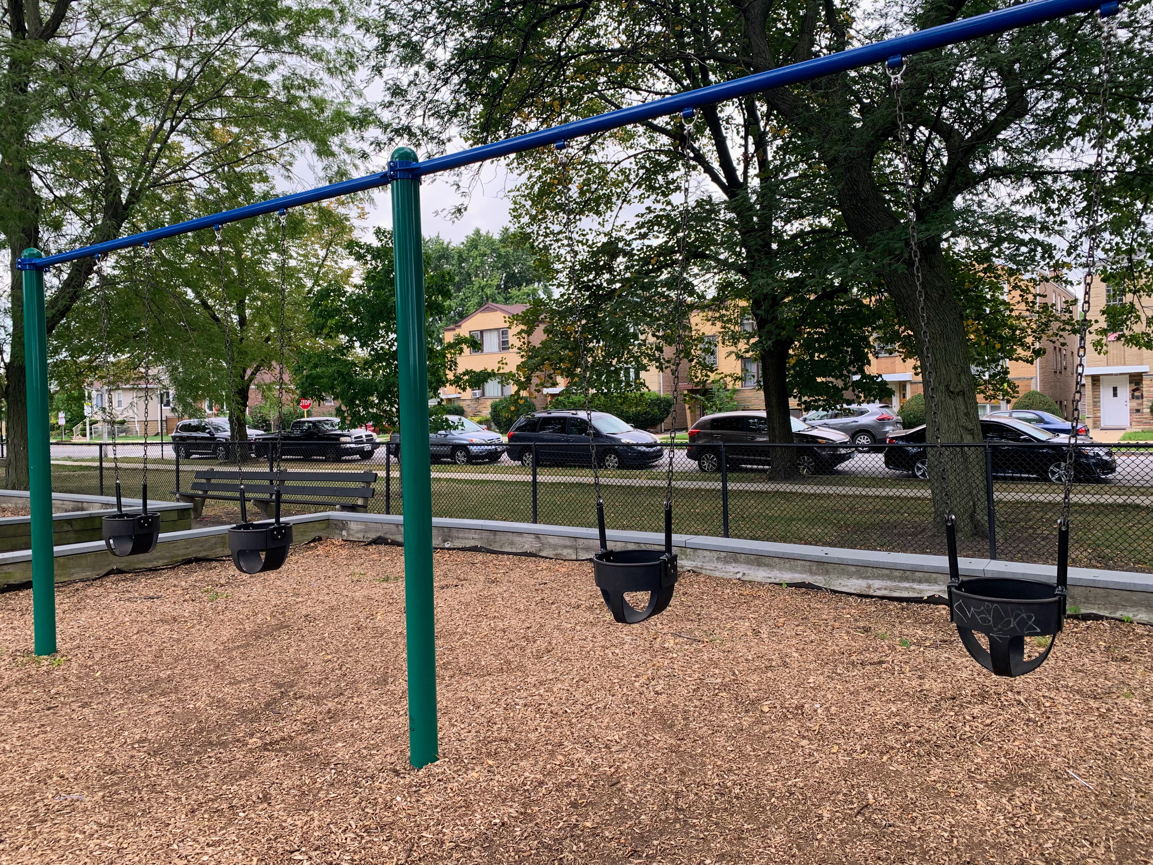 - Pasteur Park playground packs a punch! Seriously though, this playground provides some modern equipment in a classic park setting. The 'modern equipment' includes a variety of climbing and traversing options with a small play structure. There is a good variety of swings (toddler, adaptive, belt seat, and tire) as well as a small water spray feature. The setting is pastoral and classic: the play surface is wood chips and there are a few benches for seating and trees for shade. The play area is not fully enclosed but it is fenced from the street and the rest of the park. Somewhat modern equipment with some classic amenities in a park-like setting make this a great playground; highly recommend.