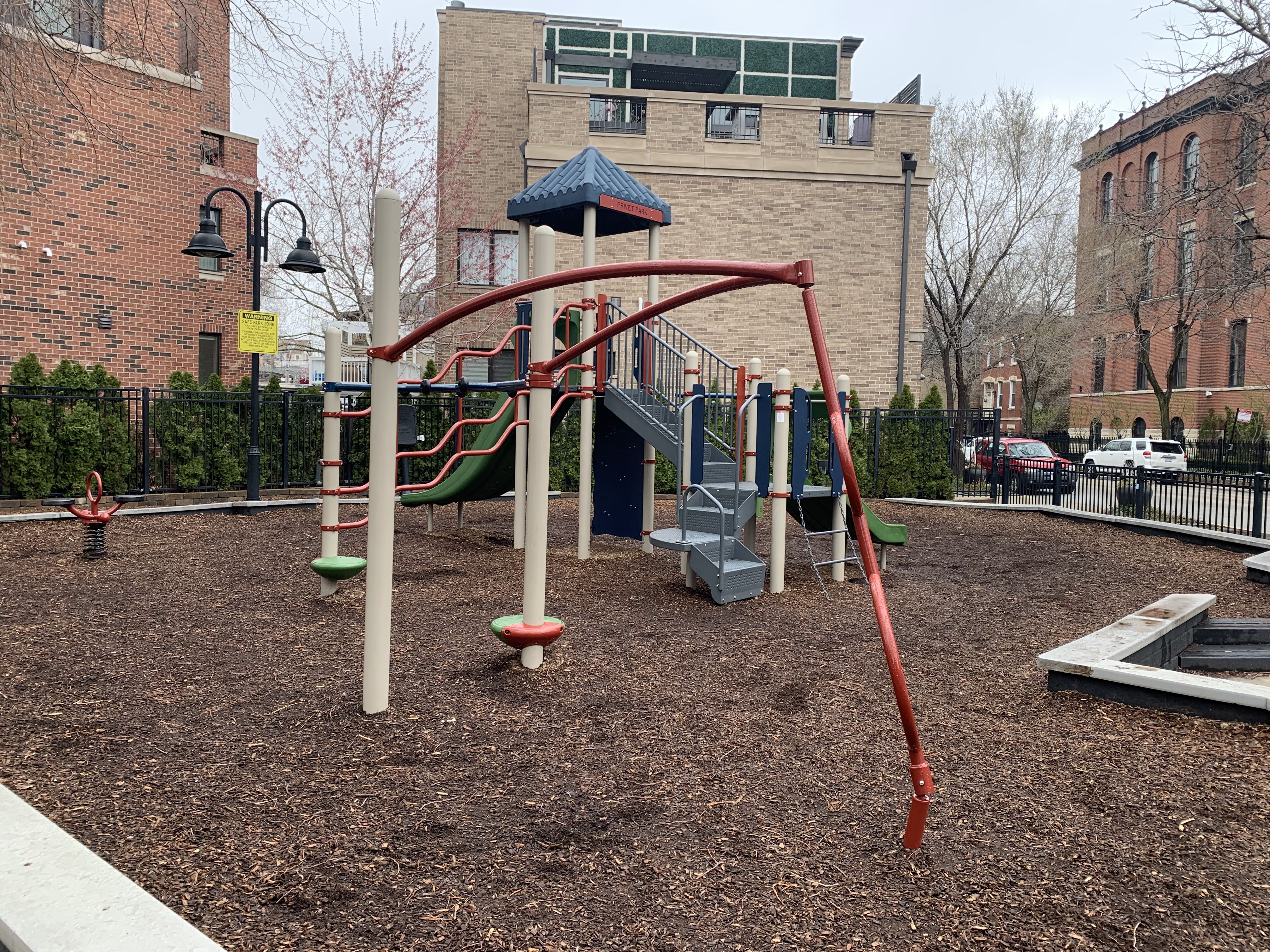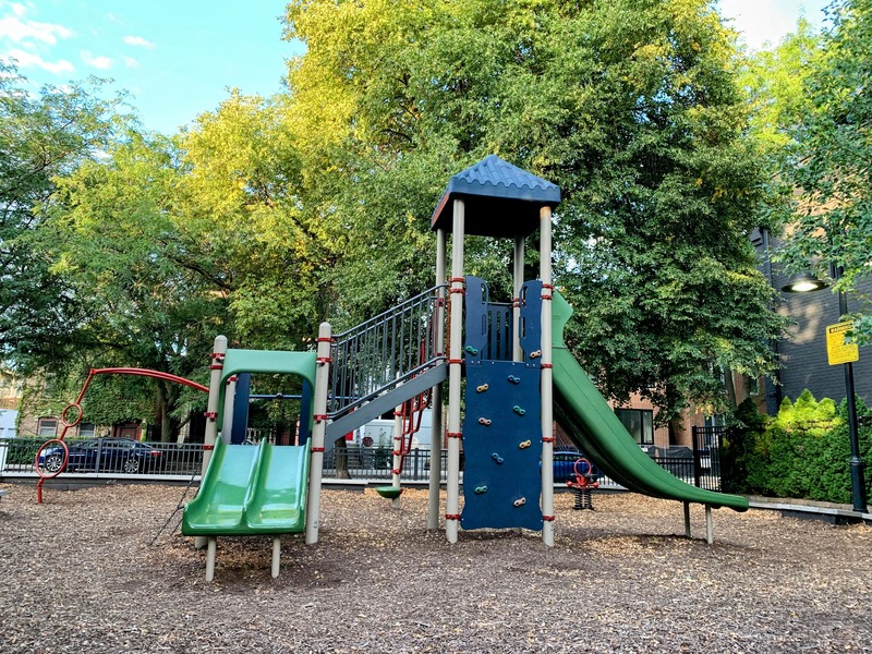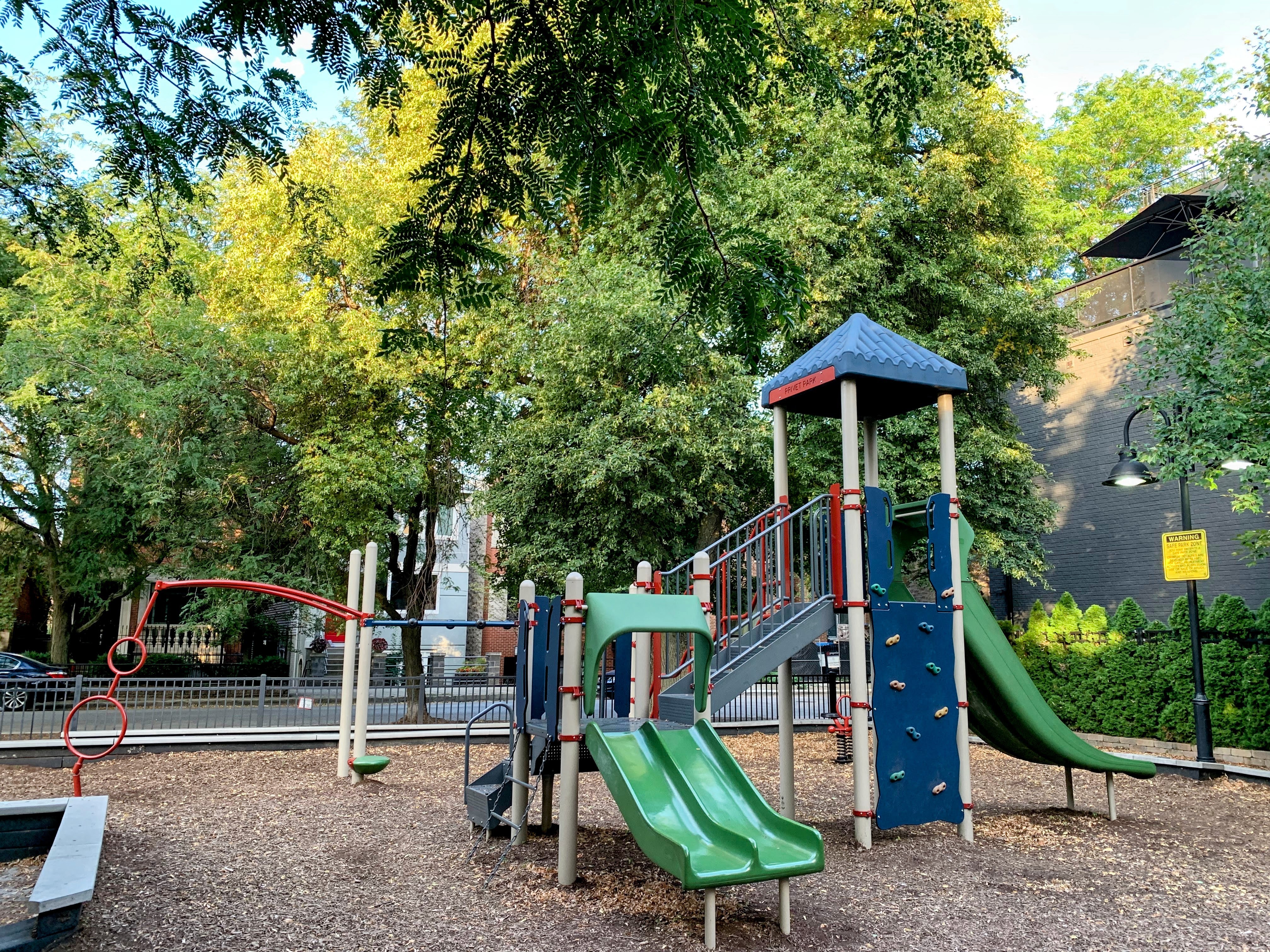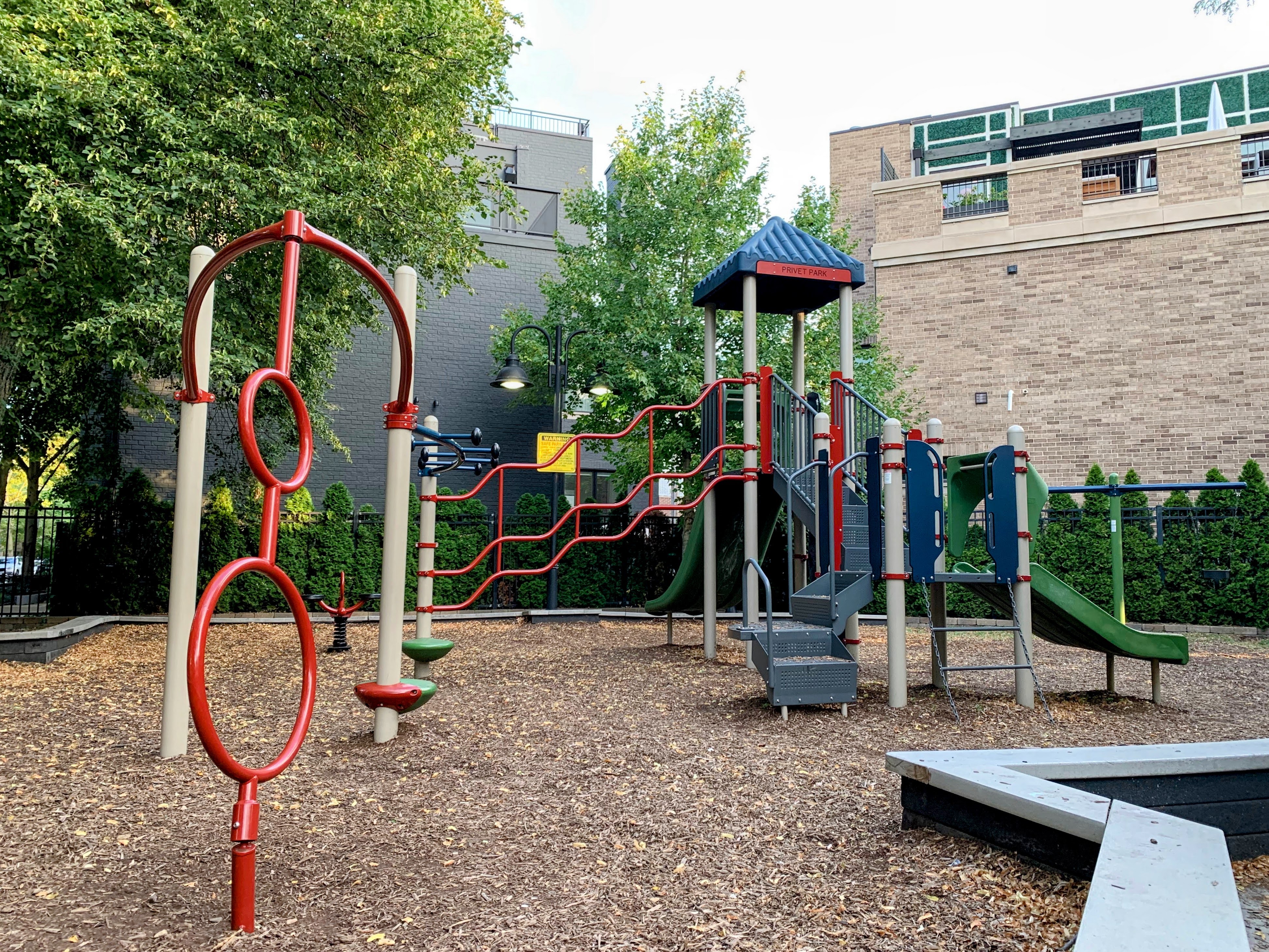 - The playground in tiny Privet Park takes up nearly the entire area of the park and yet packs in a large climbing structure for older children and a pair of toddler swings. There are two benches and a drinking fountain in the fully enclosed and somewhat shady play area and the play surface is wood chips.