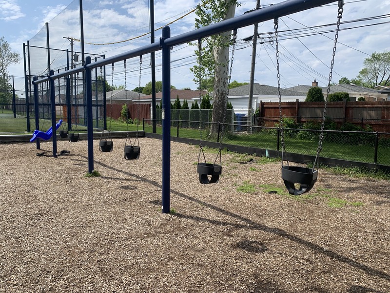 - The playground Rainey Park is located on the north side of the park and features a small play structure, a large selection of swings, and some standalone elements. The play structure is relatively small and features a few slides and traversing elements. For swings, this park has toddler, adaptive, belt seat, and tire swings. There is also a see-saw, spinning sphere, and large overhead spinning element. This playground is not enclosed but is set back from all traffic. The play area is somewhat shaded and the play surface is wood chips.
