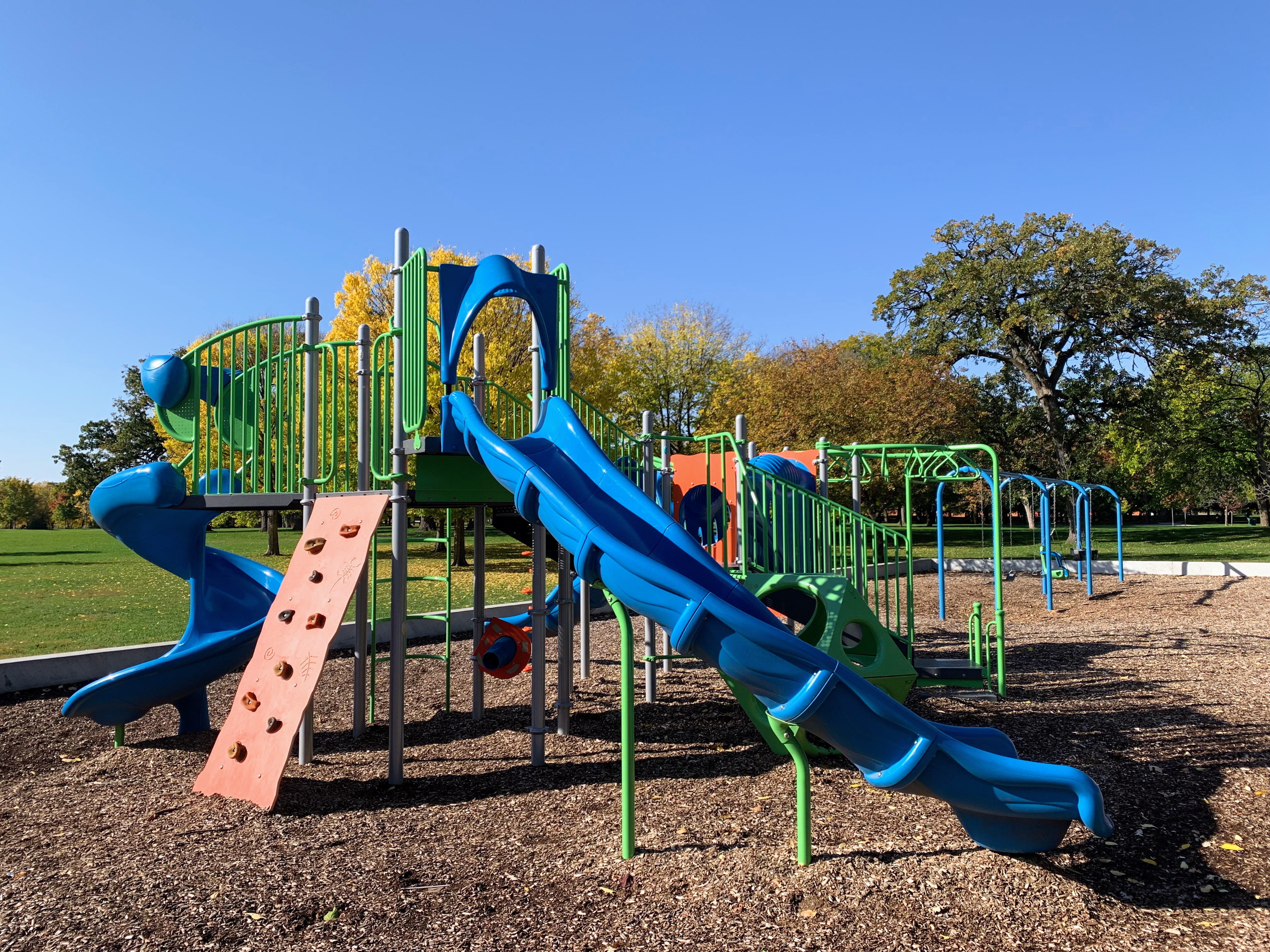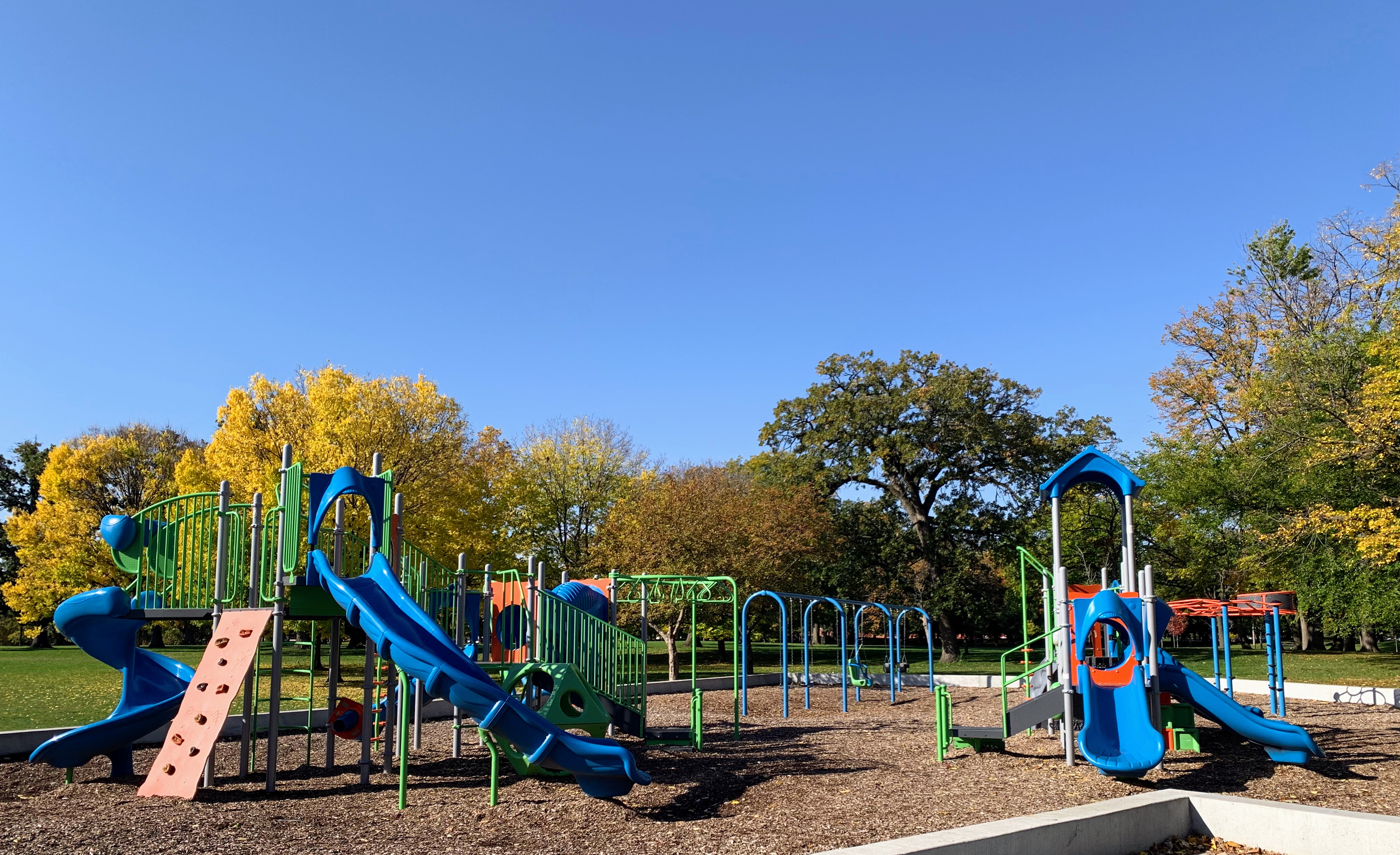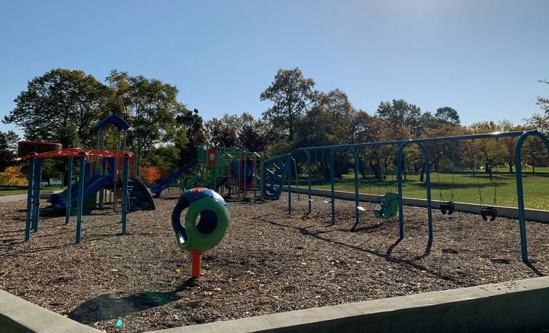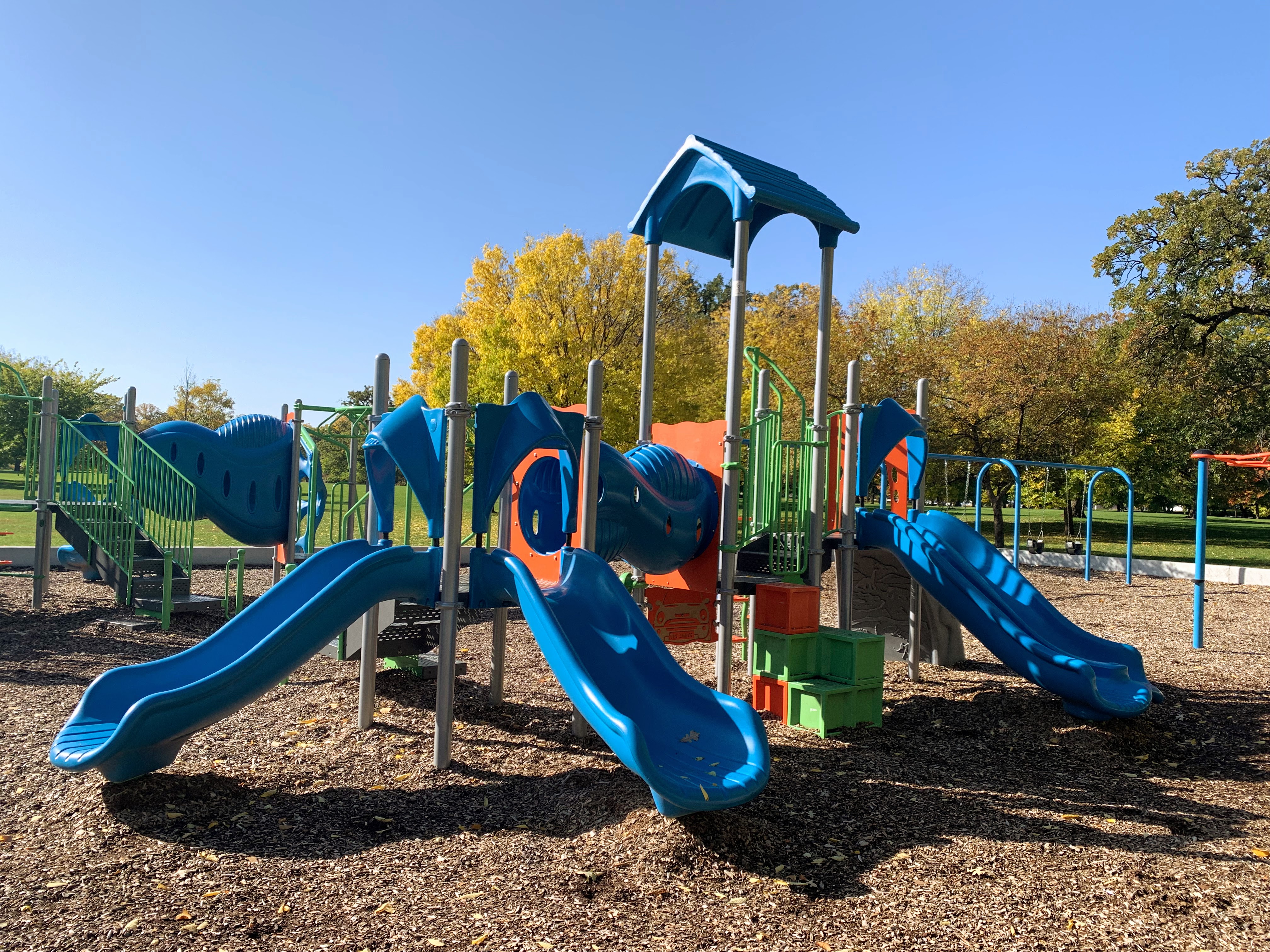 This playground - one of two in Riis Park - is an interesting playground with some unique play elements in a classic and timeless setting. There are two play structures - one for younger children and one for older - that both feature modern equipment that is somewhat unique to Chicago Park playgrounds.