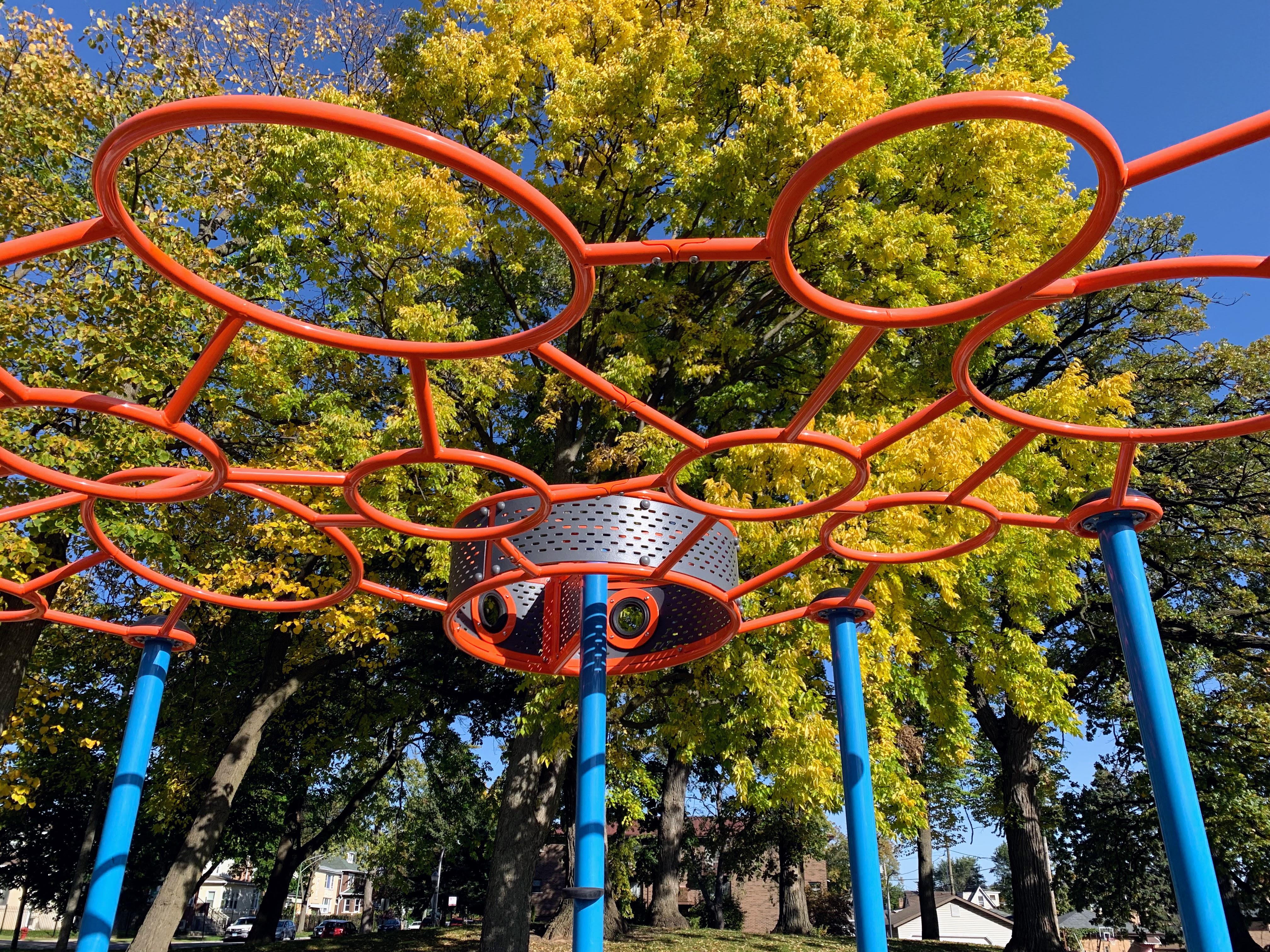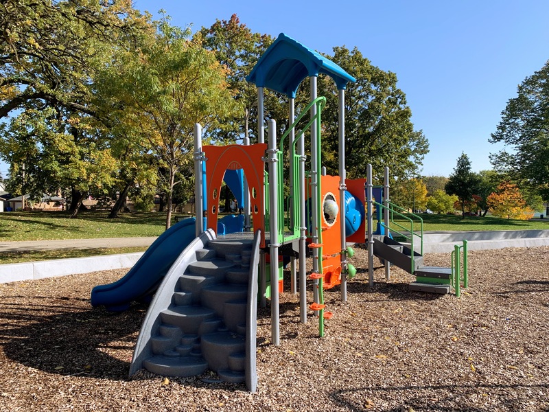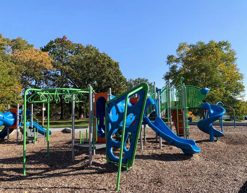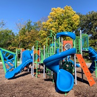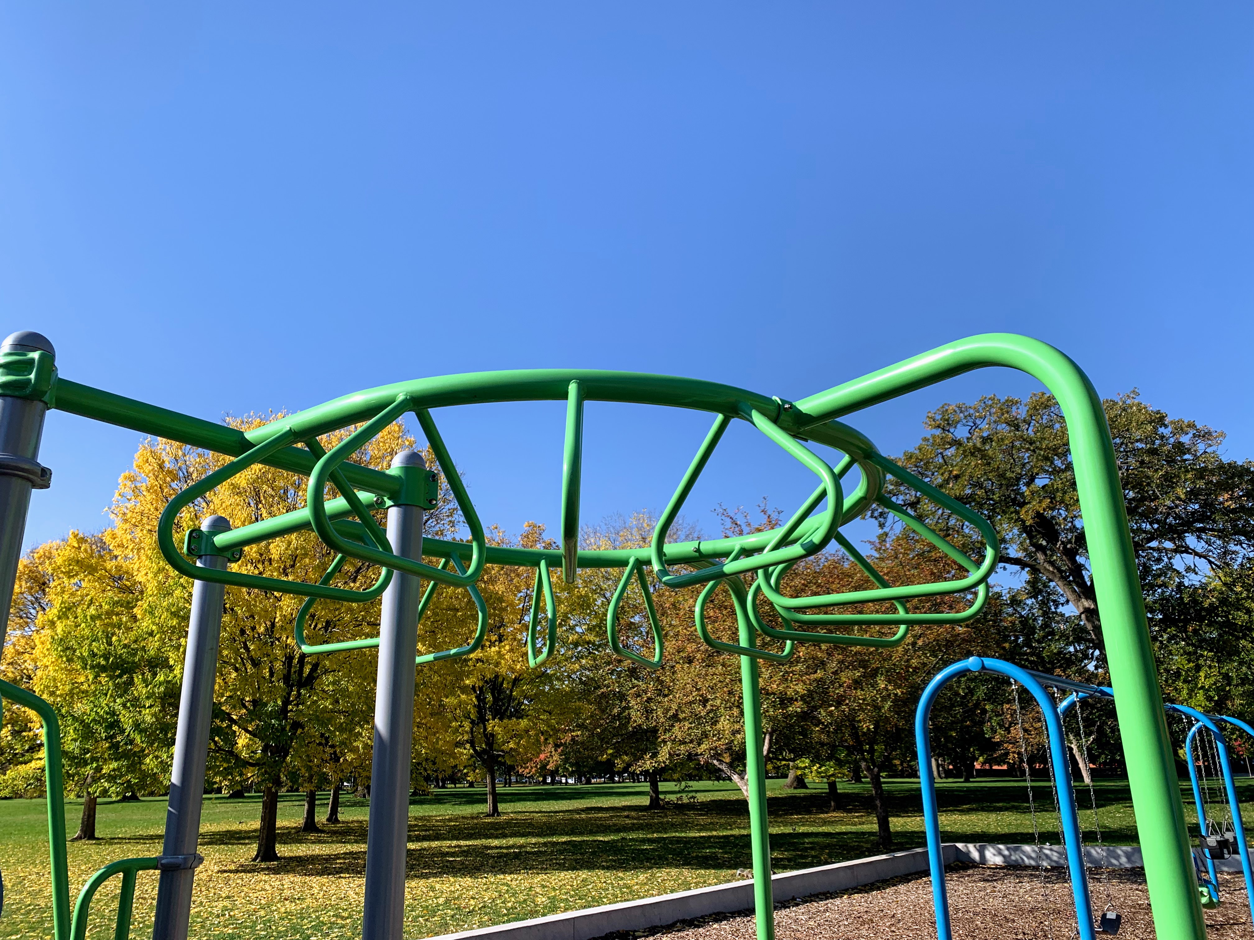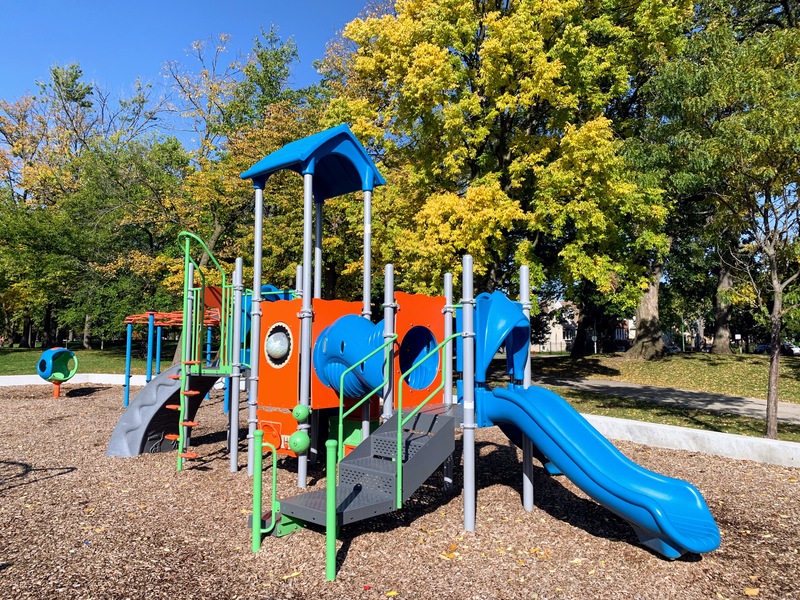 This playground - one of two in Riis Park - is an interesting playground with some unique play elements in a classic and timeless setting. There are two play structures - one for younger children and one for older - that both feature modern equipment that is somewhat unique to Chicago Park playgrounds.