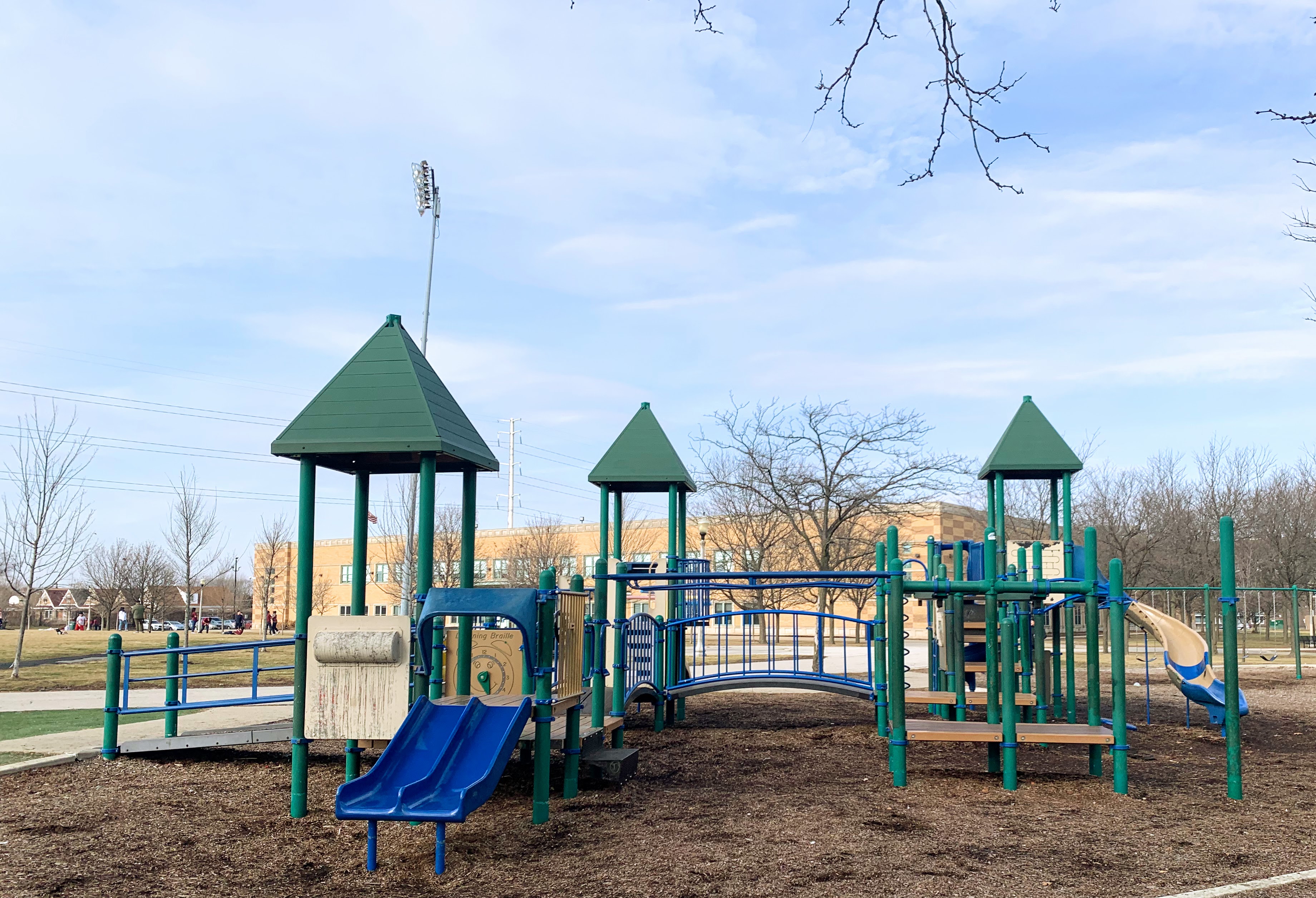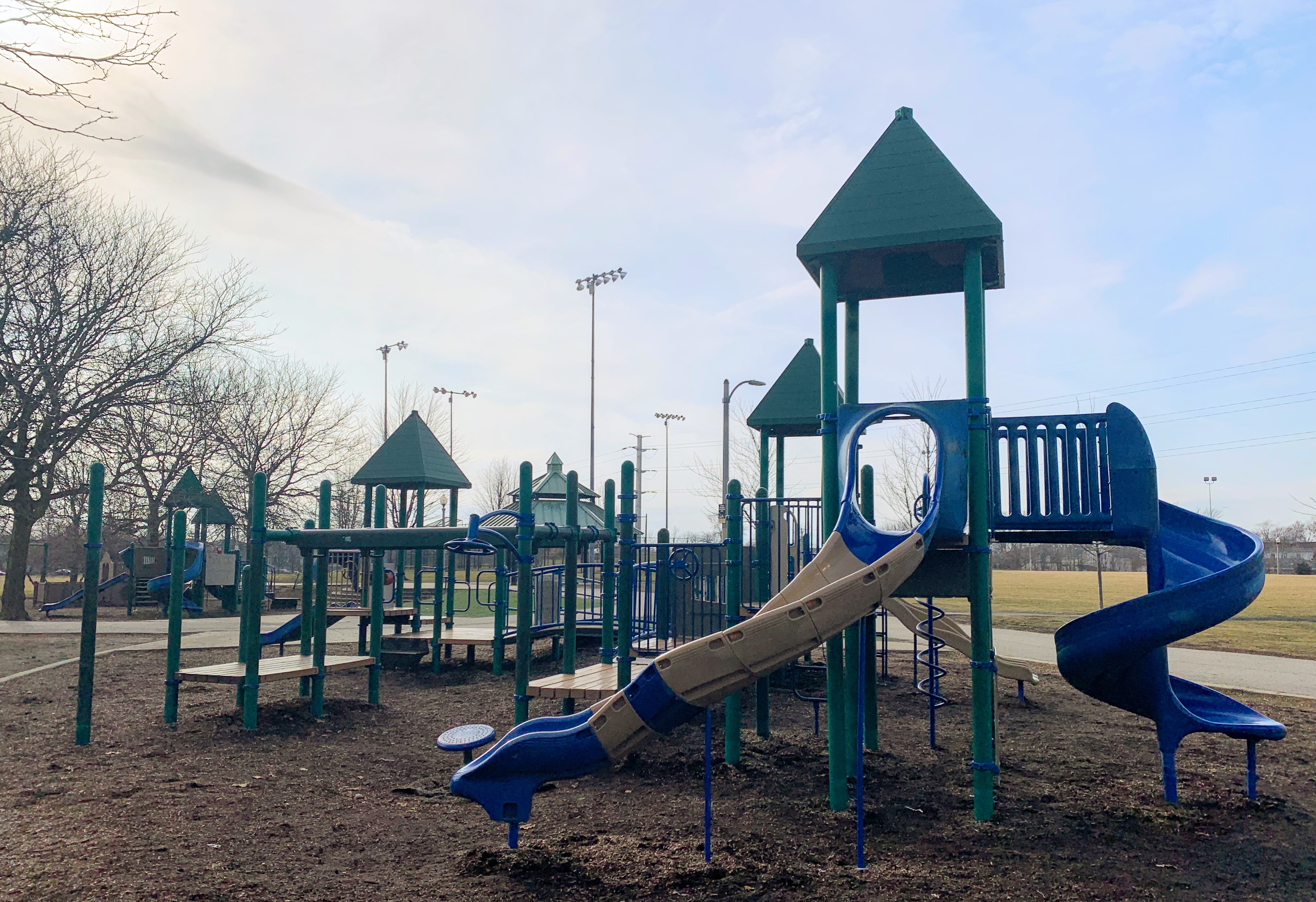 The rest of Senka Park is quite nice with winding walking paths and several athletic fields. There is a large shade pavilion near the playgrounds (though the play areas themselves are quite bright and sunny). Additional seating - benches and picnic tables - would be a welcome addition. All in all, this is a solid neighborhood playground but some improvements could transform this site into a true gem. - Playground Features