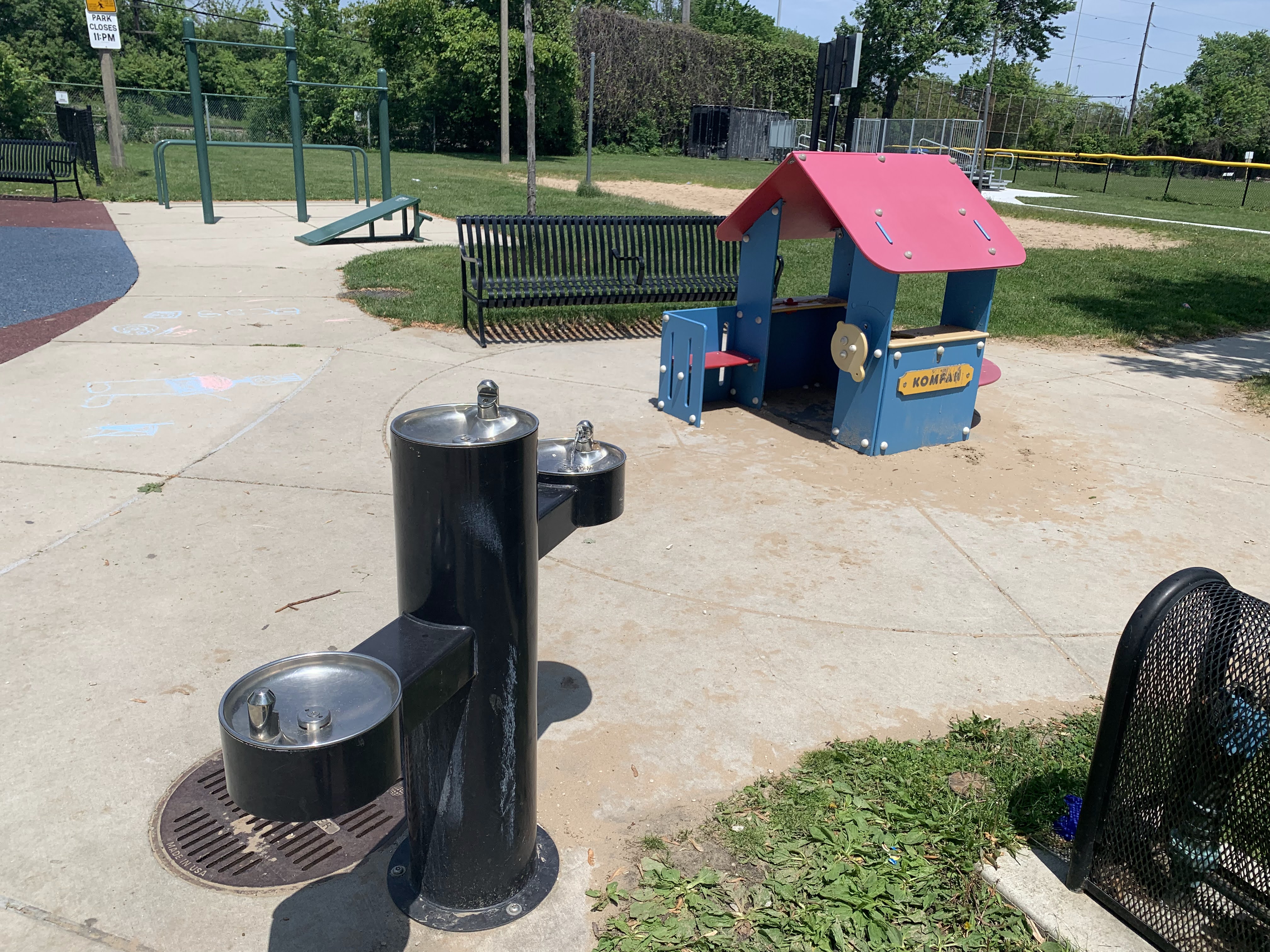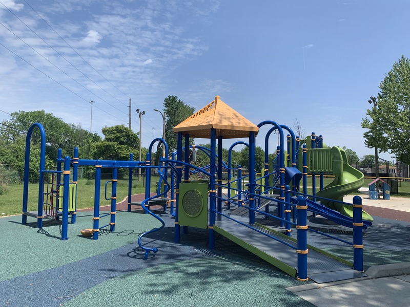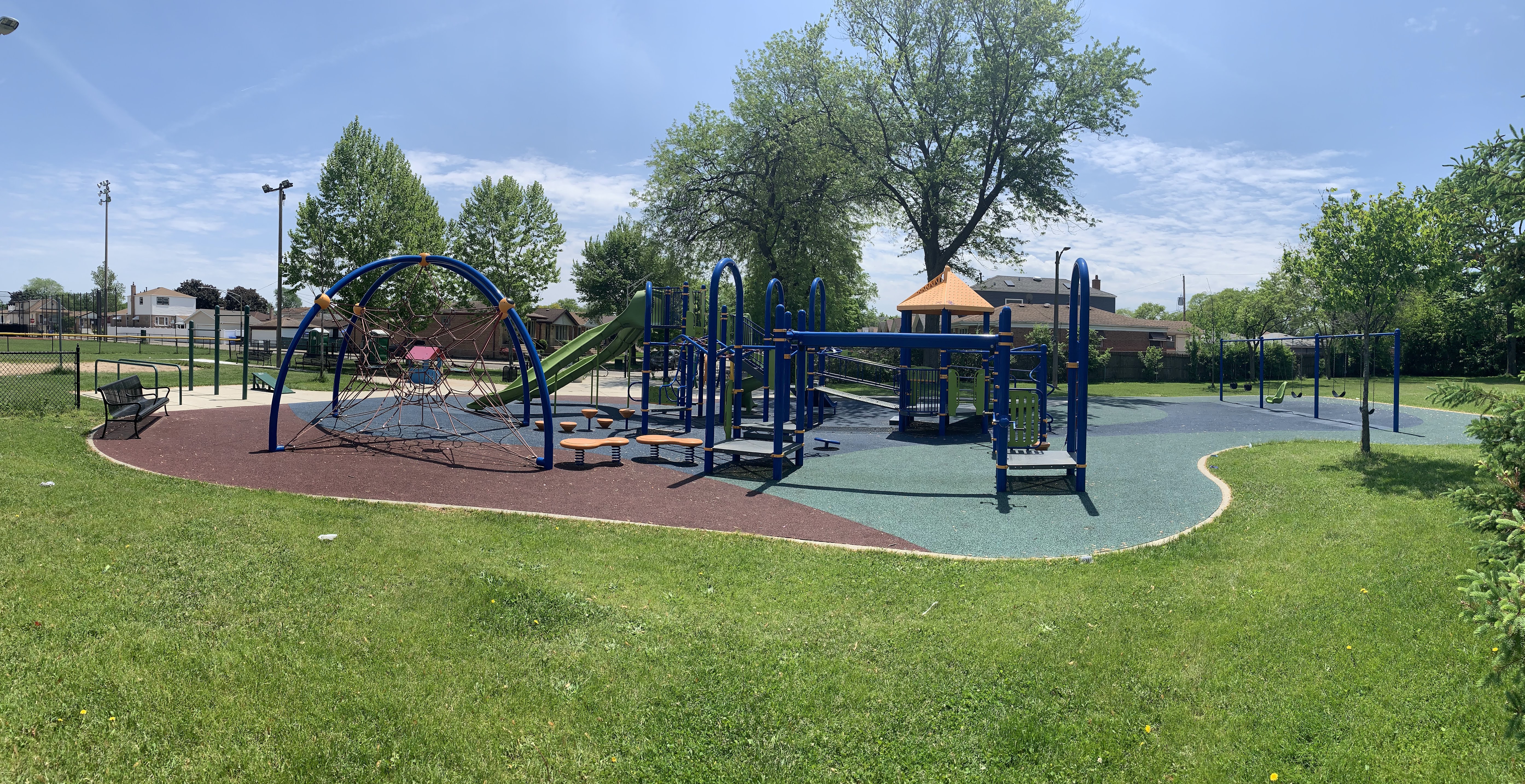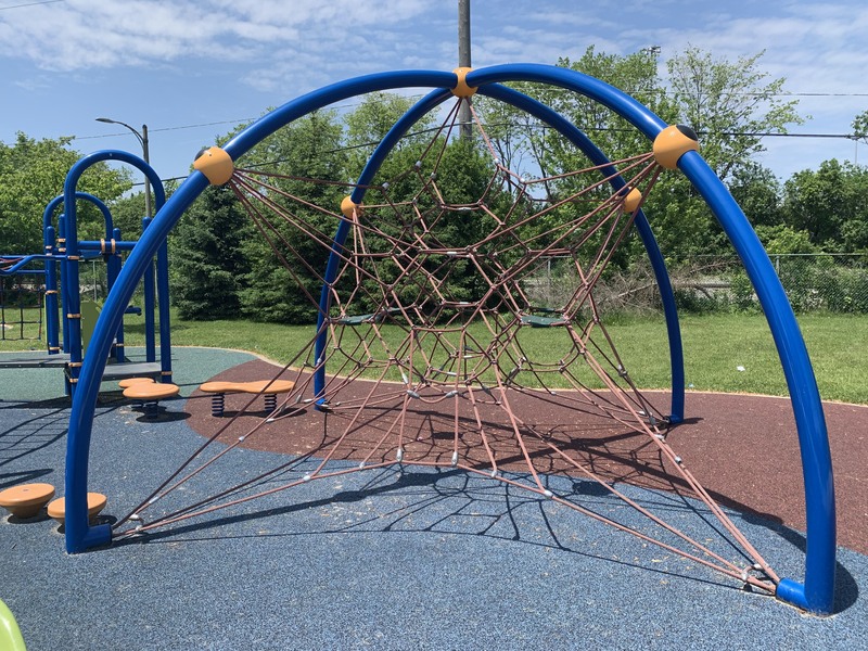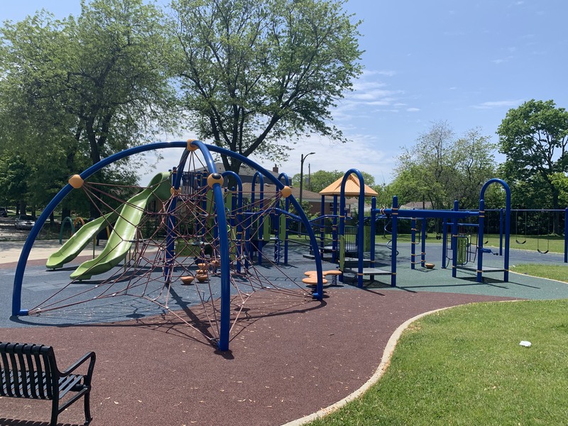 - The playground at Stars & Stripes Park is a wonderful playground tucked in a quiet park. It features a large rope climbing structure, a play structure with a variety of slides and climbing elements, the standard set of swings, and a small water feature. The playground is on the western side of the park and is quiet and features views of the nearby train line. There are benches and a little shade but the play area is bright and sunny. The play surface is soft rubber and the water feature and the play structure are both somewhat accessible to people using wheelchairs. The playground opens to the rest of the park but is fully enclosed from the street. All in all, this is a standard Chicago Park playground in the best sense of the phrase and is worth checking out.