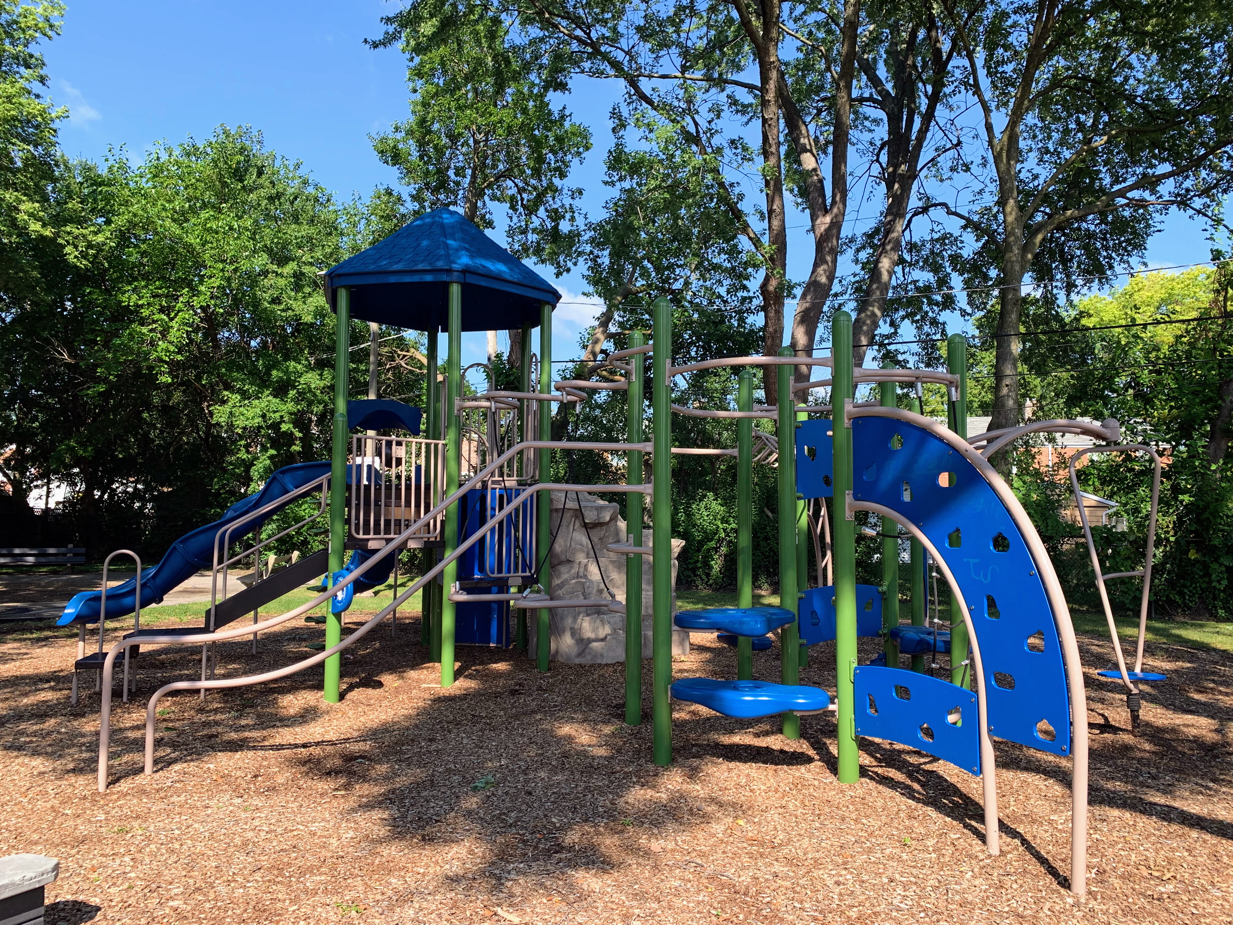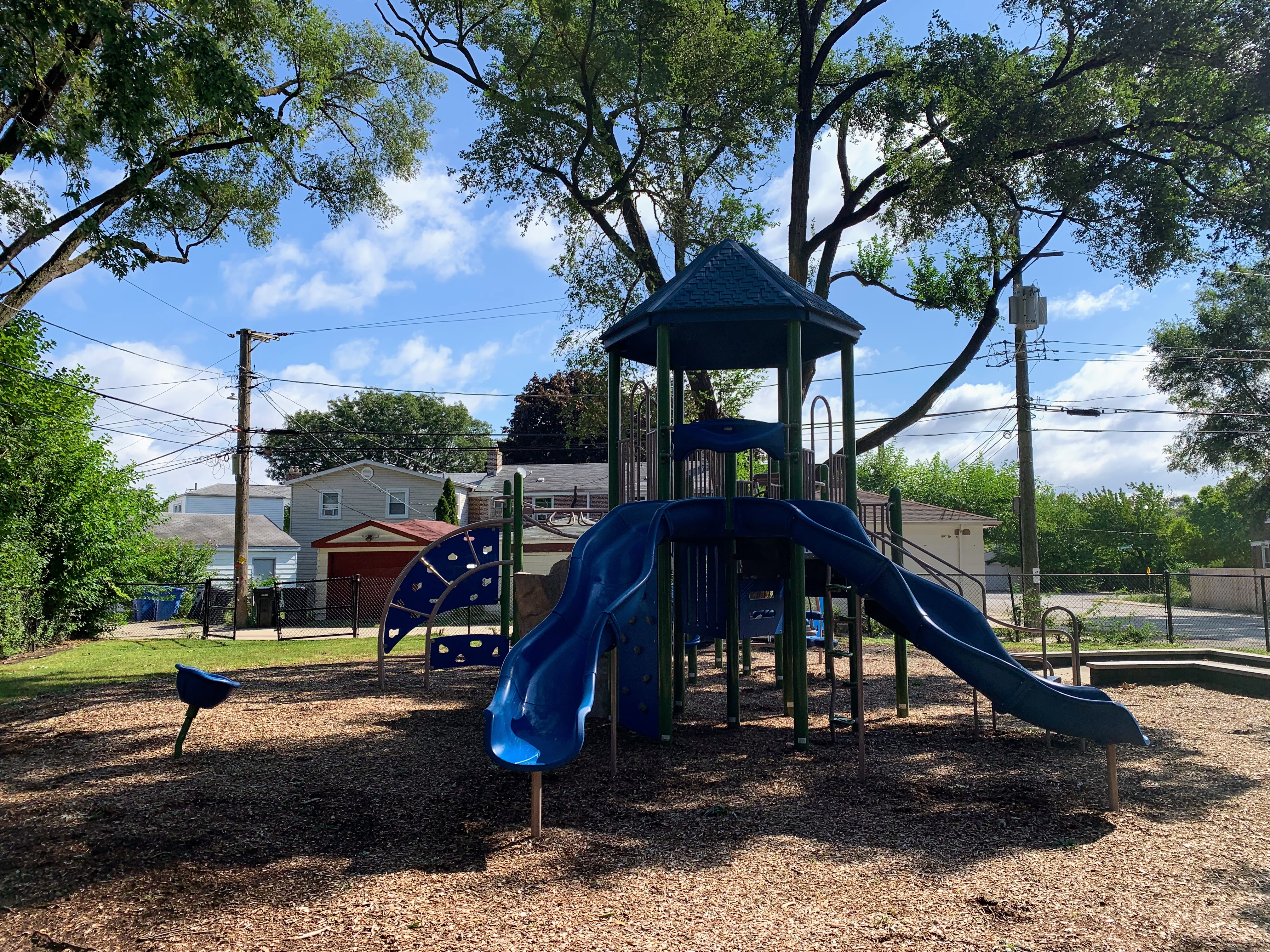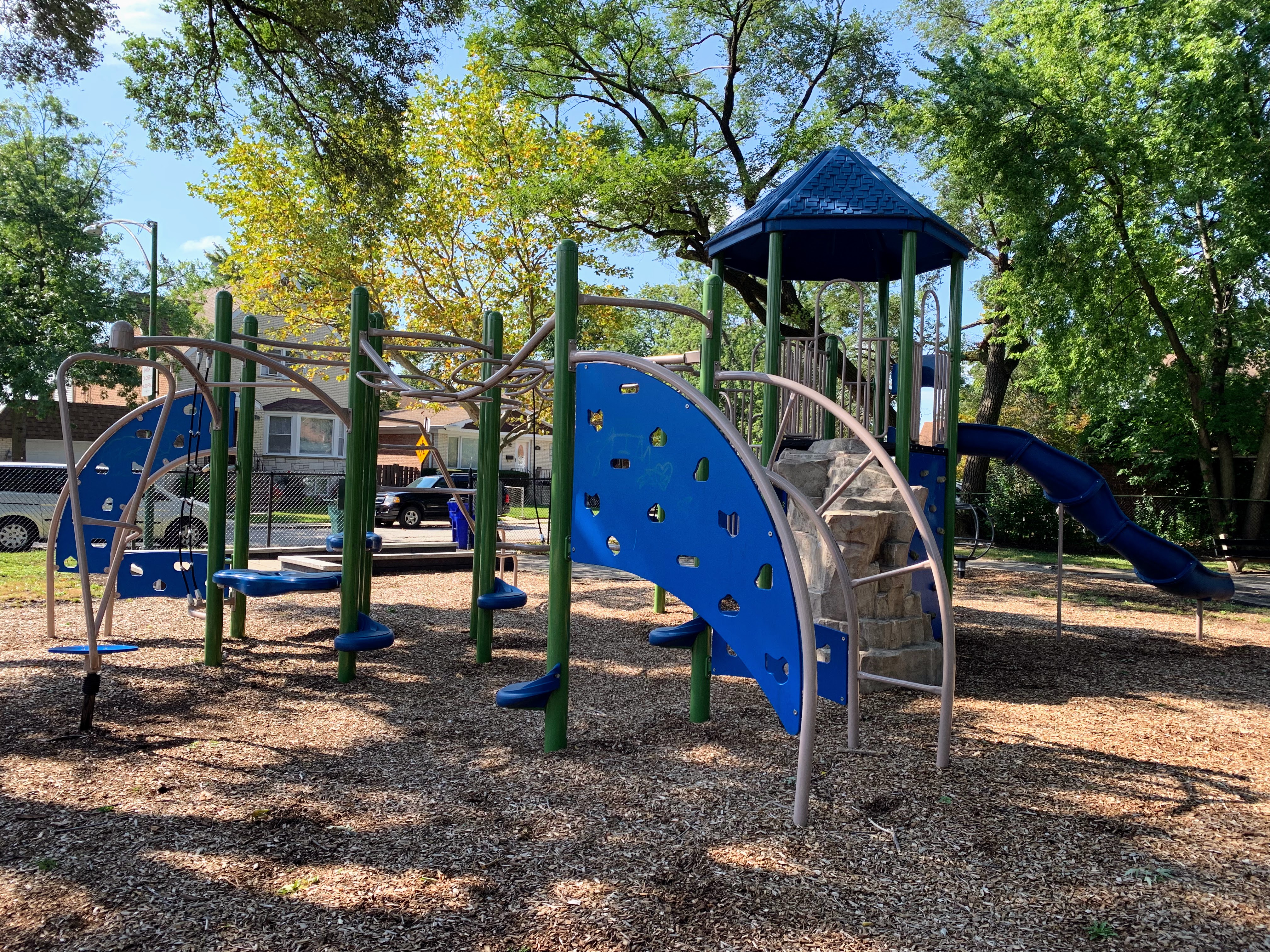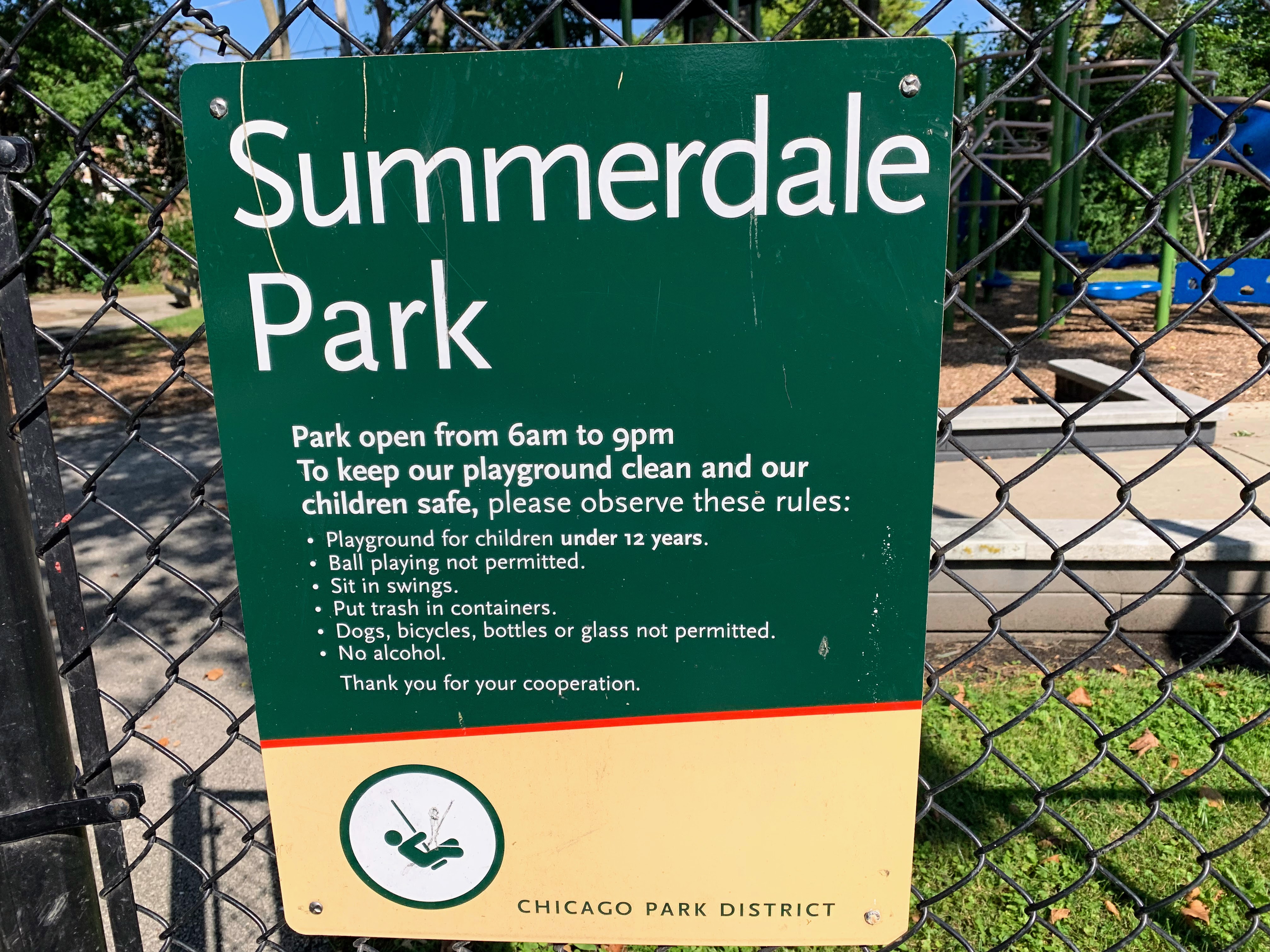 - Summerdale Park is a tiny pocket park with a small playground. The play structure is relatively small with a couple of slides; there is a set of climbing/traversing elements connected to the main structure. The site is very barebones - just wood chips and some wooden benches - although it is quite shady. The play area is fenced from the street but not fully enclosed.