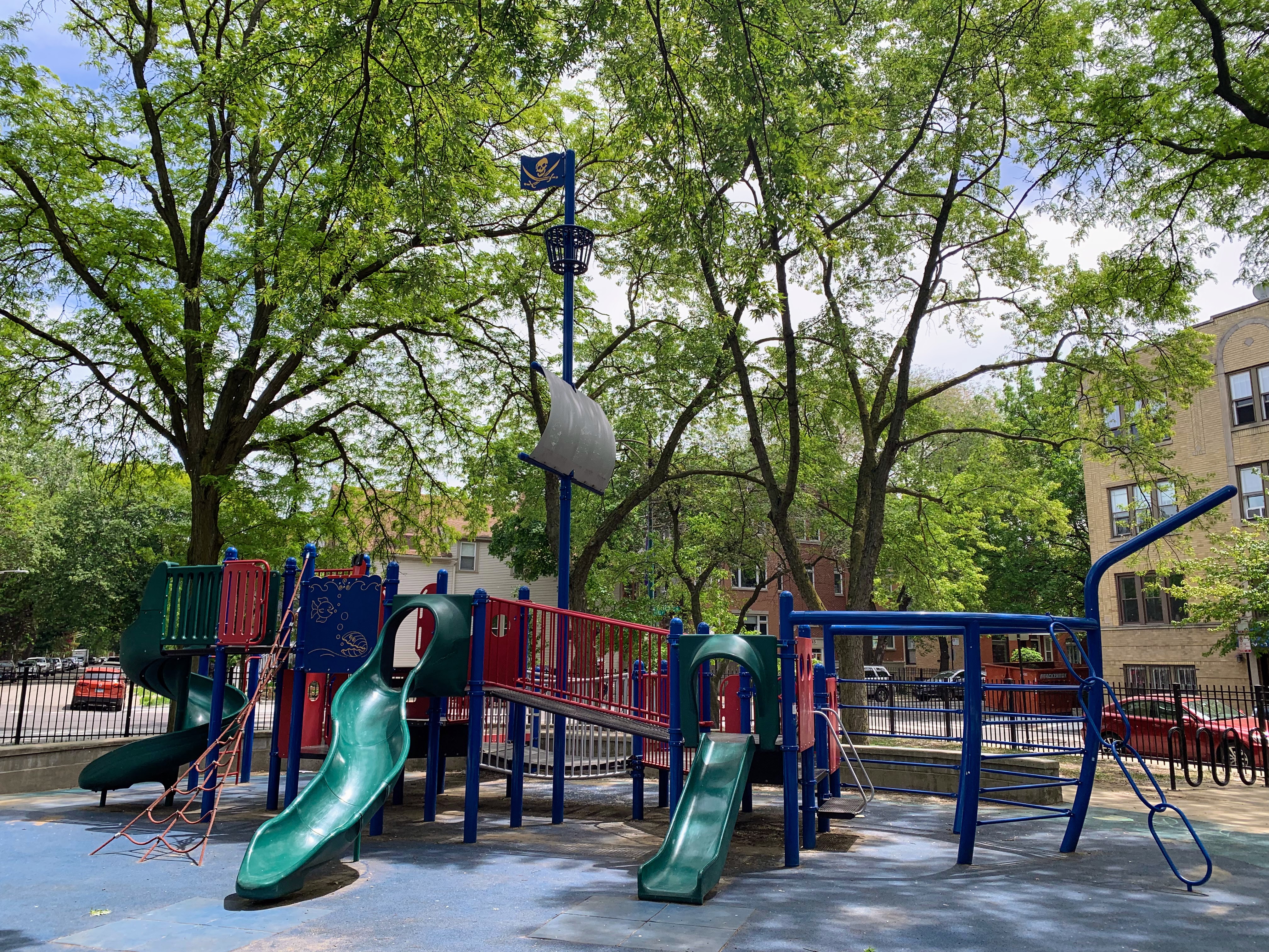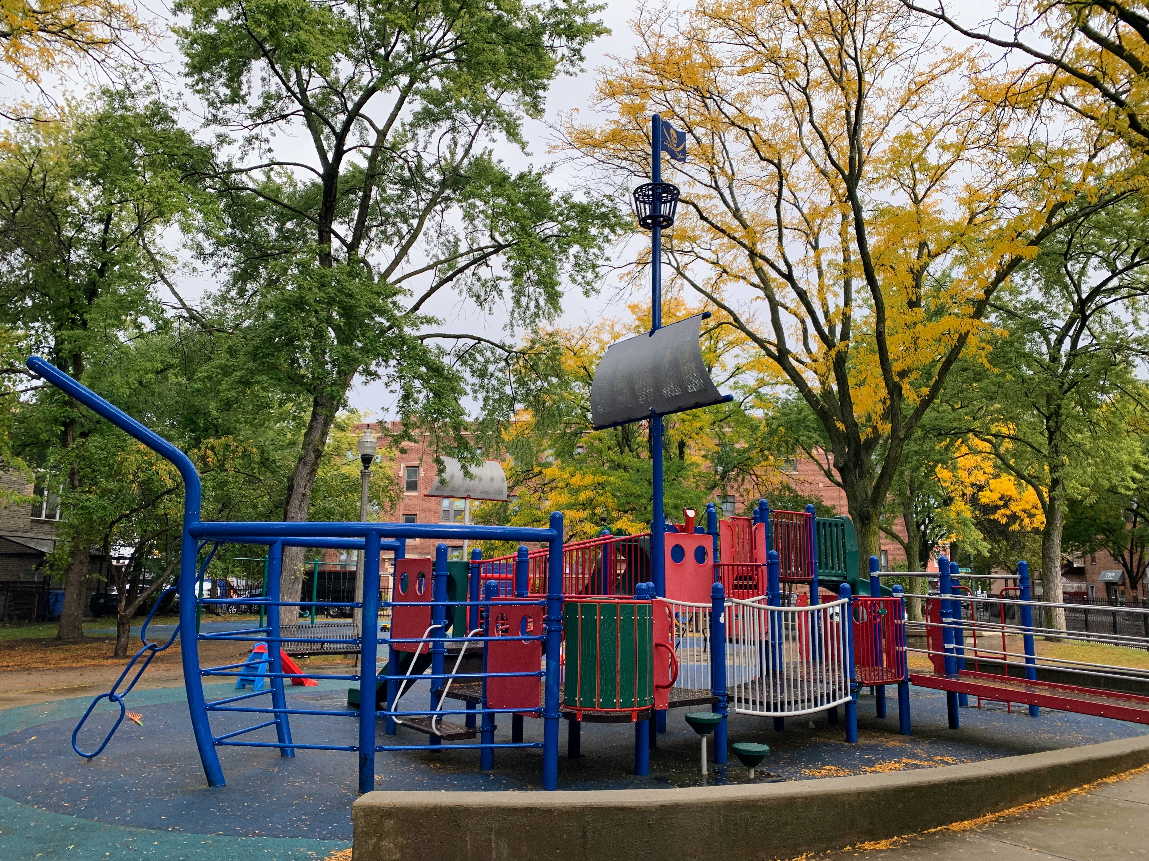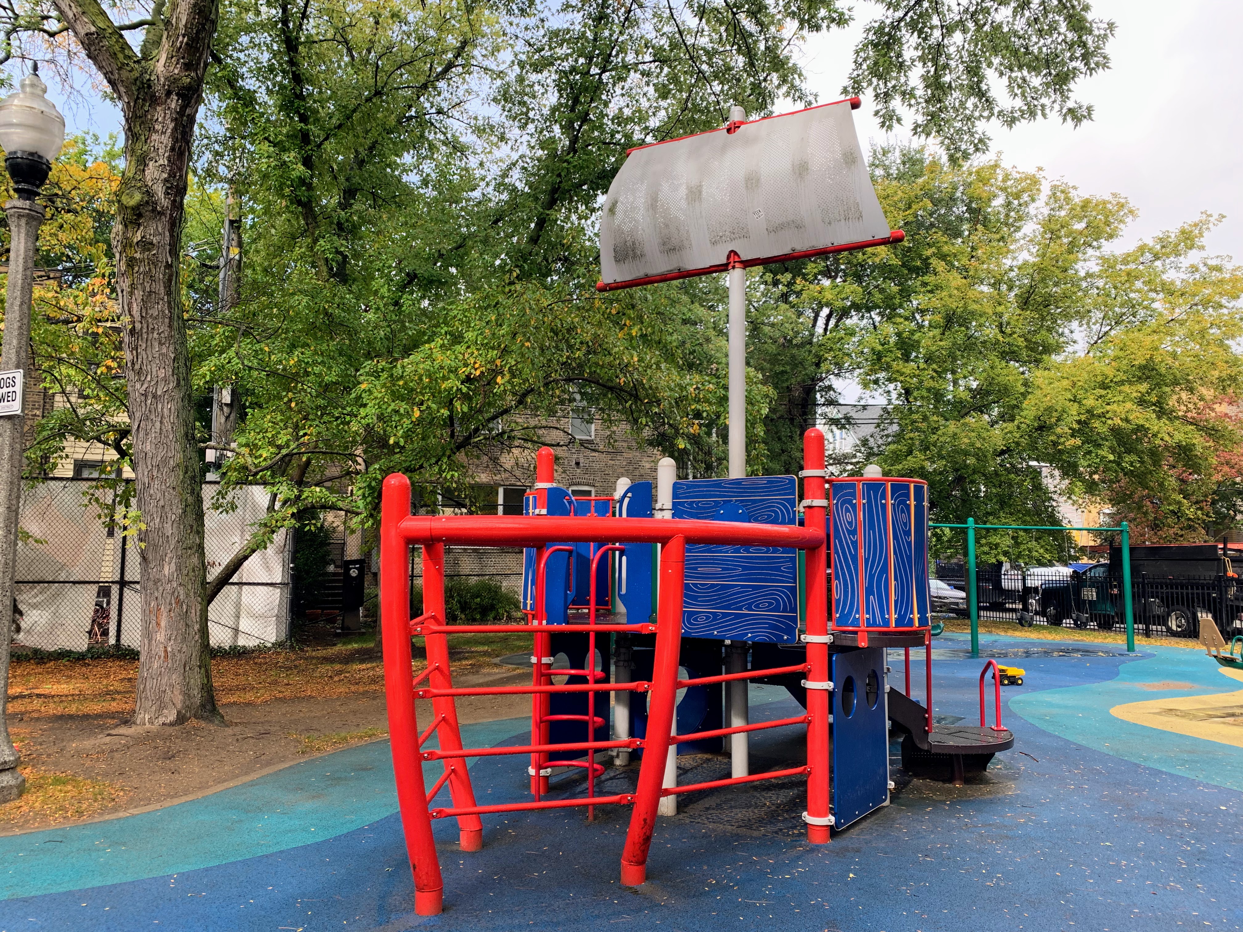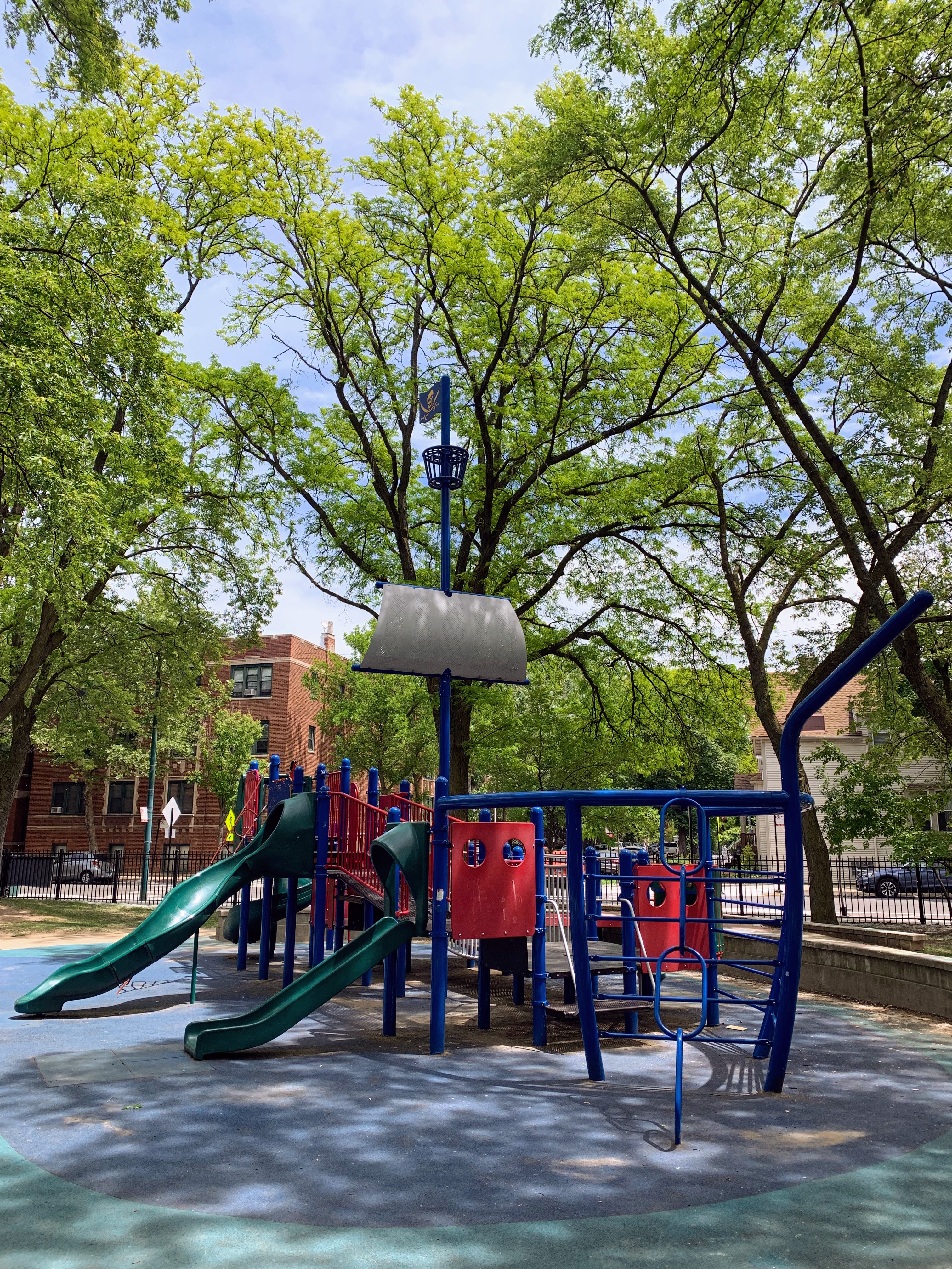 - Supera Park is a super park! There are two play structures that are each designed to look like boats - complete with ship bow ladders and tall masts and sails. There are the standard set of swings as well as a sandbox. The play area is fully enclosed and the soft rubber play surface is shaded by large trees. There are benches and picnic tables for seating as well as a drinking fountain. A really great playground that is definitely worth checking out - highly recommend!
