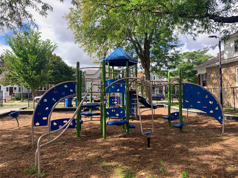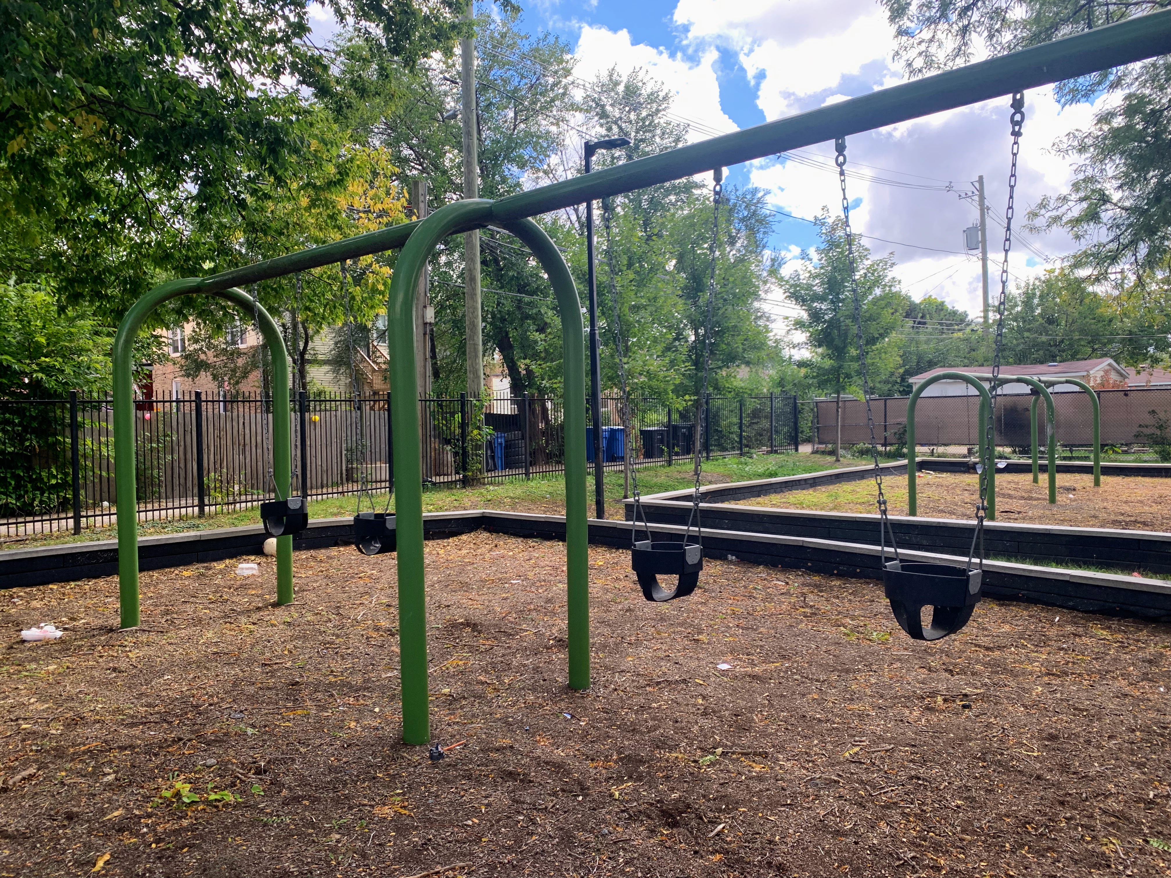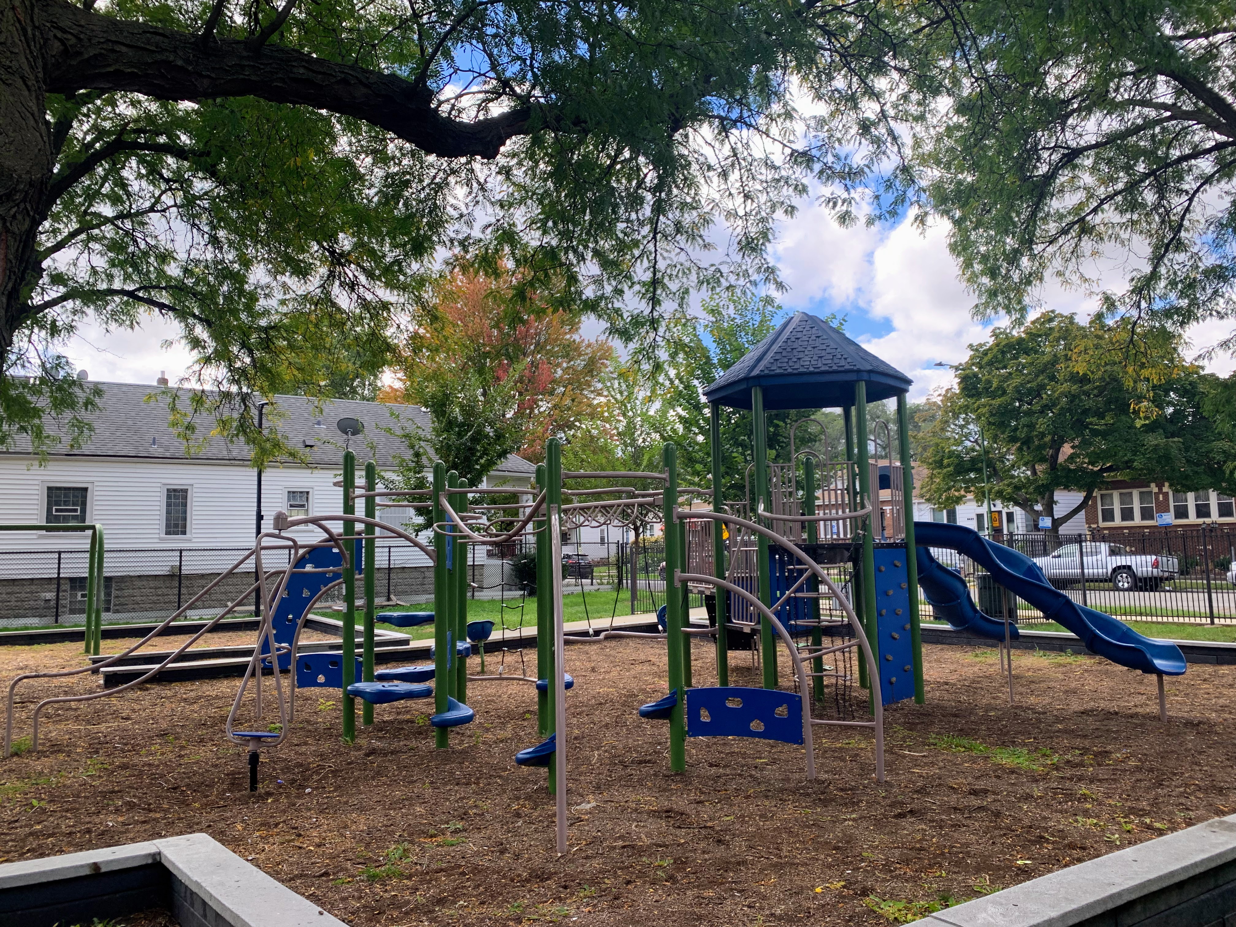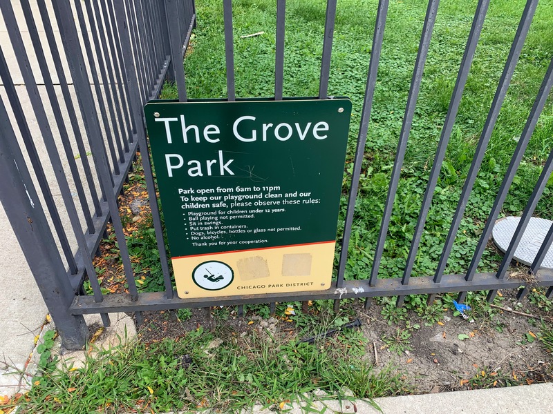 - The Grove Playground is a small neighborhood pocket park with a decent playground and a few swing options. The main play structure is good size with a few slides and climbing options; attached the the structure is a collection of traverse and overhead elements to challenge older children. This park offers toddler, belt seat, and a tire swing. The park is shaded by beautiful trees and has a drinking fountains but - strangely - I don't recall any benches. The play area is fenced from the street and the play surface is wood chips.