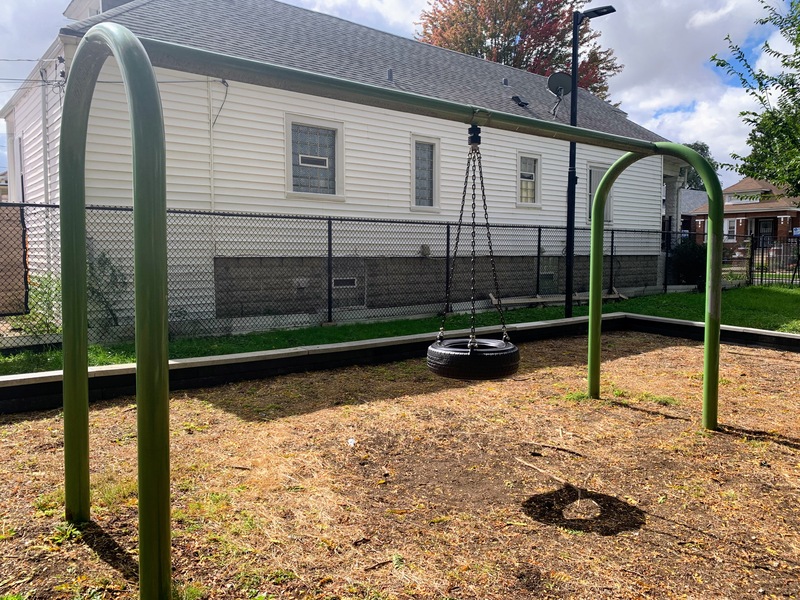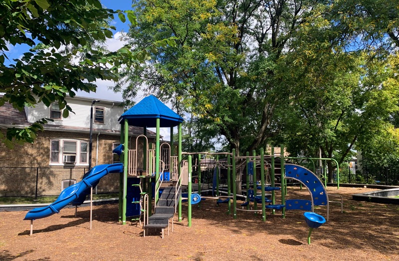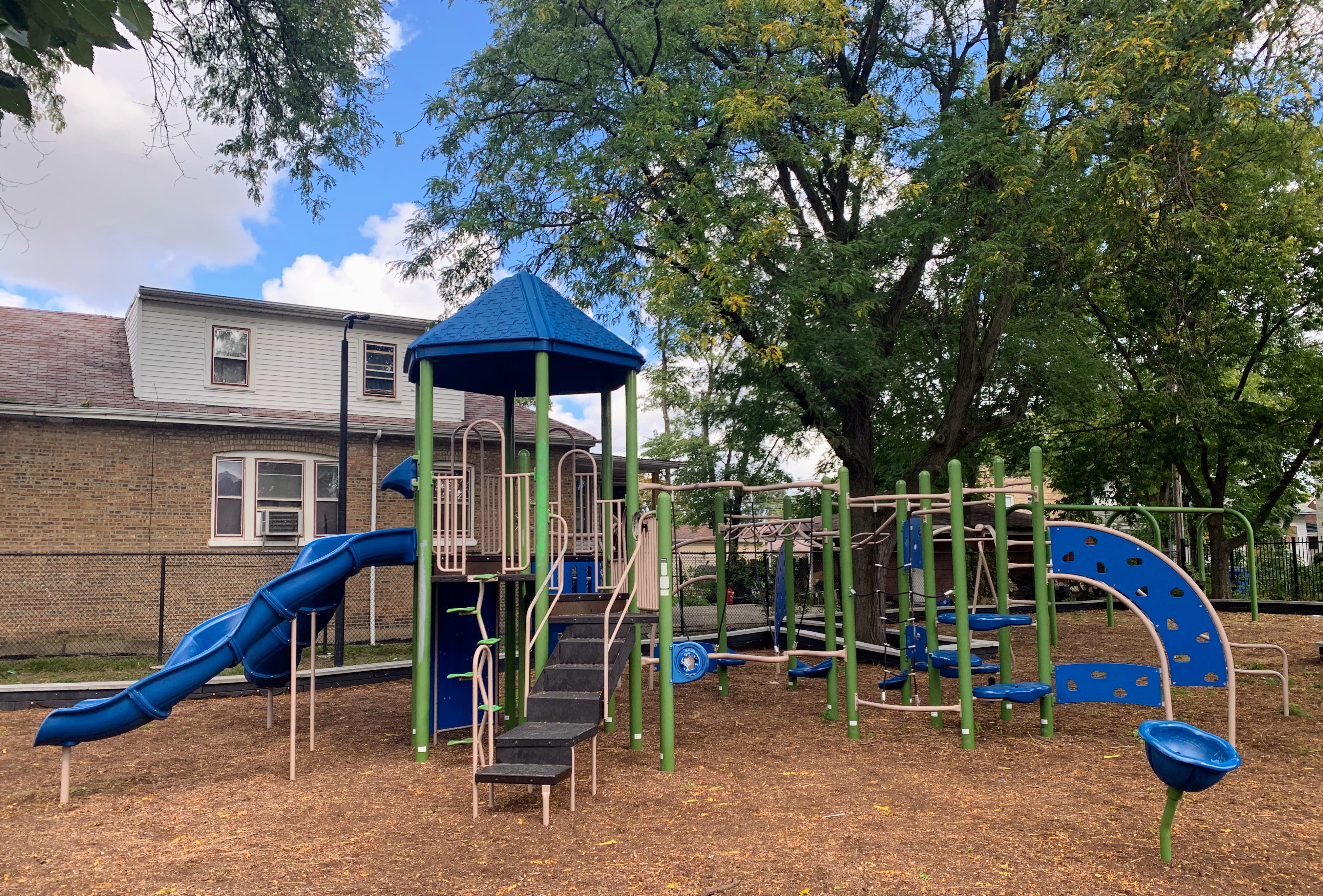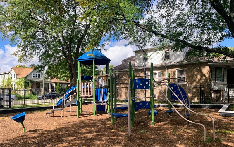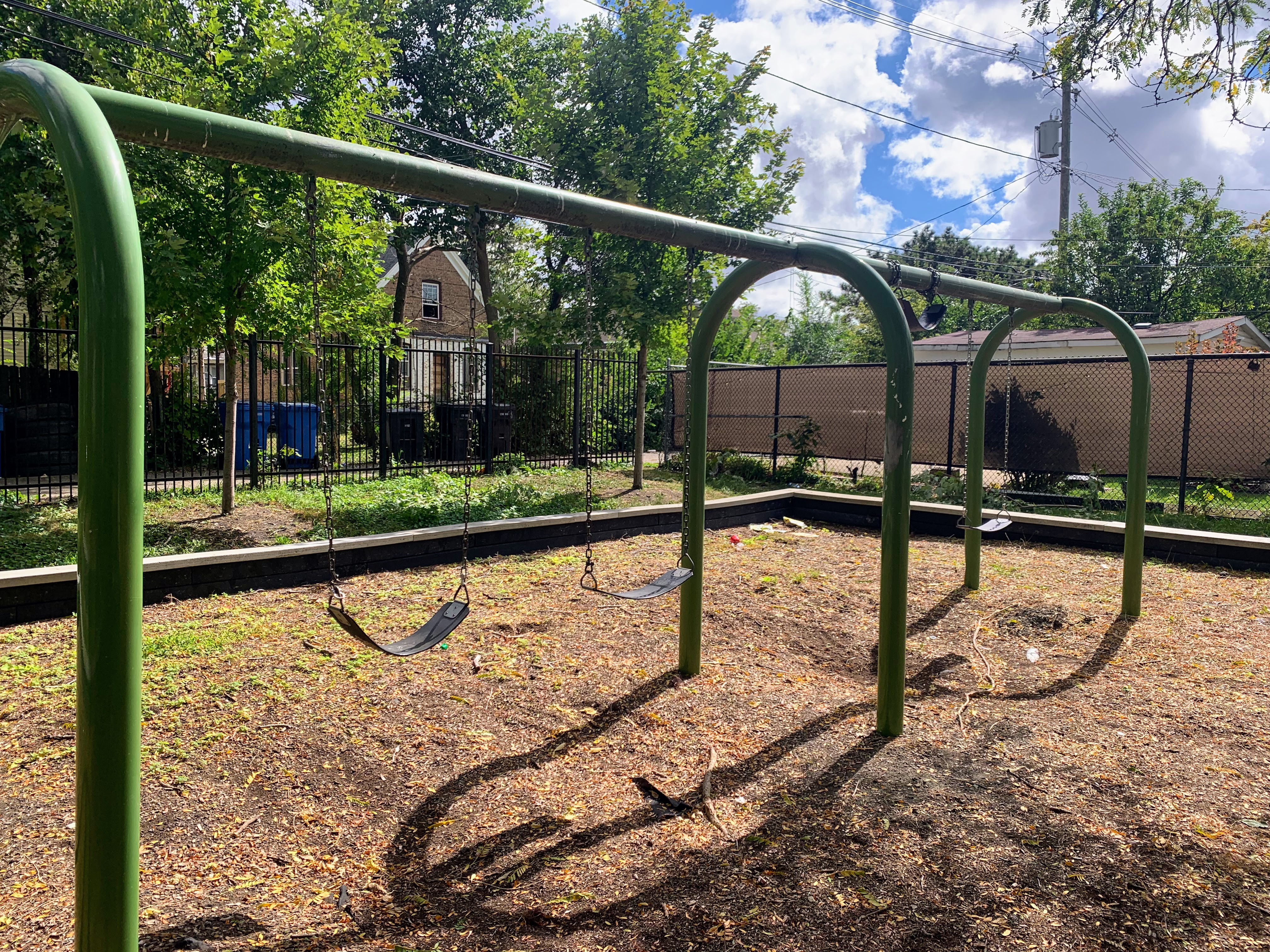 - The Grove Playground is a small neighborhood pocket park with a decent playground and a few swing options. The main play structure is good size with a few slides and climbing options; attached the the structure is a collection of traverse and overhead elements to challenge older children. This park offers toddler, belt seat, and a tire swing. The park is shaded by beautiful trees and has a drinking fountains but - strangely - I don't recall any benches. The play area is fenced from the street and the play surface is wood chips.