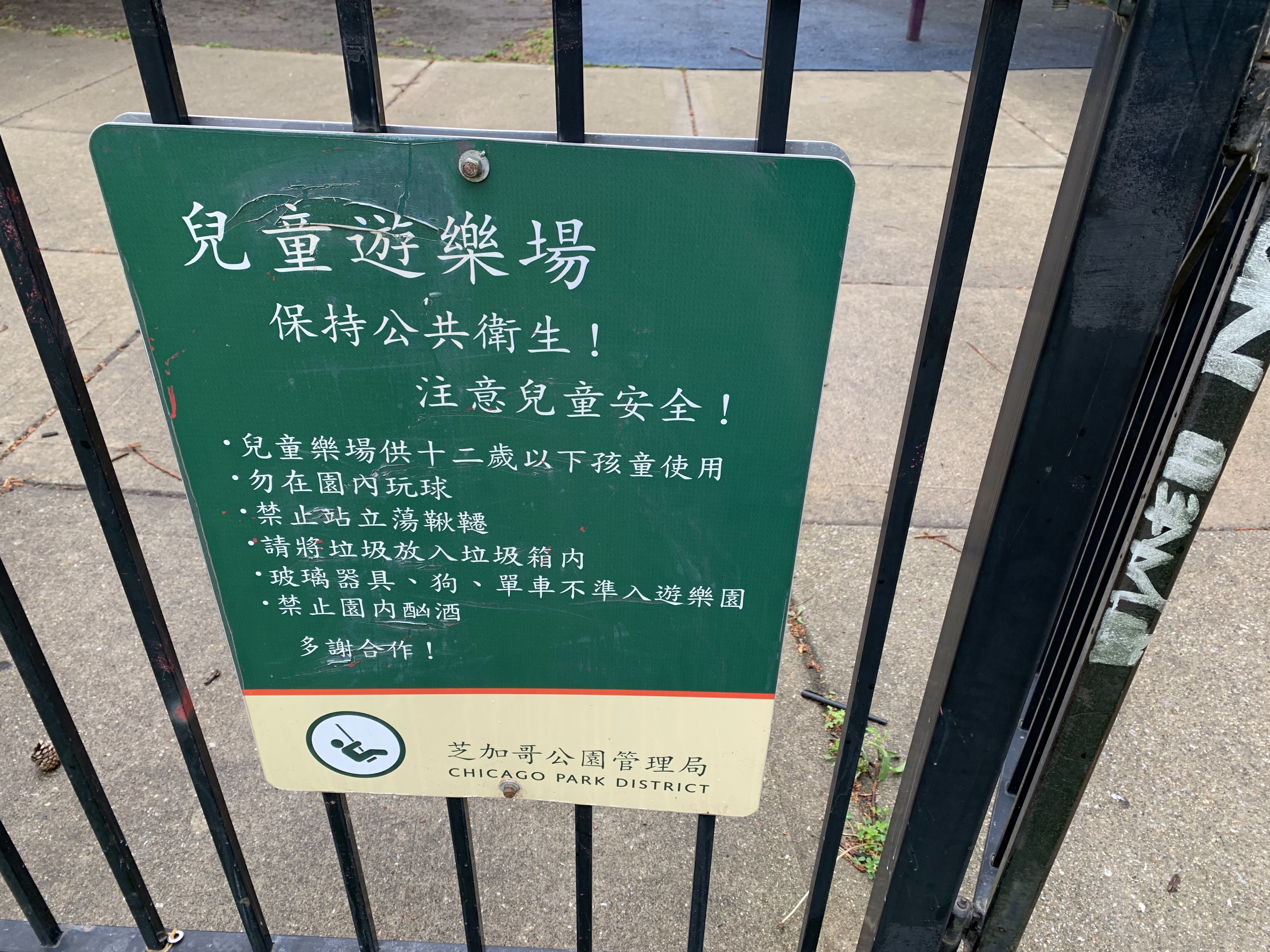 Ping Tom Park is one of the best parks in Chicago and the playground, while somewhat standard, does not disappoint. It contains two play structures and a number of small, standalone elements, as well as swings and seating. The smaller play structure is designed for younger children and is quite small and accessible. The larger structure is somewhat sprawling and including a variety of elements: monkey bars, climbing elements, slides, and more. No element is truly remarkable or unique but the entire play structure is above average. There are a few unique standalone elements and a standard set of swings.
