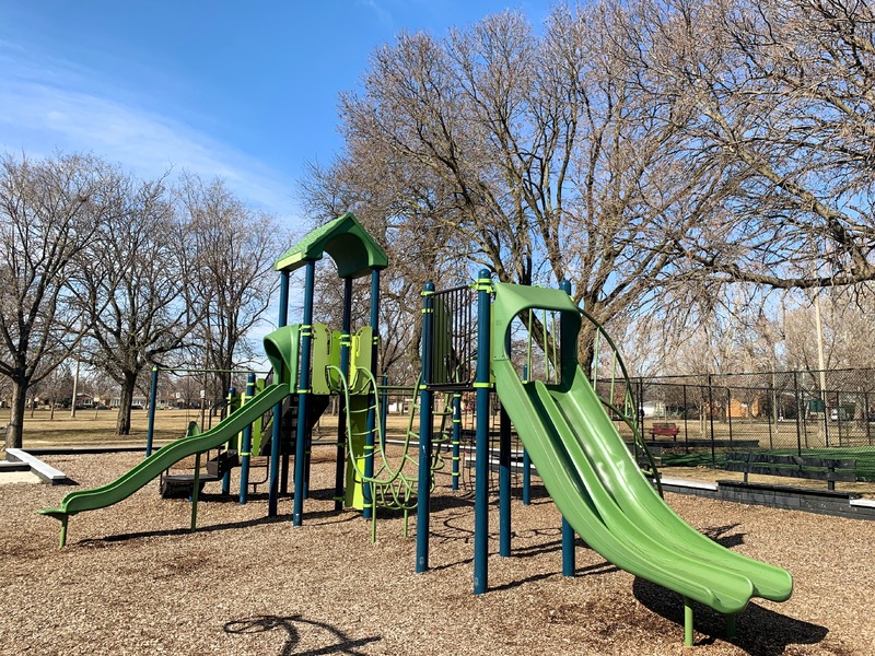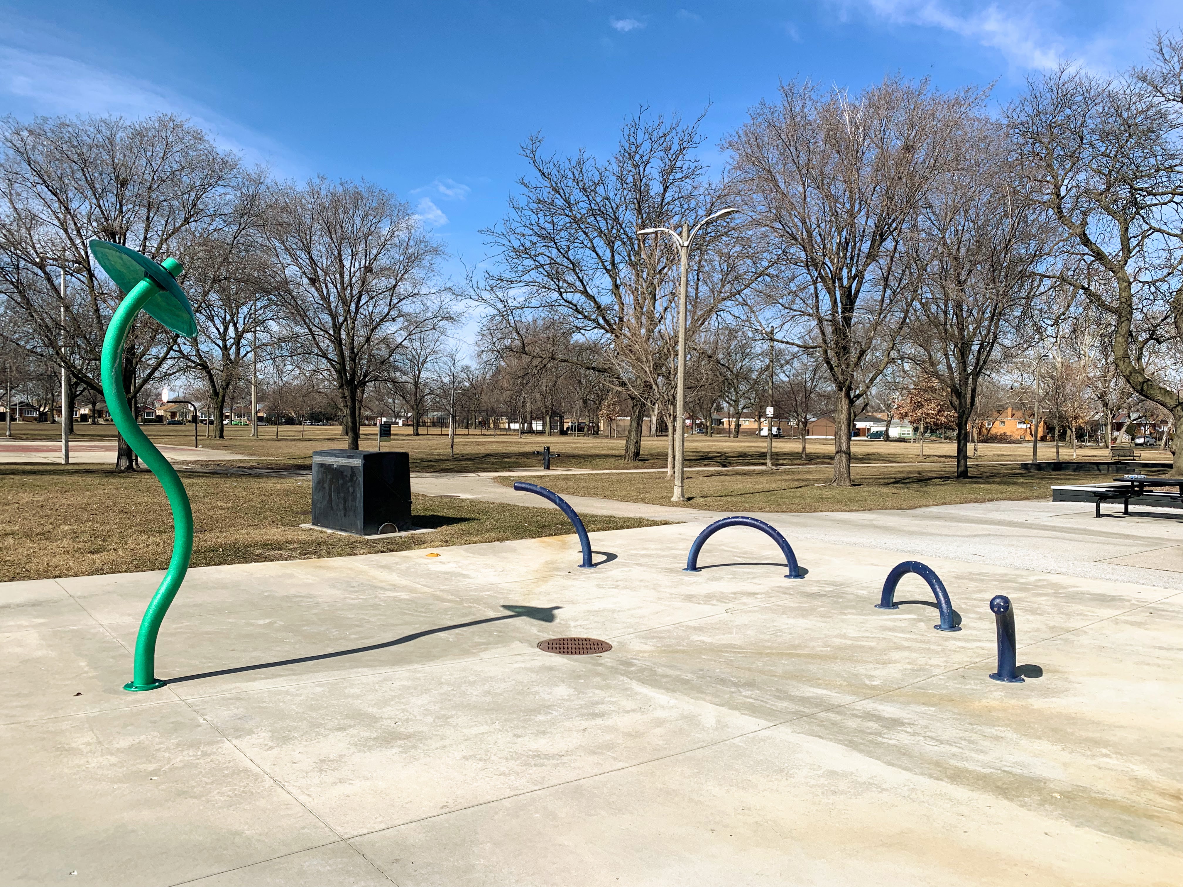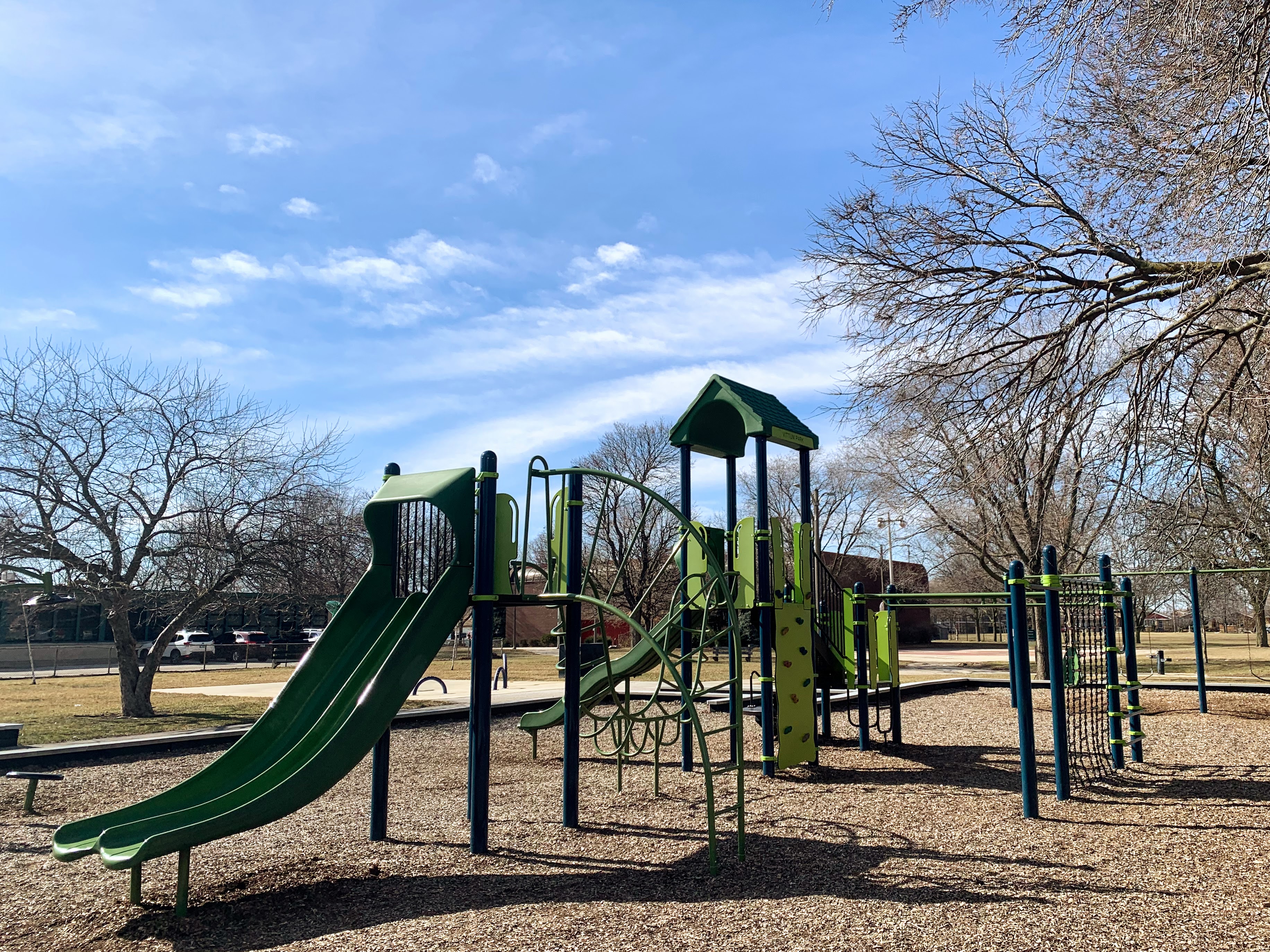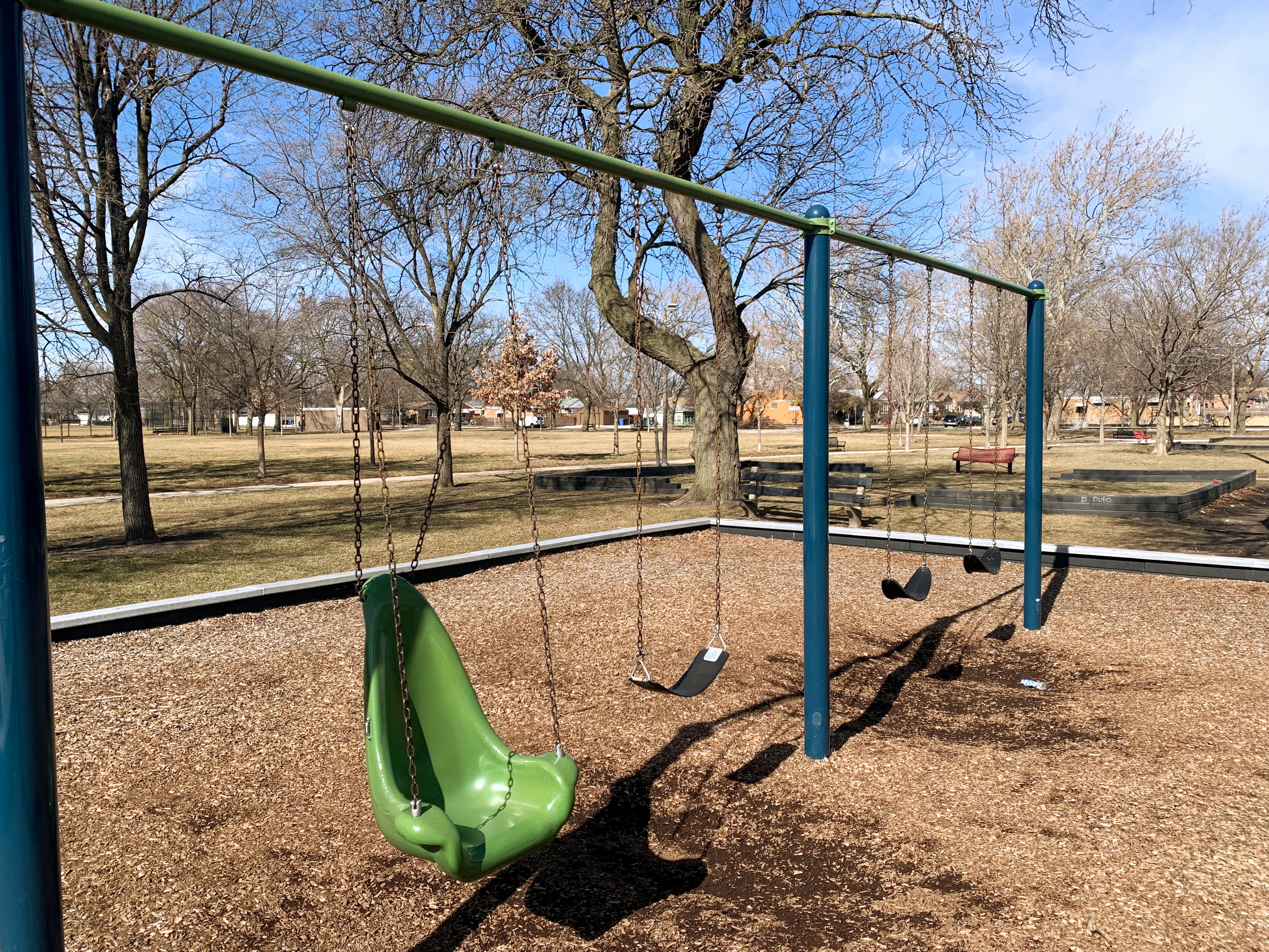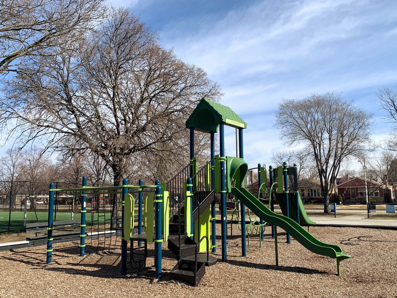 Vittum Park is a large neighborhood park with many different athletic fields, a playground, and a water spray feature. The playground was renovated in 2015 and features two play structures - a smaller one for younger children and a larger one for older children - as well as a set of standard Chicago Park swings. The water spray feature is a 'loch ness mister' and an overhead spray element. All the equipment is very nice and well-maintained.