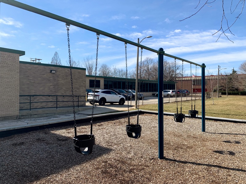 The setting and non-play elements are very solid. There are large, mature trees surrounding the site and a few benches and picnic tables for seating. The nearby fieldhouse provides access to bathrooms (when open). The play area is fenced from the street but not enclosed and opens directly into the rest of the spacious park. All in all, this is a great park and playground; highly recommend. - Playground Features