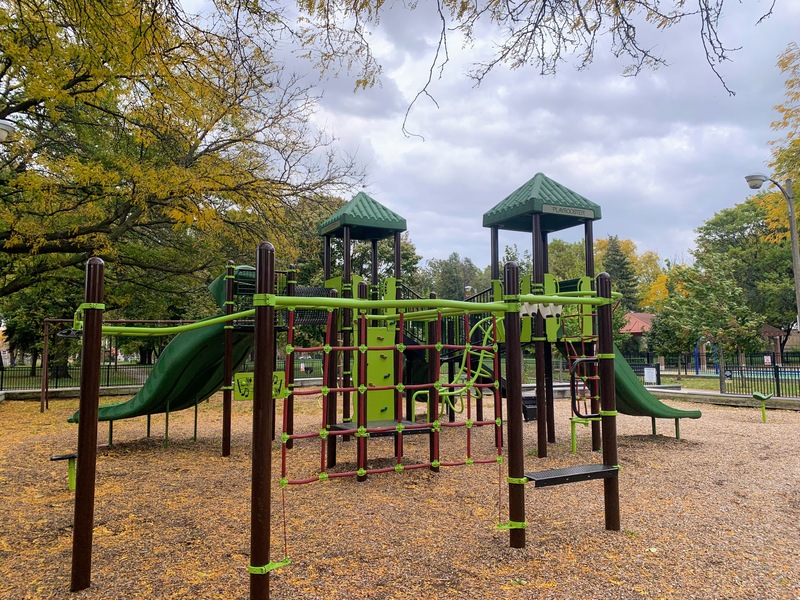 These playgrounds open into the rest of the park and feature benches and picnic tables for seating as well as trees for shade. Both areas are fully enclosed and removed from traffic making them great places to spend some time. Highly recommend. - Playground Features