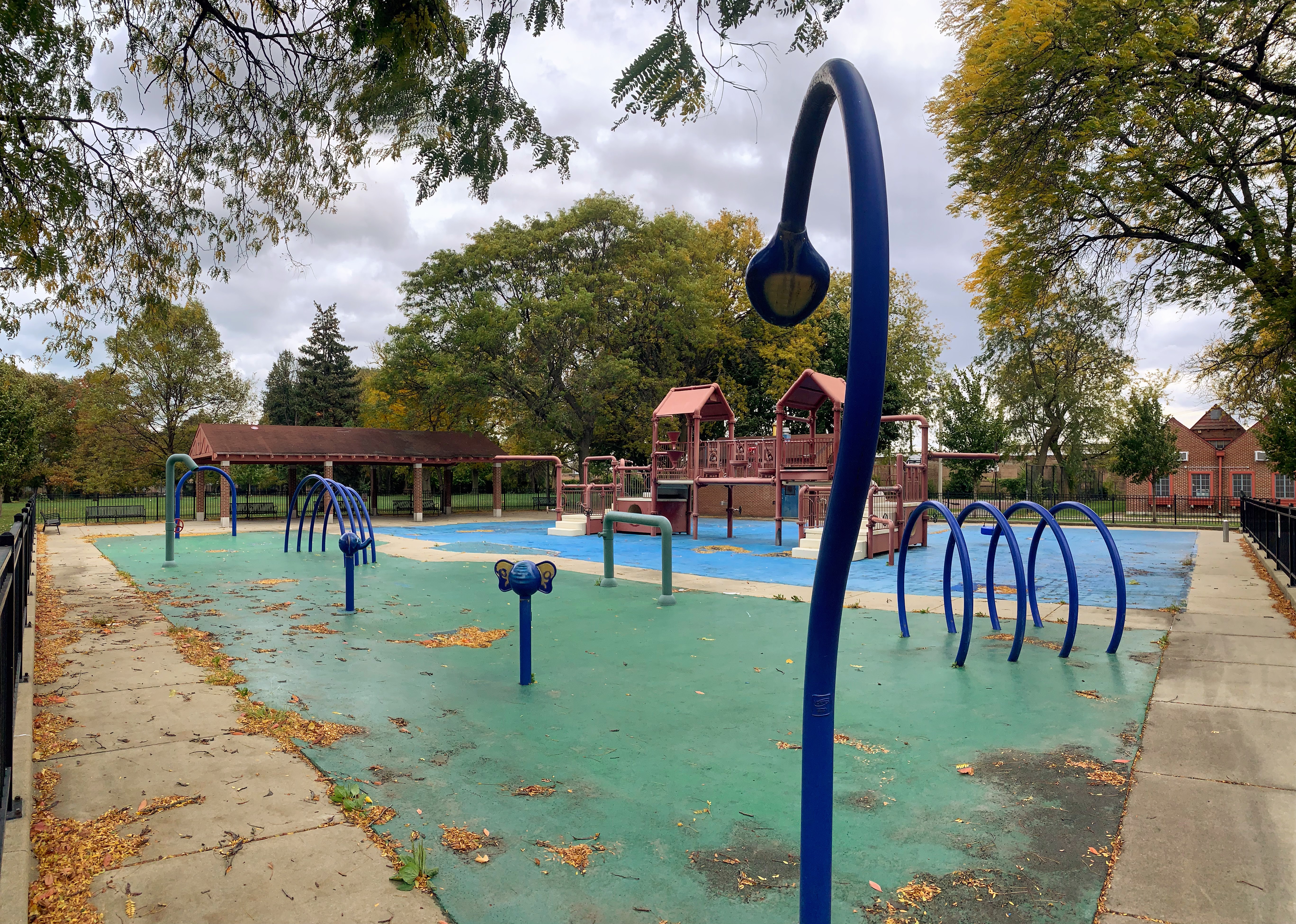 On the north side of West Chatham Park, you'll find a delightful playground and water playground. The playground is standard in many ways - a single large play structure with a few standalone elements and swings - but is also really well done. The water playground is a huge area with a variety of different water spray elements.