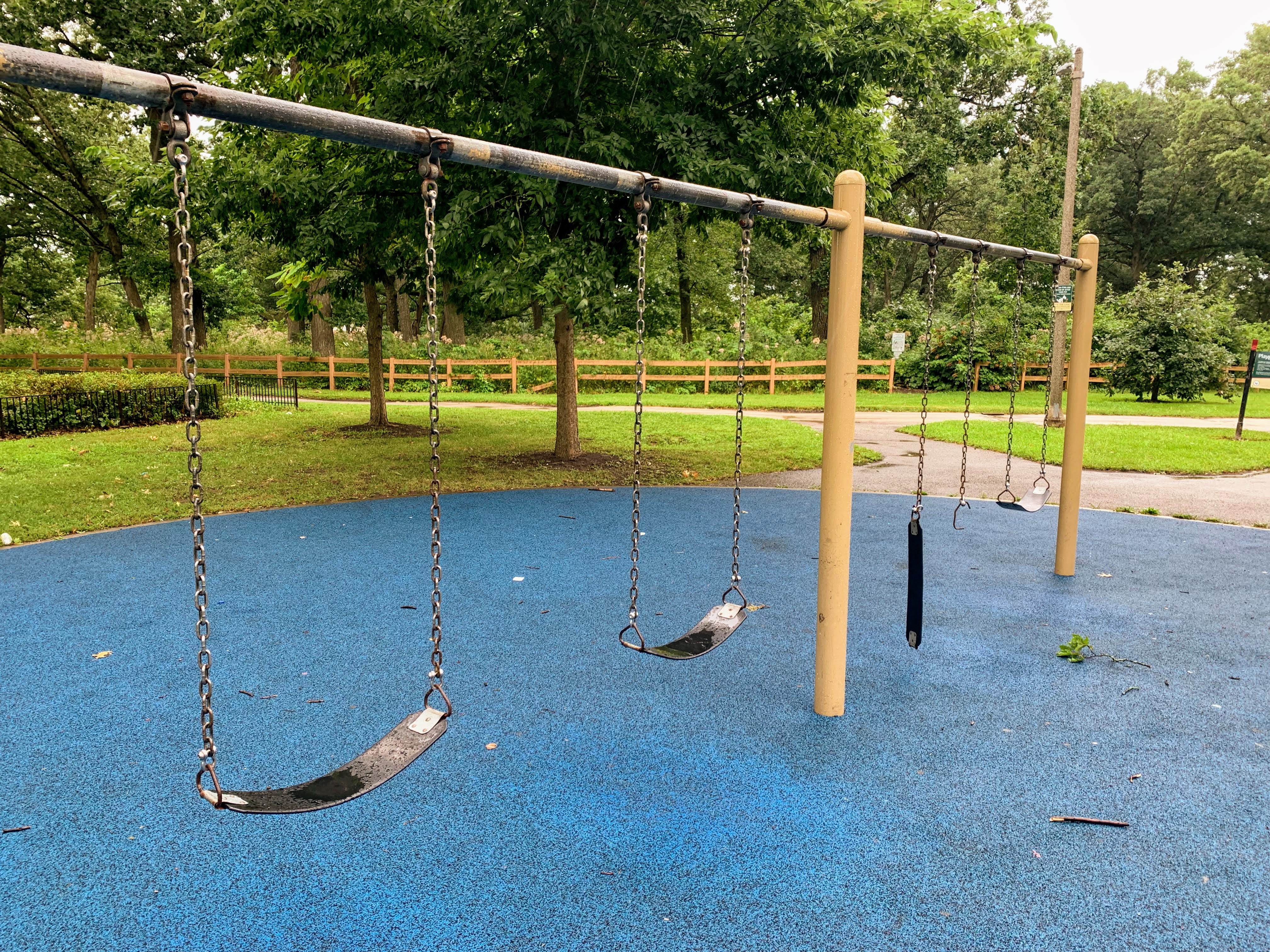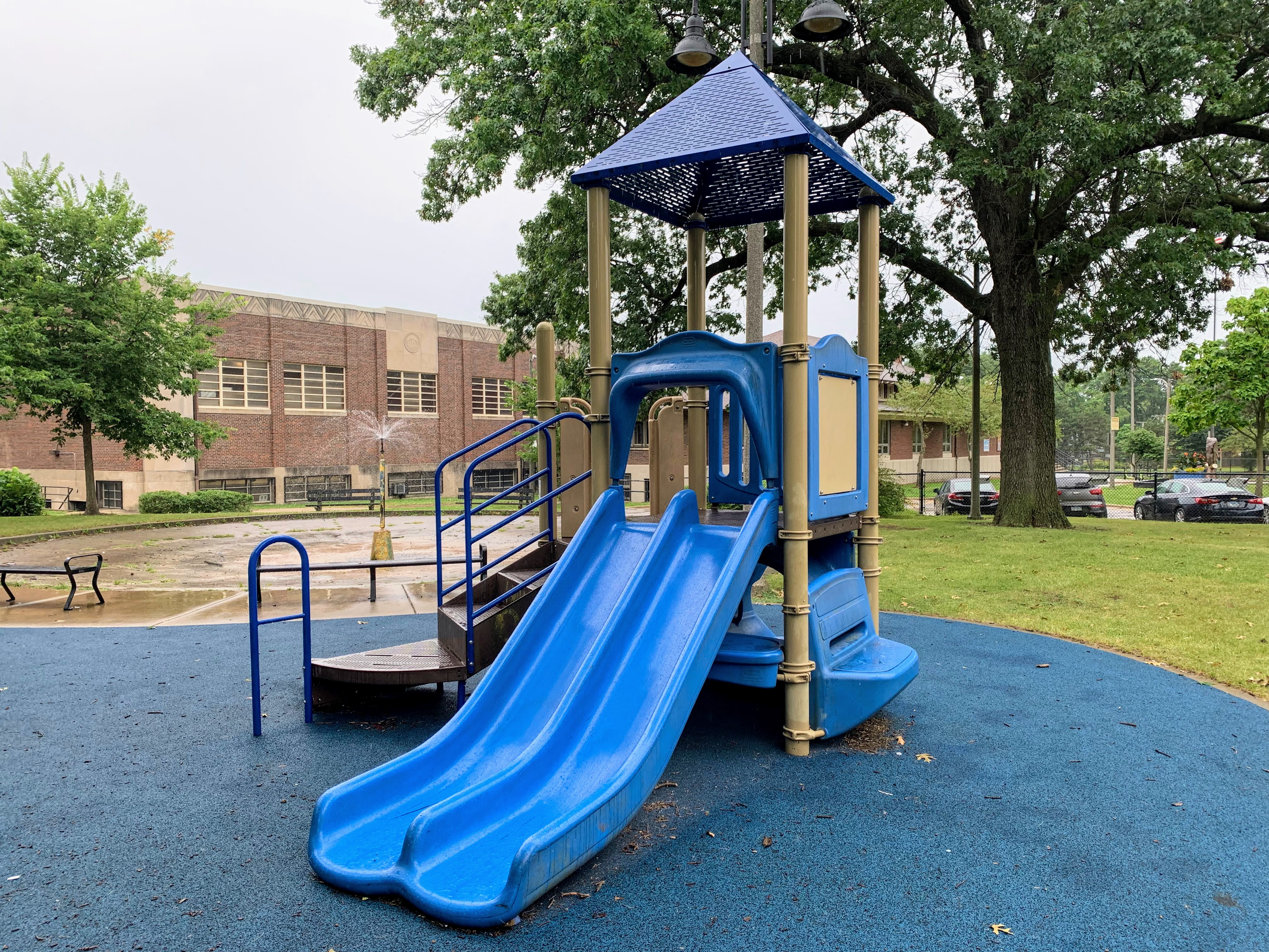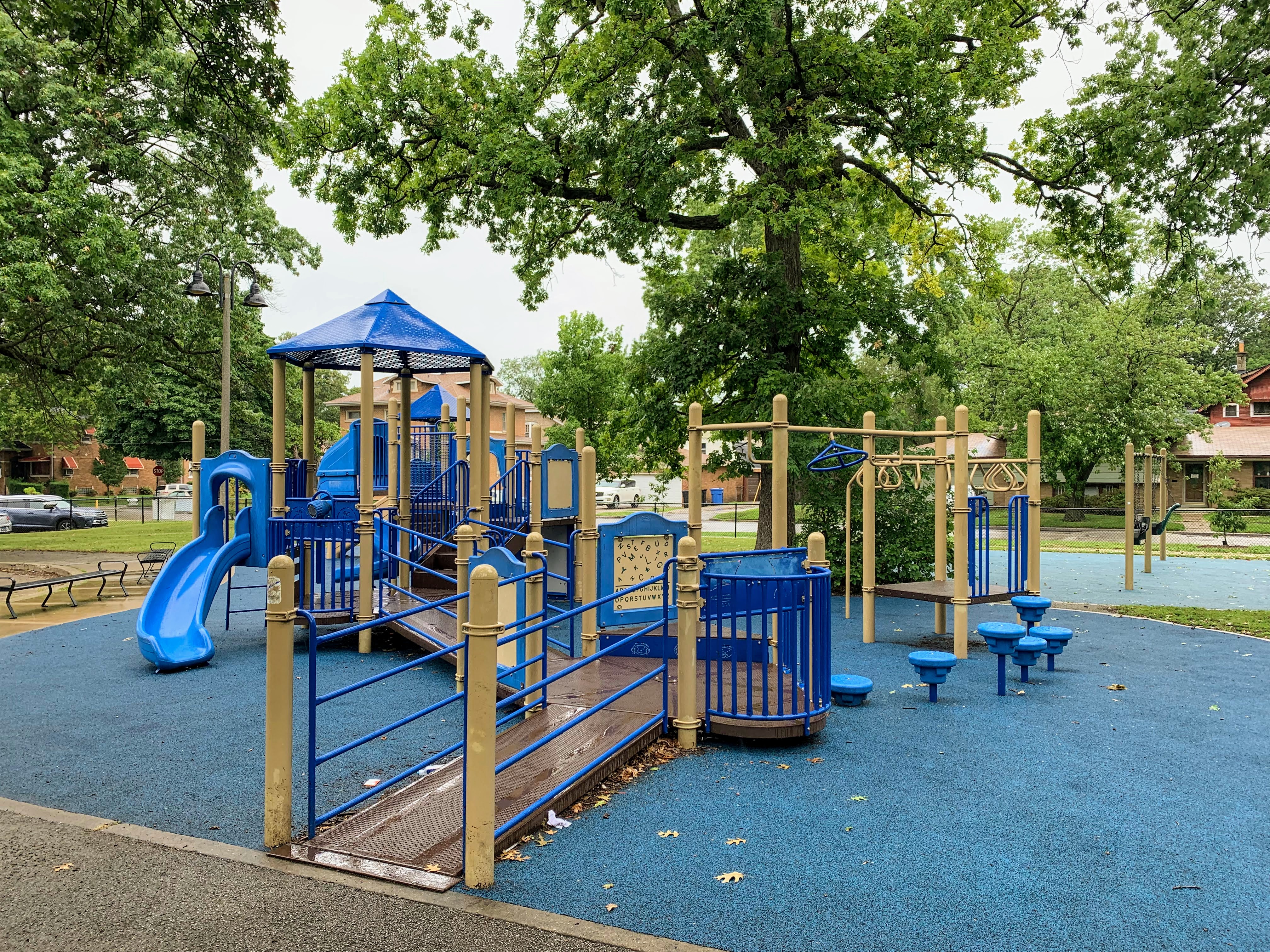- The playground in West Pullman Park is a solid playground with some great trees. There are two play structures, a set of swings, and a small water spray feature. The structures are standard in the best sense of the word and come with many of the standard elements: slides, monkey bars, and other climbing elements. There are a few nice amenities - soft rubber surface, benches, access to bathrooms in the nearby community center - but the trees are the standout feature. Beautiful trees - both in the playground and the rest of the park - provide beautiful shade. Again, solid playground with some great trees; highly recommend.