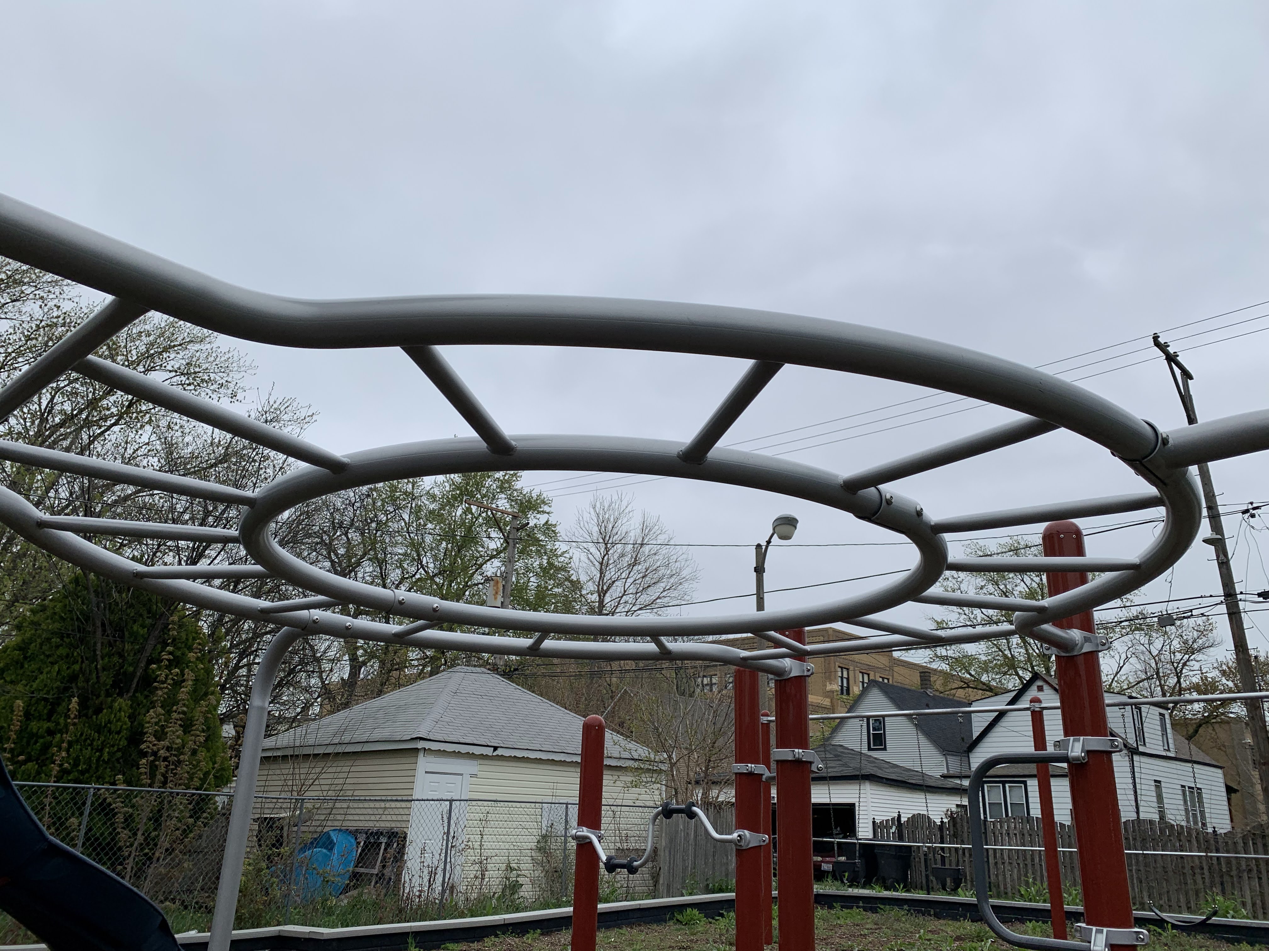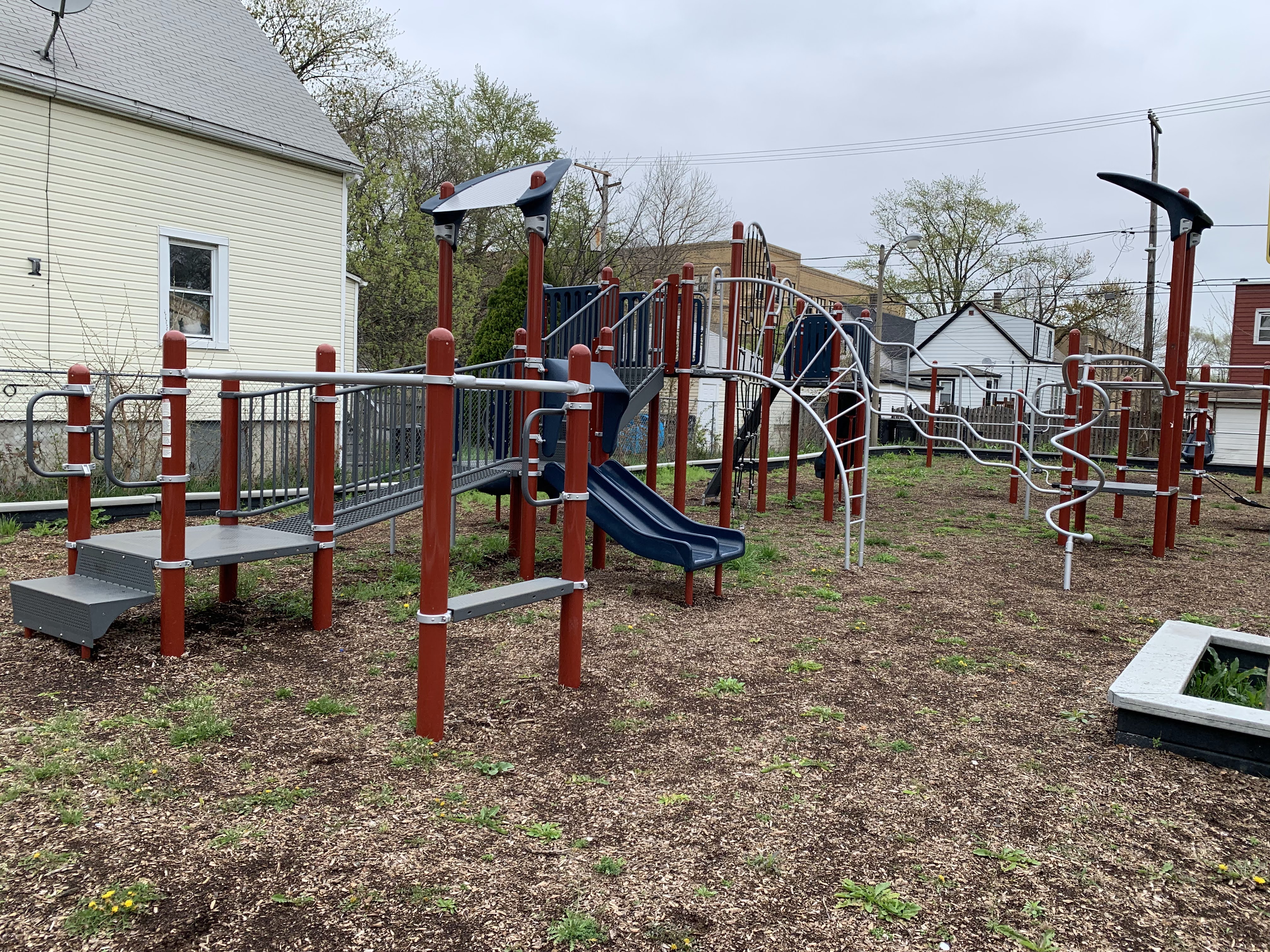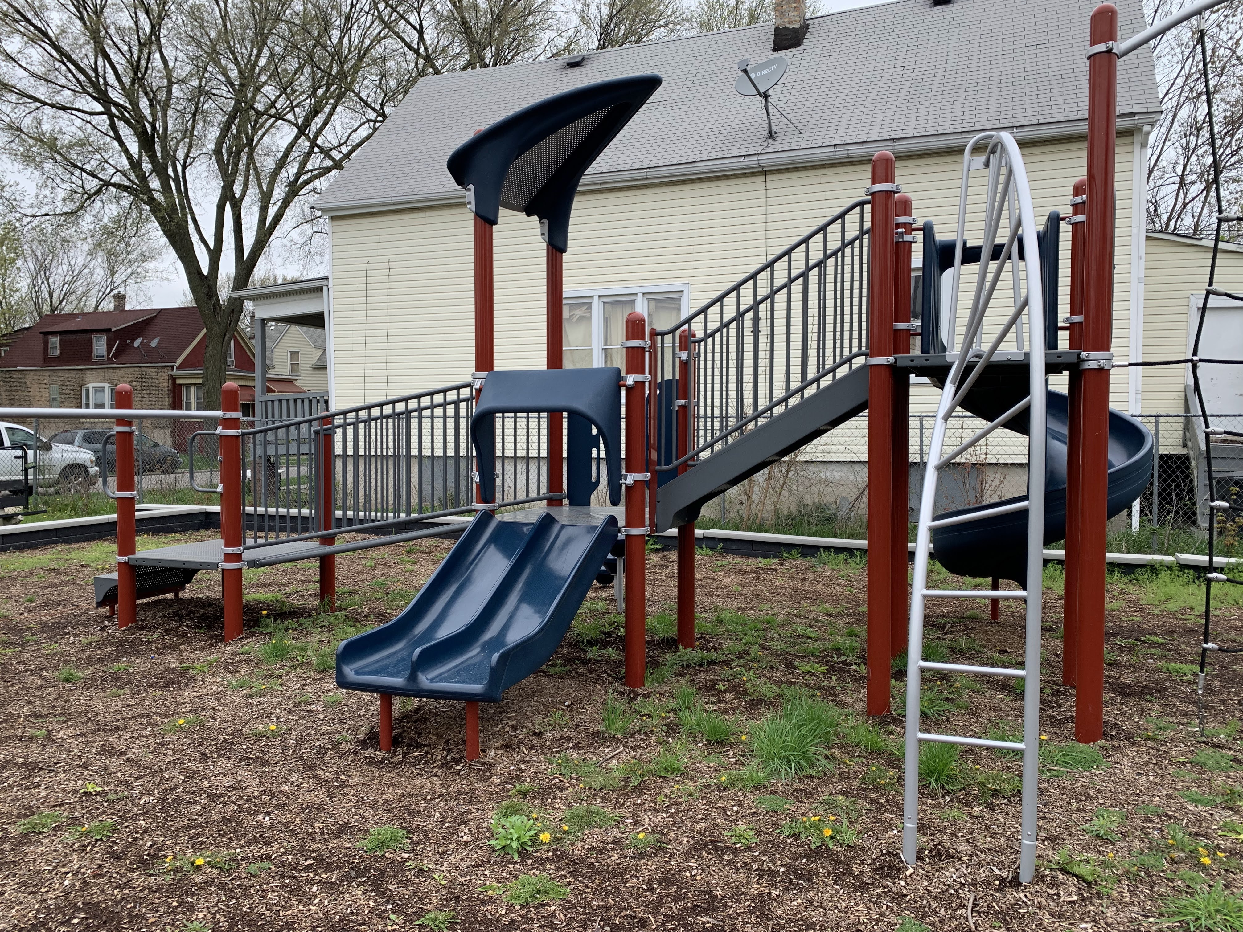 - Wolcott Park is a tiny neighborhood pocket park that contains a large playground structure and a set of swings. The structure includes a few slides and climbing elements as well as a circular monkey bars and a large metal traverse. The play ground is fenced but not fully enclosed and there is a drinking fountain and a few benches near the main entrance. The play surface is wood chips and the park get full sun most of the day.