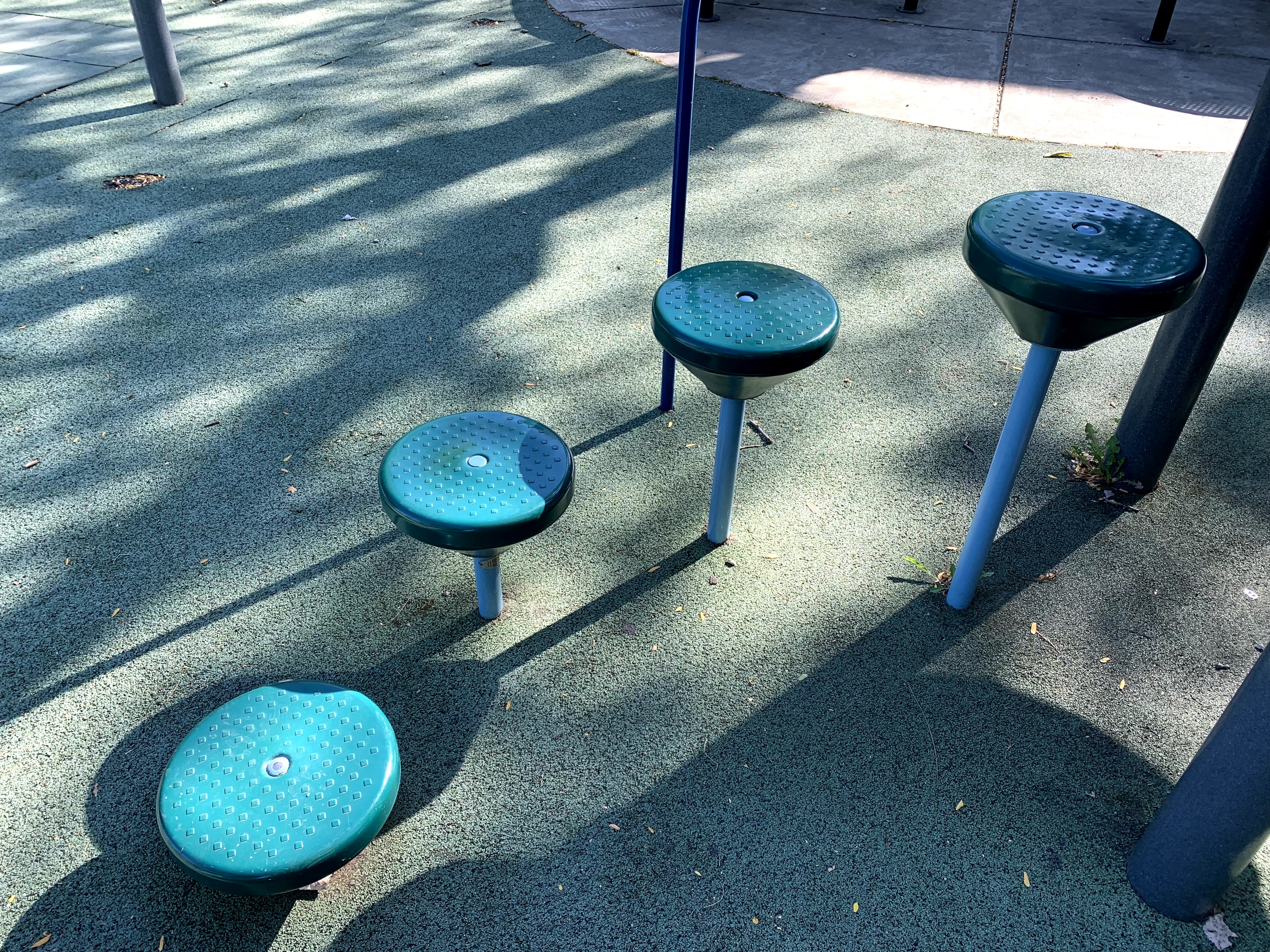 - A circular platform supported by a steel column intended for children to step and climb on.