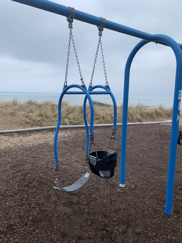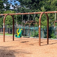 - A swinging element featuring two seats facing each other; typically one seat is a belt seat and the other is a toddler swing.