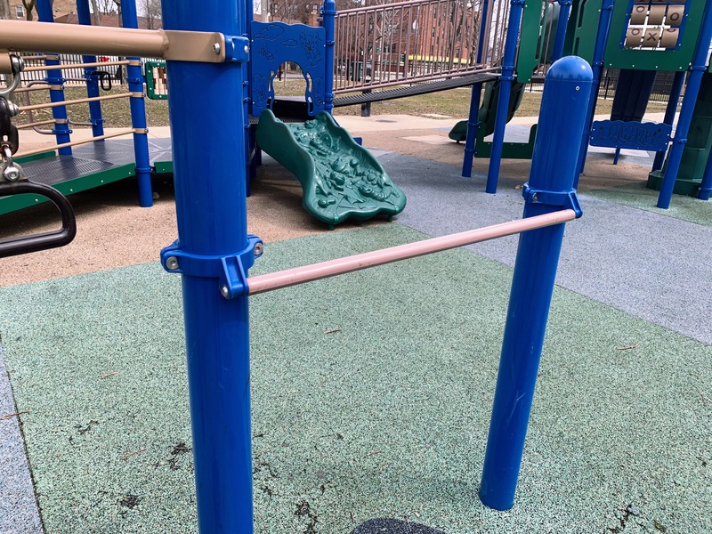 - An overhead element consisting of a single, straight metal beam that is parallel to the play surface.