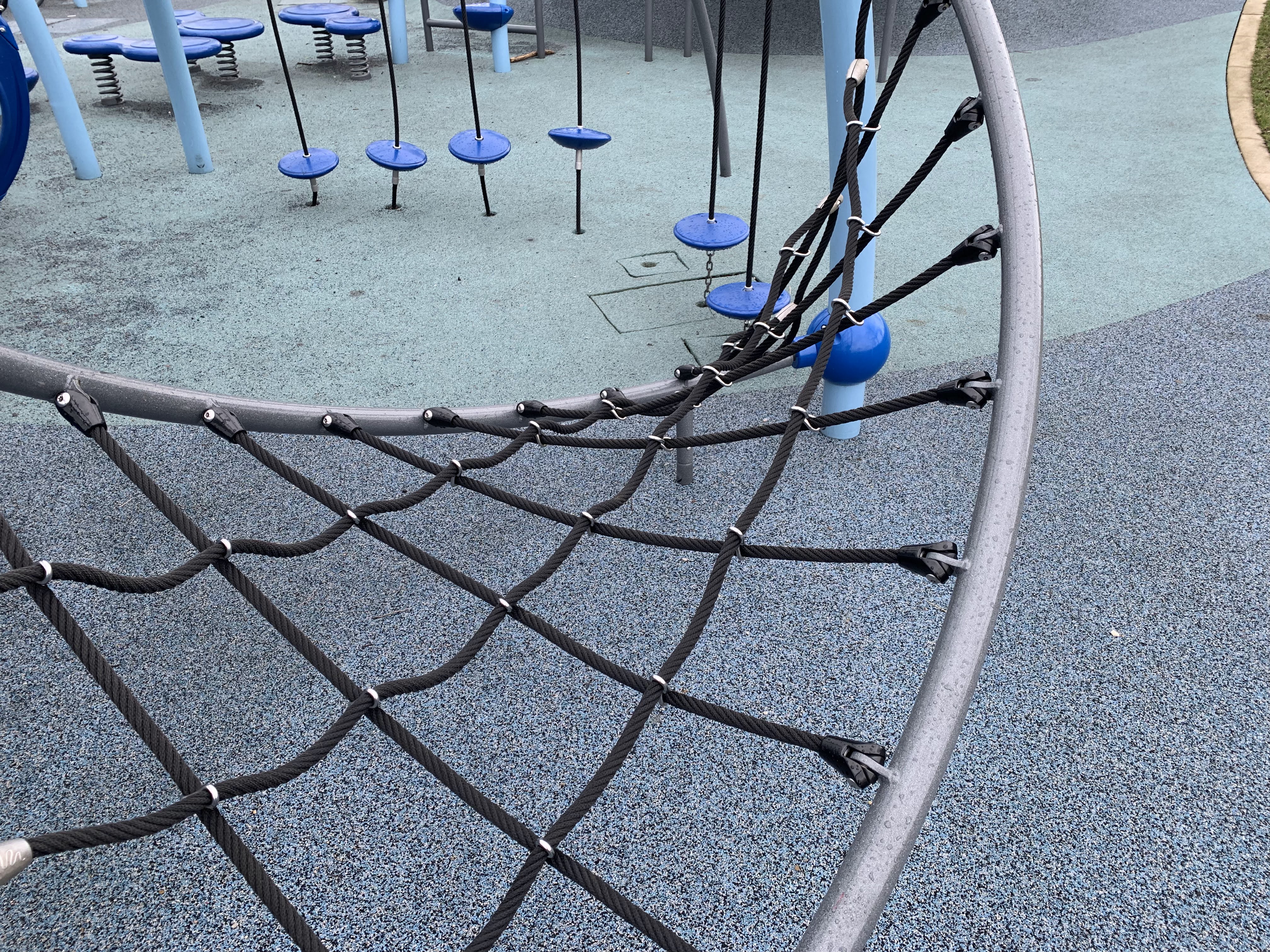 - A climbing element where a rope net is suspended between two curving supports so that it twists.