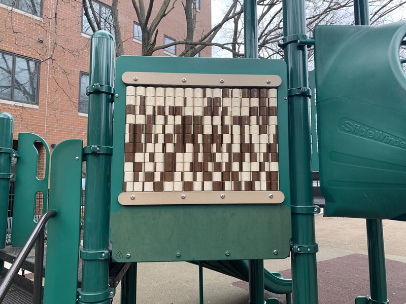 - A panel element consisting of vertical columns of cylinders that can spin freely with each cylinder painted in contrasting colors.
