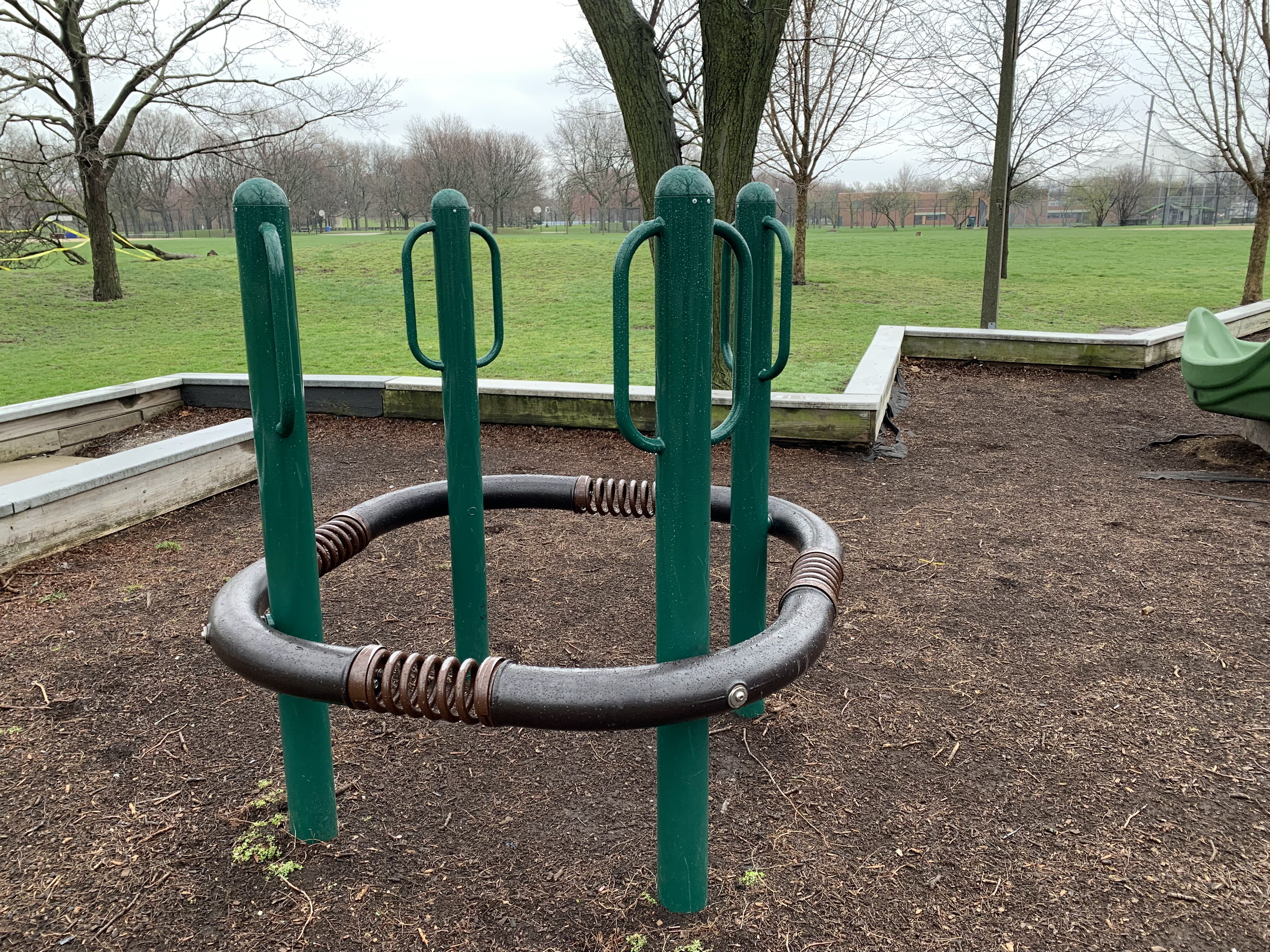 - A standalone element with four vertical posts and a metal balance beam that wraps around them. And sometimes the balance beam is a spring.