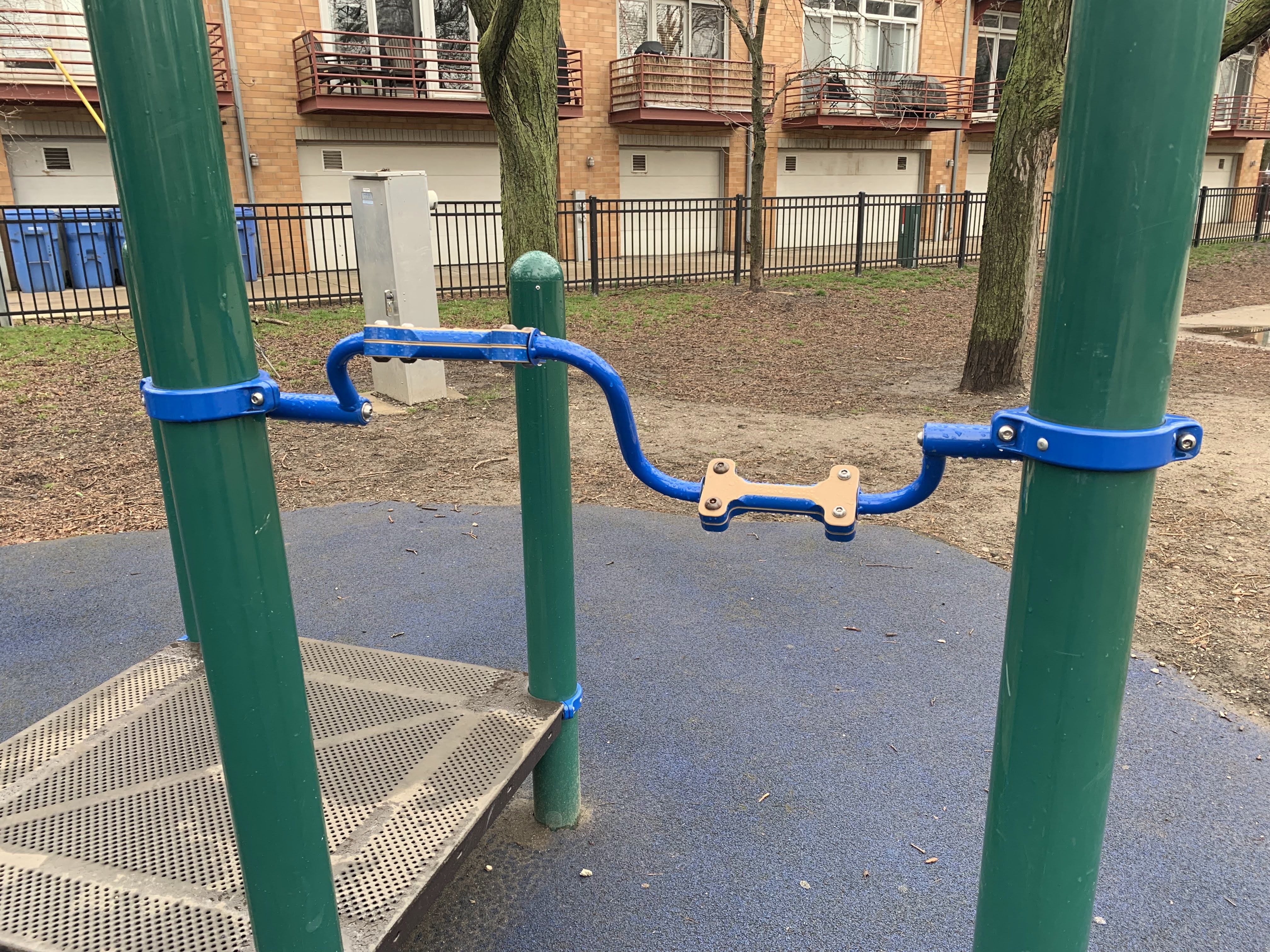 - An overhead element with two hand holds that can spin.