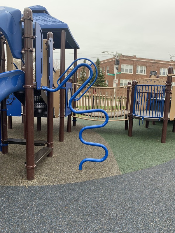 - It's a pole that connects the ground to the platform but it's got some squiggle.